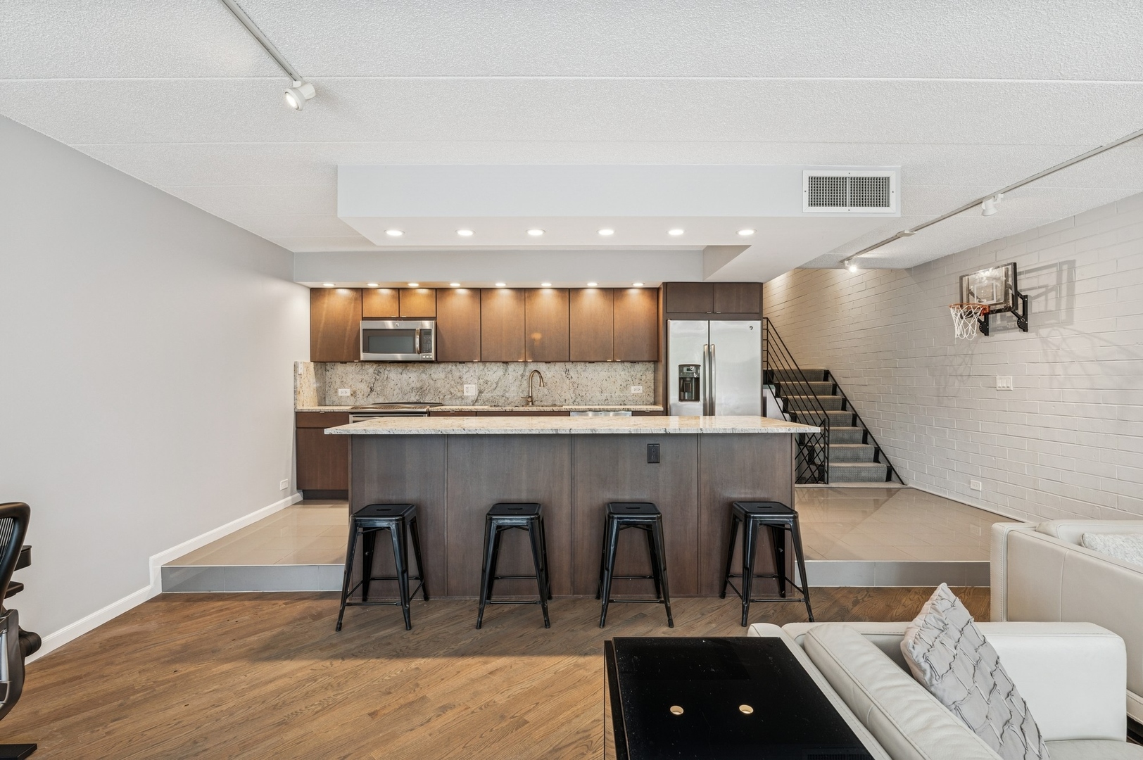 Welcome to 630 Vernon Ave, Glencoe! A two-bedroom, two-bath multi floor condo that feels like a home in a modern elevator building. Downtown Glencoe is a charming blend of quaint shops, popular eateries, beautiful tree lined streets and a stones throw away from the gorgeous shores of Lake Michigan, all in the New Trier School district. Includes 2 garage spots with an EV Charger in the heated garage. Renovated from top to bottom by one of Chicago’s preeminent Architects, boasts a rich history as their former home. every detail has been meticulously reimagined, featuring top of the line upgrades and exquisite finishes throughout. This property boasts a modern open floor plan, an expansive kitchen with a huge island that is open to the gorgeous sun drenched living area featuring hardwood flooring and modern finishes that include granite kitchen counter tops and backsplash, stainless steel appliances, marble and stone bathrooms, in unit digital/Wifi enabled washer and dryer. This property offers a gorgeous balcony for grilling overlooking the courtyard and inviting outdoor space. Some additional upgrades include, recently painted, high end dishwasher, gorgeous blinds, digital thermostat, newer entry hardware with entry digital lock, and upgraded balcony. Walking distance to the vibrant atmosphere of downtown Glencoe, where you’ll find an array of delightful shops and enticing restaurants, perfect for dining and shopping just moments away. Surrounded by the lush parks and Beaches, in the area for picnics, walks, and outdoor activities. This condo is not just a residence; it’s a lifestyle! Don’t miss your chance to embrace the best of suburban living, near the beach, picturesque parks, and the charm of downtown Glencoe right at your doorstep. Schedule a showing today!