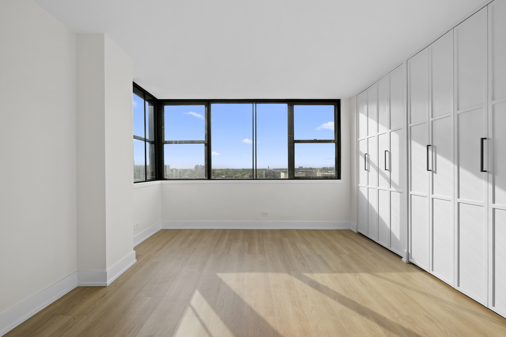 Presenting this exceptional condo in the highly sought-after Shoreline Towers Condominiums!This fully updated Unit offers modern comfort and sophisticated design throughout. The brand-new kitchen features quartz countertops, stainless steel appliances, and sleek high-end laminate flooring. The dining area stands out with custom wall paneling, adding a refined touch, while built-in closets provide abundant storage space. The spa-inspired bathroom impresses with a European-style walk-in shower, warm modern tiles, and elegant wall paneling, blending luxury with everyday comfort.Large double-pane windows fill the home with natural light while offering unbeatable city and lake views.Building Amenities:24-hour door staff, on-site engineer, heated garage parking (fee/leased) with valet guest options, two-level fitness center, rooftop sundeck with lake views, party room with library, package receiving room, bike and storage rooms, service and passenger elevators, park/playground access, and 24/7 laundry facilities.The HOA includes heat, water, gas, cable, internet and maintenance.Prime Location, just steps from the lakefront, Loyola University, Berger Park, and the beaches. Conveniently close to public transportation, scenic trails, and a wide variety of shopping, dining, and entertainment options – including Target, Whole Foods, Mariano’s, Aldi, CVS, and Walgreens. An excellent alternative to Loyola student housing or a perfect home for anyone seeking comfort, convenience, and style. Seize this opportunity – schedule your private showing today.