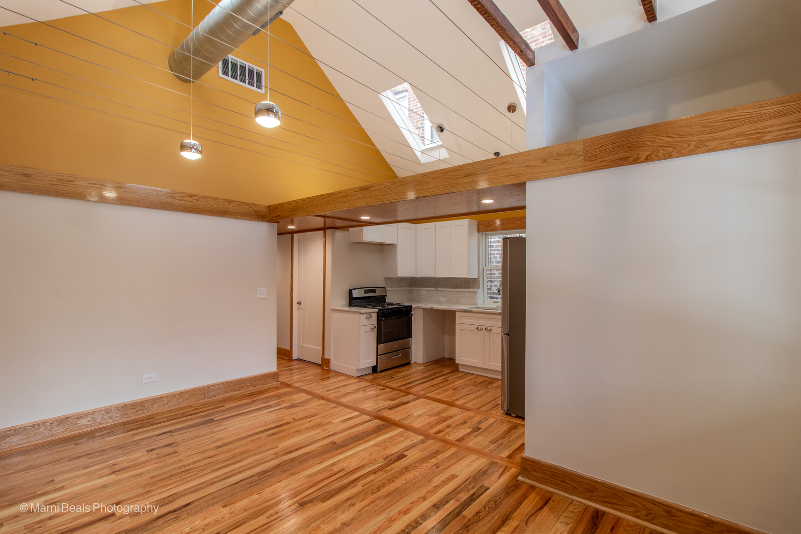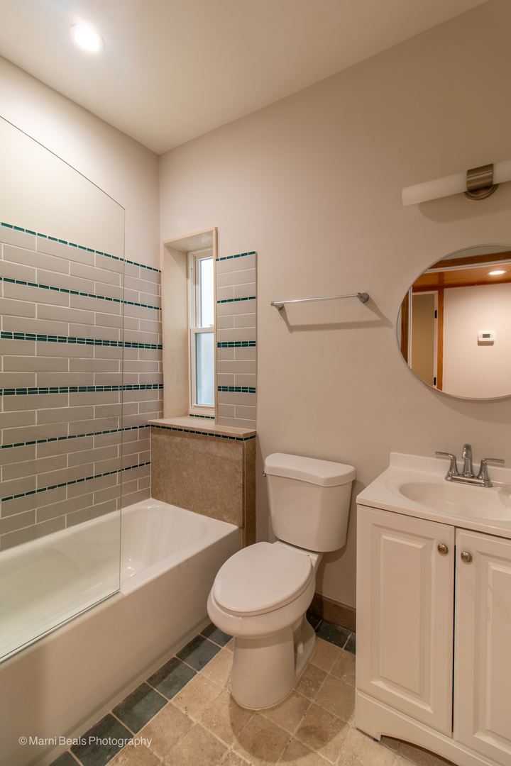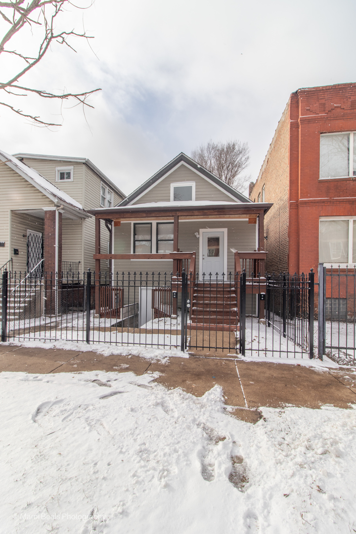 Modernist Gem in the Heart of Woodlawn! Creative, cool, and highly functional, this impeccably updated Woodlawn bungalow offers a refreshing departure from the everyday. Blending Modernist aesthetics with Prairie-inspired details, 6334 S. Saint Lawrence is a move-in-ready sanctuary designed for the art-forward homeowner. The front entry opens into a voluminous, vaulted-ceiling great room, creating a gallery-like atmosphere perfect for showcasing a curated collection of furniture & art. Feel happy thanks to strategic skylights, the interior remains bright and airy even on the grayest Chicago winter days. The Chef’s Alcove kitchen features a smart U-shaped design with brand-new appliances and sleek, minimalist lines. The main level hosts two spacious bedrooms and two full bathrooms, including a light-filled primary suite with a private en suite, that opens to the massive rear deck. Frank Lloyd Wright would approve of the custom-crafted oak staircase leads to the fully realized, walk-out lower level, which offers a generous family room and a private third bedroom with its own en suite bath-the perfect setup for guests or a quiet home office. Enjoy year-round comfort and peace of mind with zoned central heating and air conditioning. Outside, the massive gated rear yard is an entertainer’s dream, featuring a massive rear deck with dramatic full-width stairs that invite you down to the grassy lawn and brand-new gated parking pad. Located just blocks from the Cottage Grove Green Line station and surrounded by the rapid development defining the Woodlawn corridor, this is a rare opportunity to own a uniquely designed, right-sized single-family home for the price of a local condo. Every detail has been carefully considered-now it’s yours to enjoy.