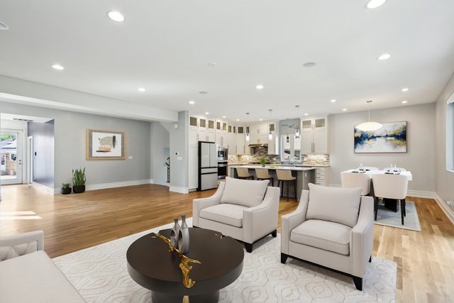 **Our home sale contingency fell through after over 2 months! ** Now it’s your change to own this stunning 5-Bed/4.5-Bth home in Chicago! This beauty is as good as new construction, built in 2016 and completely move-in ready. The moment you enter the front door you’re greeted by a large and open living room, dining room and kitchen with gorgeous hardwood floors that flow throughout the home, recessed lighting and modern fixtures. The kitchen is any home chef’s dream with a large island with a breakfast bar, a built-in oven and microwave, quartz countertops, white shaker cabinets and a new fridge in 2024. Entertaining will be a breeze with this kitchen! Heading upstairs, you’ll find your luxurious Primary suite complete with an en-suite bath with double sinks, a soaking tub and a separate European shower plus a large walk-in closet with a custom shelving system. The 2nd level also has 3 additional bedrooms (one of those includes it’s own en-suite) and another full bath. The finished basement provides even MORE living space! It features a large rec room with a wet-bar, perfect for a game room, media room, playroom or whatever suits your needs. You’ll also find the 5th bedroom and another full bath plus the laundry room in the basement. The laundry room was redone in April of 2025 and has a newer washer/dryer. Outside, enjoy multiple outdoor living spaces in your private, fenced-in yard! The composite fence was installed in 2023. There is a balcony/deck off of the kitchen and a patio with a stunning pergola (new in 2023) that includes built-in lights and a ceiling fan – the perfect space to relax on these beautiful summer days. Turf was installed a few years ago, giving your lawn that perfectly manicured look! Attached 2.5 car garage ready for EV charging! There are also 31 solar panels on the house, installed in 2021, giving you peace of mind for your electric bill. You truly can’t beat this home or it’s location close to parks, multiple golf courses, major highways, public transit, groceries, restaurants and more! Easy to show – schedule your tour today!