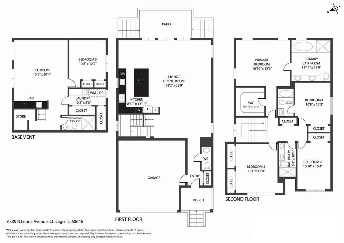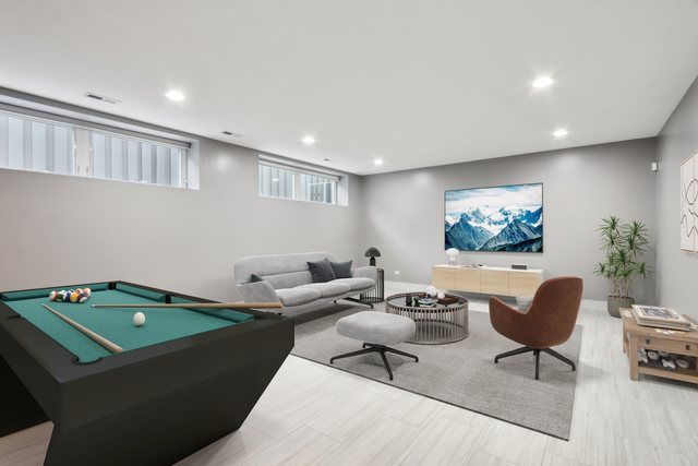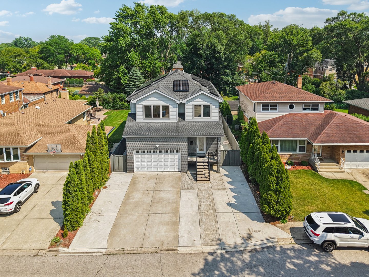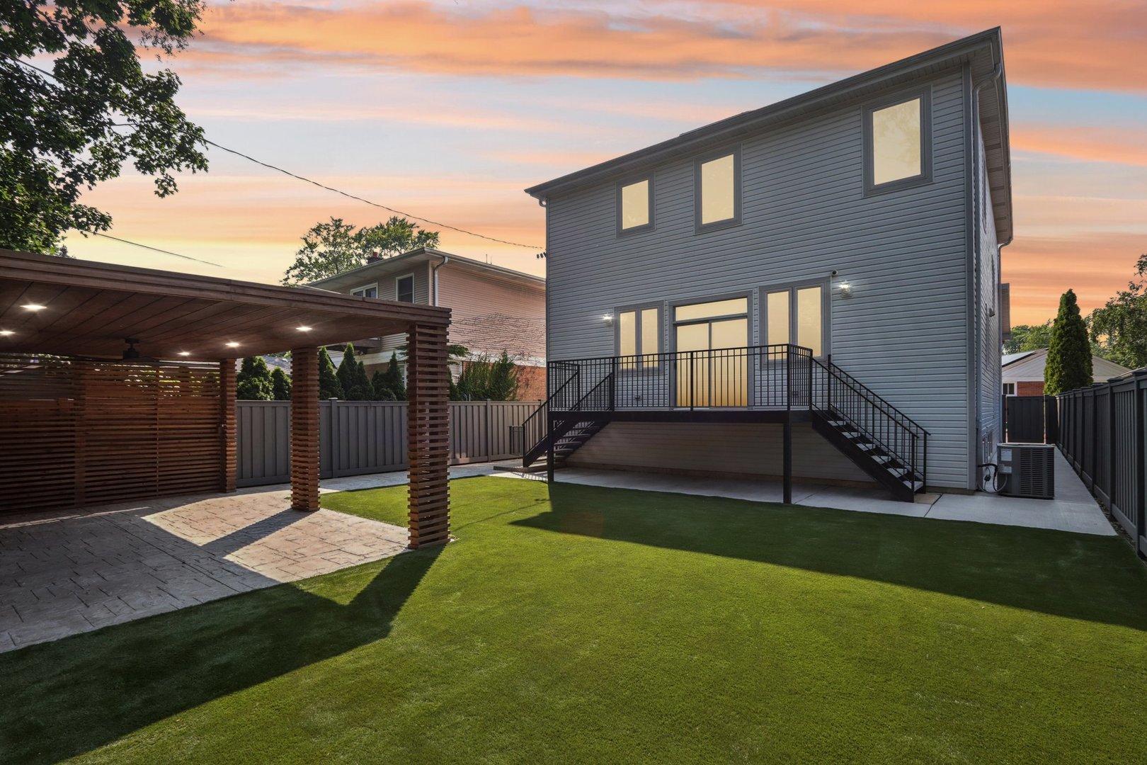 Stunning 5-Bed/4.5-Bth home in Chicago! This beauty is as good as new construction, built in 2016 and completely move-in ready. The moment you enter the front door you’re greeted by a large and open living room, dining room and kitchen with gorgeous hardwood floors that flow throughout the home, recessed lighting and modern fixtures. The kitchen is any home chef’s dream with a large island with a breakfast bar, a built-in oven and microwave, quartz countertops, white shaker cabinets and a new fridge in 2024. Entertaining will be a breeze with this kitchen! Heading upstairs, you’ll find your luxurious Primary suite complete with an en-suite bath with double sinks, a soaking tub and a separate European shower plus a large walk-in closet with a custom shelving system. The 2nd level also has 3 additional bedrooms (one of those includes it’s own en-suite) and another full bath. The finished basement provides even MORE living space! It features a large rec room with a wet-bar, perfect for a game room, media room, playroom or whatever suits your needs. You’ll also find the 5th bedroom and another full bath plus the laundry room in the basement. The laundry room was redone in April of this year and has a newer washer/dryer. Outside, enjoy multiple outdoor living spaces in your private, fenced-in yard! The composite fence was installed in 2023. There is a balcony/deck off of the kitchen and a patio with a stunning pergola (new in 2023) that includes built-in lights and a ceiling fan – the perfect space to relax on these beautiful summer days. Turf was installed a few years ago, giving your lawn that perfectly manicured look! Attached 2.5 car garage ready for EV charging! There are also 31 solar panels on the house, installed in 2021, giving you peace of mind for your electric bill. You truly can’t beat this home or it’s location close to parks, multiple golf courses, major highways, public transit, groceries, restaurants and more! Easy to show – schedule your tour today!