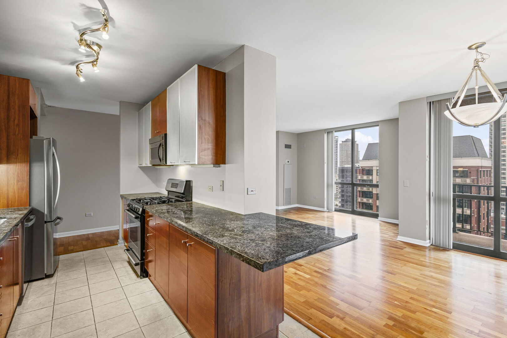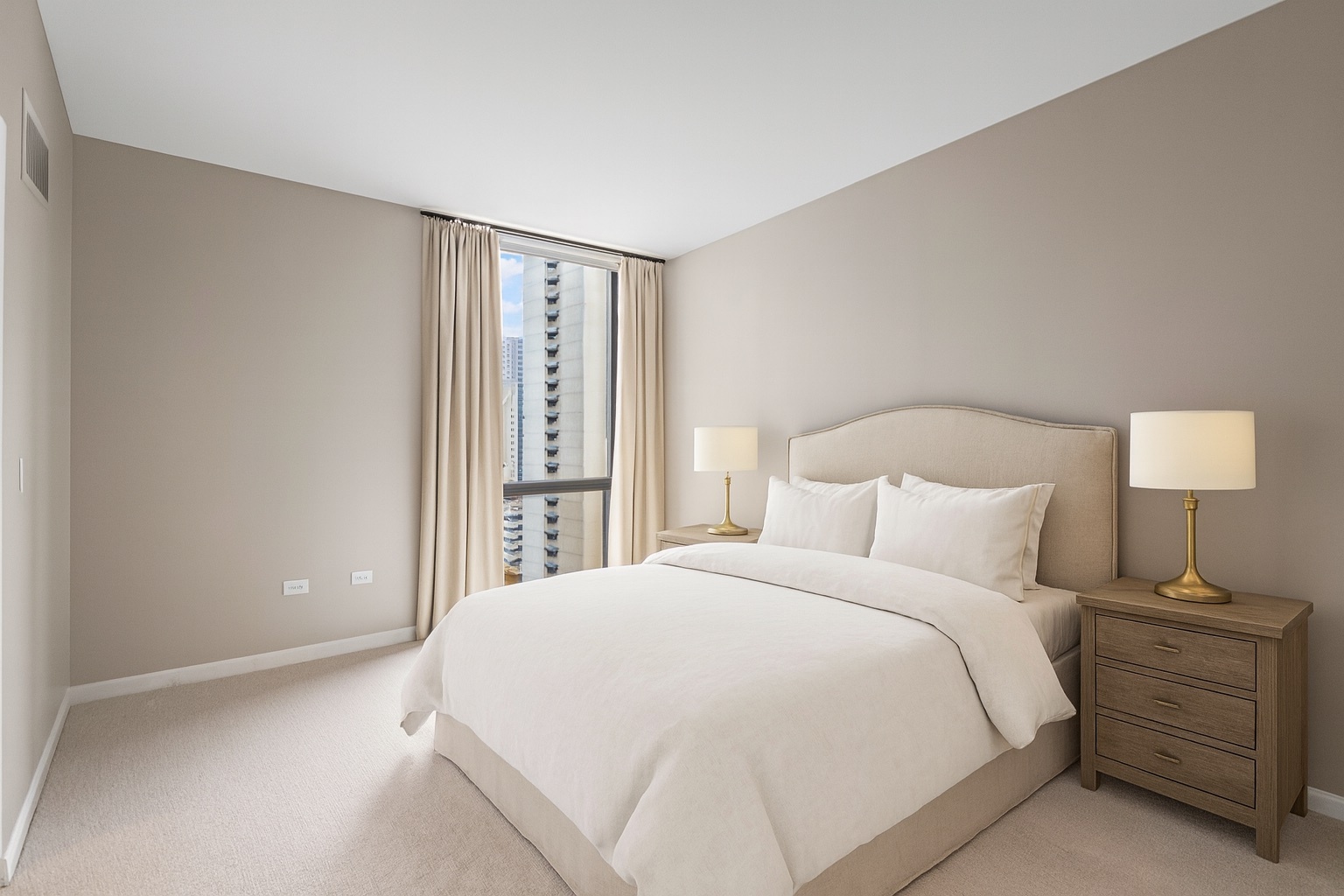Stunning 3-Bed, 2-Bath Corner Condo with Panoramic City Views! Perched on the 17th floor, this spacious and freshly updated residence offers breathtaking north and east skyline views from every room. The home has been completely repainted and features brand-new carpet in the primary and second bedrooms for a crisp, move-in-ready feel. The modern kitchen is appointed with stainless steel appliances, sleek Scavolini cabinetry, and a convenient additional pantry area. An expansive private wrap-around balcony extends your living space outdoors-perfect for morning coffee or unwinding with Chicago’s cityscape as your backdrop. The generous primary suite includes a walk-in organized closet plus a secondary closet, its own private balcony, and a luxurious en-suite bath with a separate Jacuzzi tub, steam shower, double vanity and large linen closet. Abundant closets throughout the home ensure effortless organization. Additional highlights include in-unit laundry, dedicated storage, and a prime parking space (#24) located on the first parking level (garage parking included) – pet friendly building. Rentals not allowed at present time – the building is at their cap. This exceptionally well-run building offers on-site management, 24-hour door staff, a newer fitness center, and a beautifully renovated guest suite. Ideally located, you’re just steps from top restaurants, shopping, grocery stores, and public transportation. Don’t miss the opportunity to make this remarkable residence your next home!
