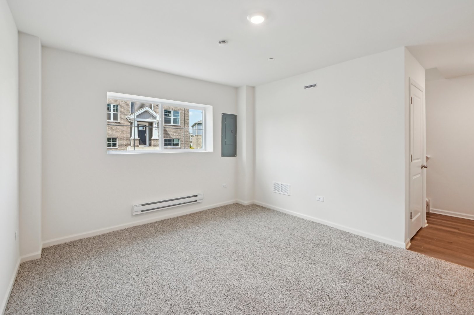 Discover yourself at 6355 Ulster Drive, a beautiful new home in our Oak Ridge community. This townhome will be ready for a New Years move-in! Homesite includes a fully sodded yard that is maintained throughout the year as well as snow removal in the winter. This Lincoln townhome plan offers over 1,756 square feet of living space with 3 bedrooms, 2.5 baths, and finished flex room. As soon as you step inside, you’ll be greeted by the finished flex room, which is perfect as a den or playroom. Walking up the stairs, you will find this home’s open concept living space. The expansive kitchen overlooks both the front dining and back great room areas, making it the ideal space to entertain. Additionally, your kitchen features designer cabinetry, a spacious island with quartz countertops, and pantry. Enjoy your large primary bedroom with a walk-in closet and connecting en suite bathroom. The rest of the upper level features a laundry room, secondary bedrooms with a full second bath, and linen closet. You’ll find luxury vinyl plank flooring in the kitchen and dining areas on the main level living space, bathrooms, and laundry. Impressive innovative ERV furnace system and tankless water heater round out the amazing features this home has to offer! All Chicago homes include our America’s Smart Home Technology. Photos are of similar home and model home. Actual home built may vary.