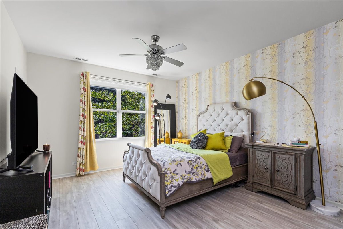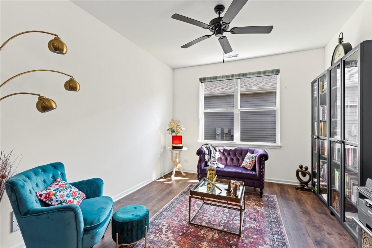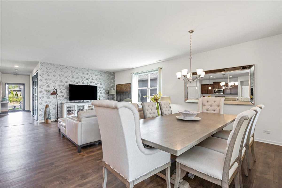 This inviting corner ranch, built in 2018, offers the ease of single-story living in the desirable Wentworth neighborhood of Gurnee. With 2 bedrooms plus a versatile den/flex room, the home provides options for a private office, nursery, or hobby space. The open floor plan creates a seamless flow between the living, dining, and kitchen areas, filled with natural light from large windows and sliding doors. The kitchen is a true centerpiece, featuring a generous island and walk-in pantry, while the adjacent laundry room adds everyday convenience. The spacious primary suite is a retreat of its own, boasting a luxurious bath with double vanity, soaking tub, separate shower, and an enviable 10×12 walk-in closet, plus an additional smaller walk-in closet for even more storage. A three-season room opens to a block-paver patio and tree-dotted yard, perfect for both quiet mornings and relaxed entertaining.Additional highlights include a 2-car garage and the low-maintenance lifestyle provided by the HOA, covering landscaping and snow removal. Ideally located just 2 miles from shopping, dining, Gurnee Mills, and highways 94 and 120, this move-in ready home combines comfort, privacy, and convenience in a welcoming community.