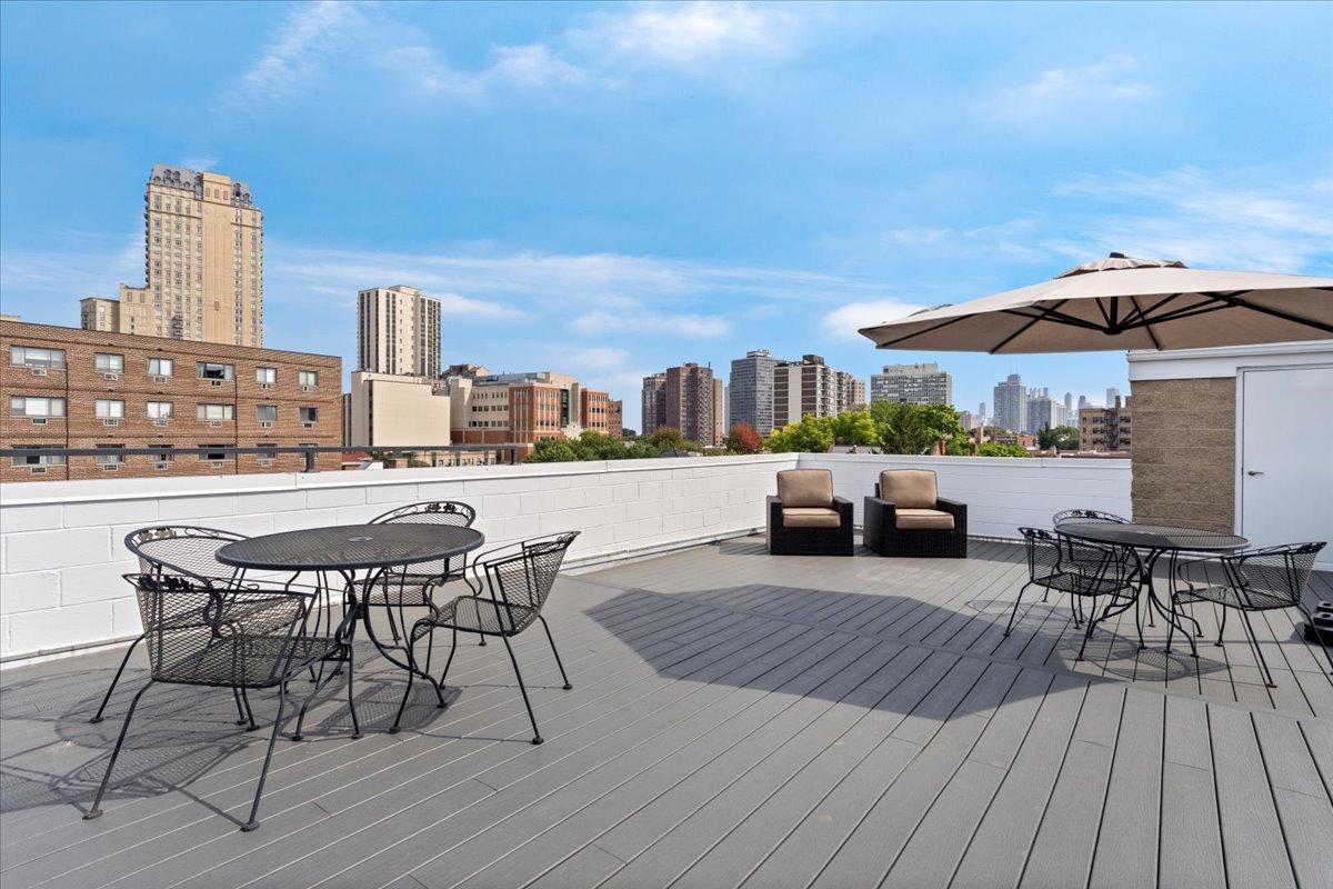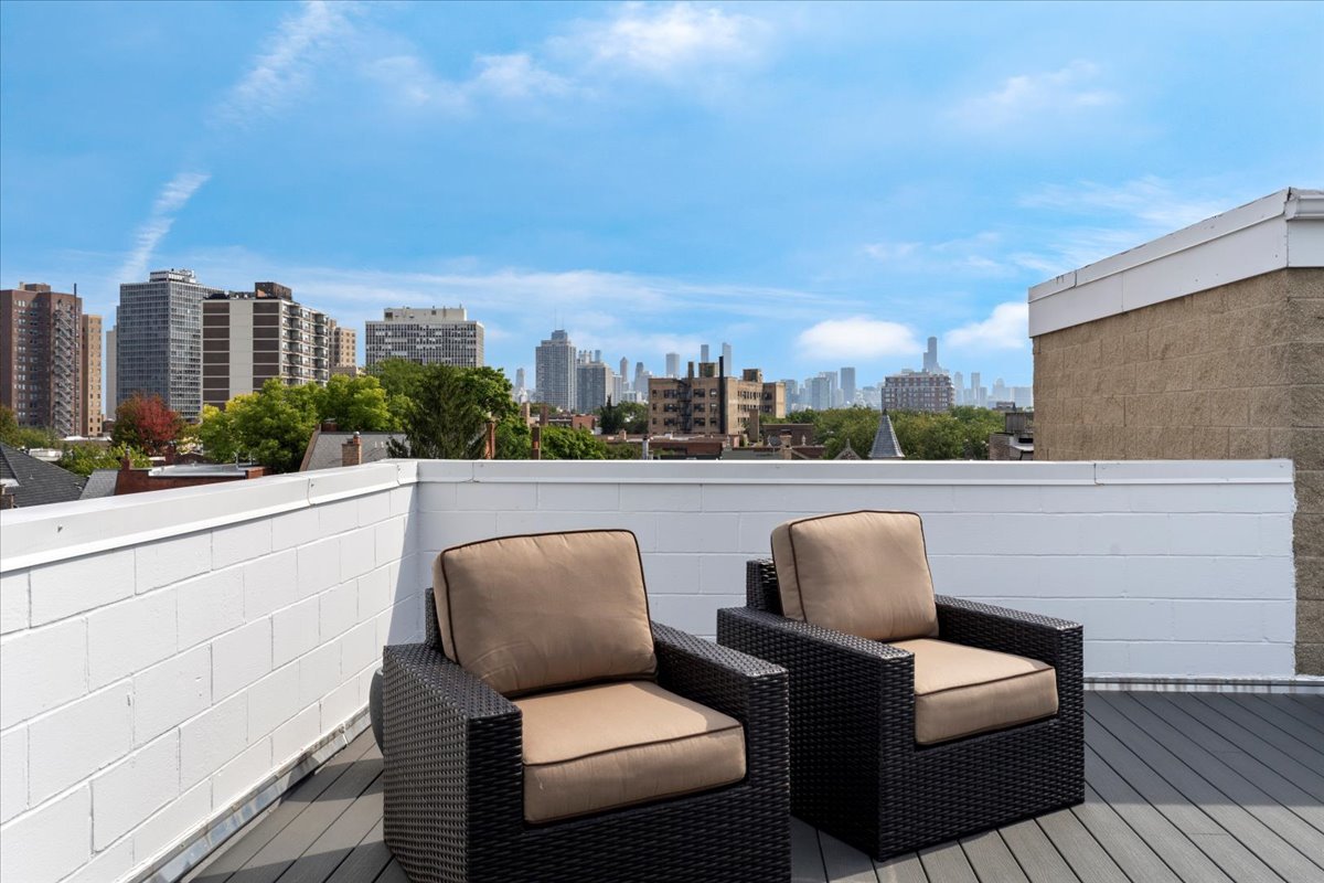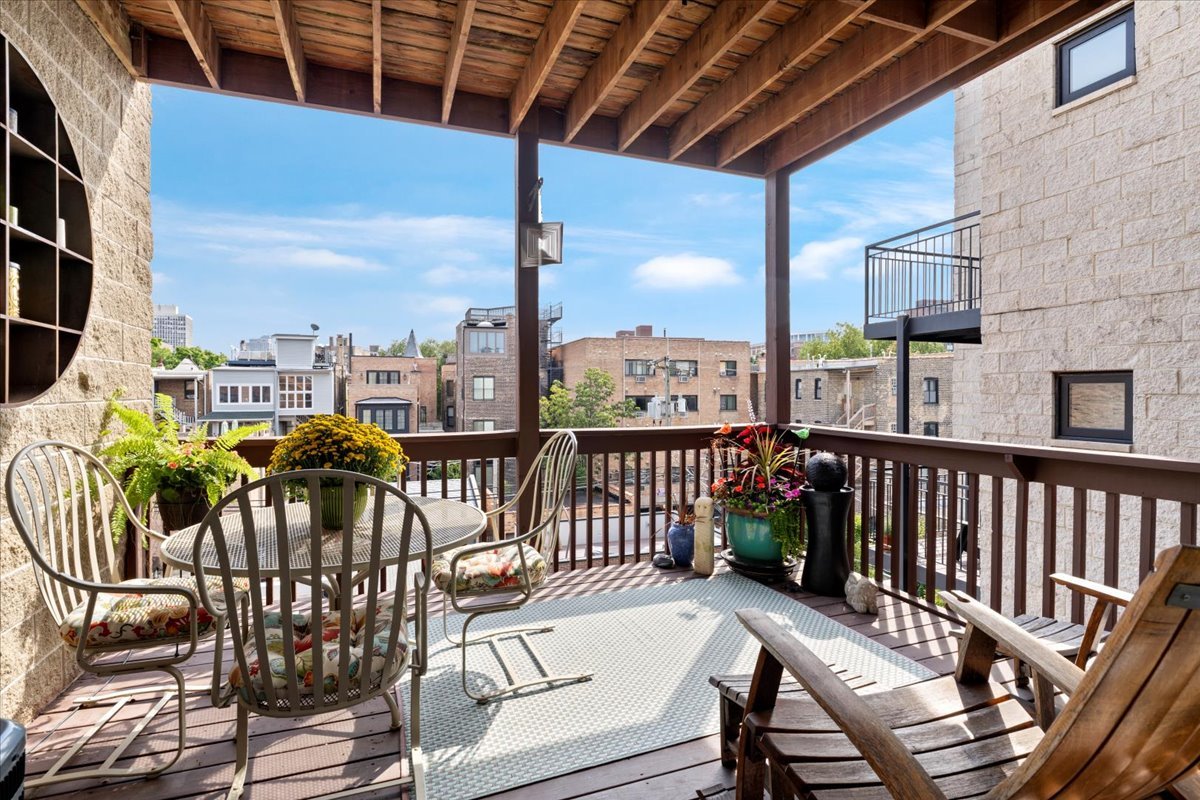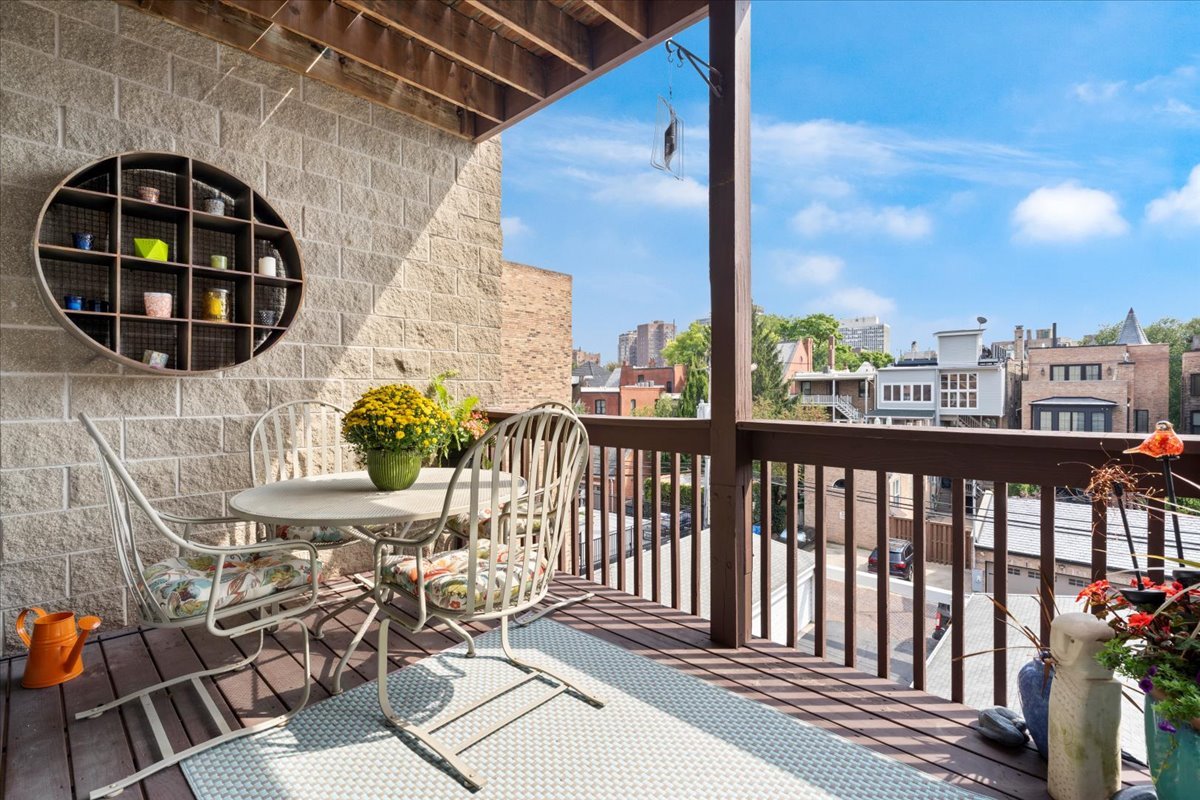 Step into this expansive East Lincoln Park condo featuring two bedrooms, two bathrooms, with office nook situated in a handsome ten unit elevator building offering two deeded parking spaces and an incredible private outdoor deck. The natural light filled living and dining areas welcome with picturesque views of the neighborhood, attractive fireplace and a spacious open layout. Ideally situated, the white kitchen offers stone countertops, stainless steel appliances, breakfast bar seating and tons of storage. Additionally two well placed large bedrooms do not disappoint, including the spacious primary suite with walk-in closet and stunning luxe stone bath with double sinks, extra storage and large walk-in shower. Other home features include a second highly upgraded stone bath, office nook, hardwood flooring throughout, professionally organized closets by California Closets, in-unit laundry and high ceilings. Building features include an elevator, one indoor garage parking space and one gated outdoor spot as well as a common rooftop deck with neighborhood and skyline views. All just steps from the best of Lincoln Park shopping, restaurants, parks and Lake Michigan.