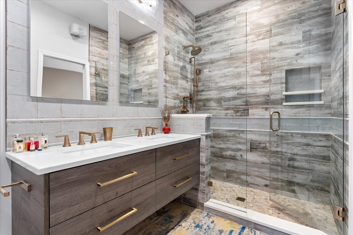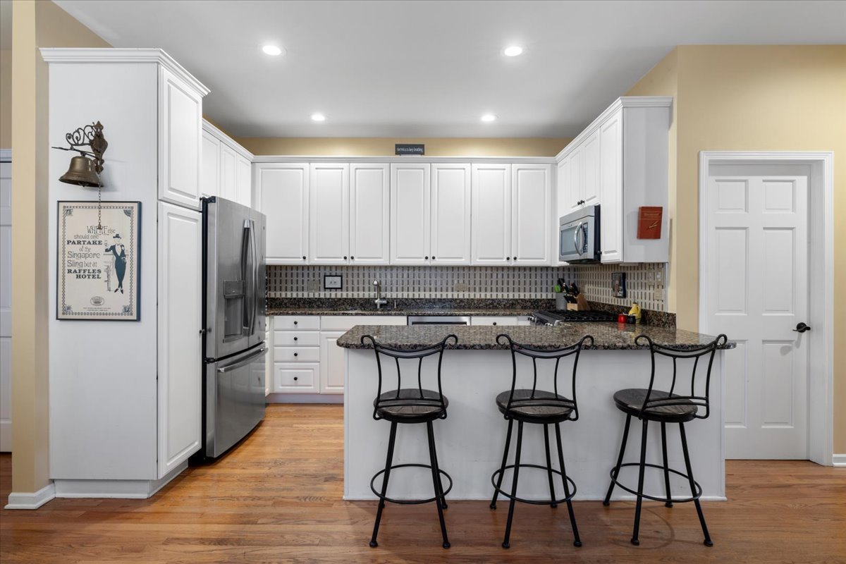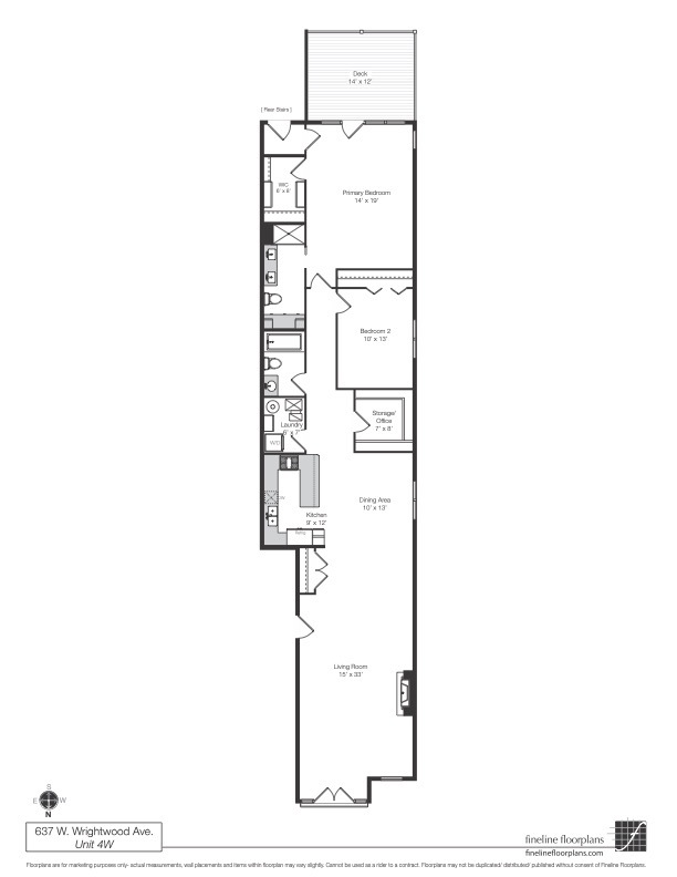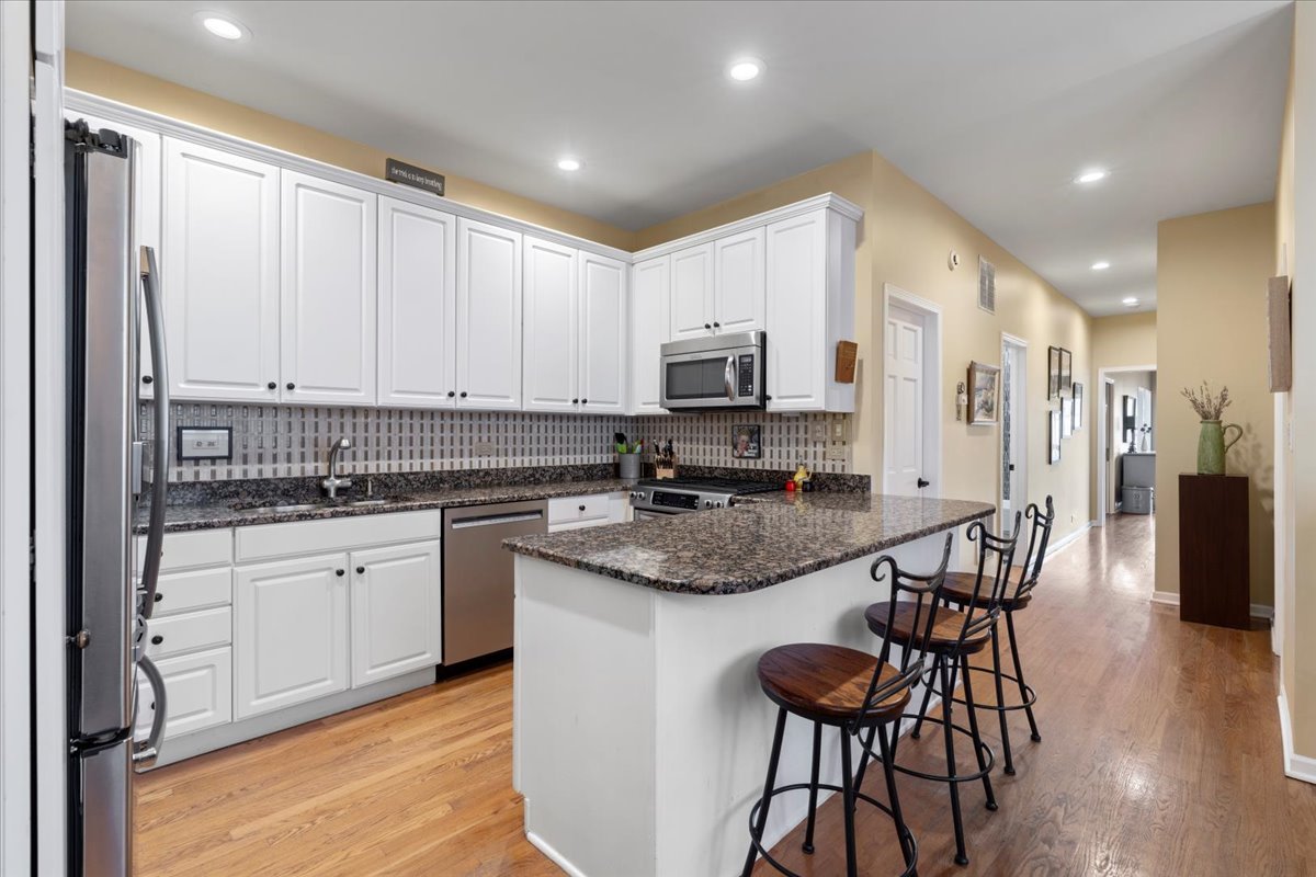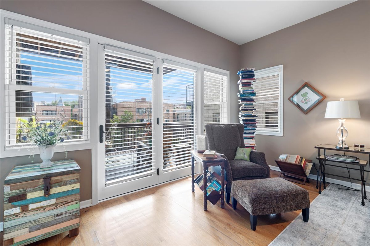 Step into this expansive East Lincoln Park condo featuring two bedrooms, two bathrooms, with office nook situated in a handsome ten unit elevator building offering two deeded parking spaces and an incredible private outdoor deck. The natural light filled living and dining areas welcome with picturesque views of the neighborhood, attractive fireplace and a spacious open layout. Ideally situated, the white kitchen offers stone countertops, stainless steel appliances, breakfast bar seating and tons of storage. Additionally two well placed large bedrooms do not disappoint, including the spacious primary suite with walk-in closet and stunning luxe stone bath with double sinks, extra storage and large walk-in shower. Other home features include a second highly upgraded stone bath, office nook, hardwood flooring throughout, professionally organized closets by California Closets, in-unit laundry and high ceilings. Building features include an elevator, one indoor garage parking space and one gated outdoor spot as well as a common rooftop deck with neighborhood and skyline views. All just steps from the best of Lincoln Park shopping, restaurants, parks and Lake Michigan.