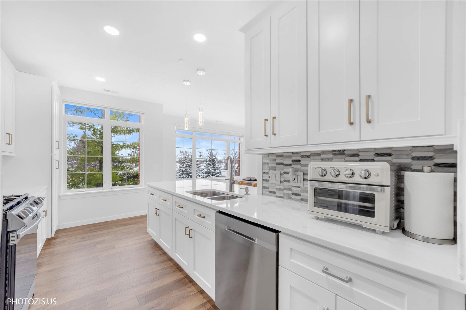 Stunning!!! Largest model with Den/Office and two and a half baths! It features an open floor plan with 9-foot ceilings, perfect for entertaining and family fun! Completely and tastefully remodeled. Large gourmet kitchen with quartz, SS appliances, newer soft-close custom cabinets and drawers. Hardwood floors throughout! Recessed lighting throughout. Luxurious en suite bath with shower and walk-in tub. Additional highlights include a heated underground garage space with an electric car charging station for added convenience. Award-winning schools! Near Childerly Park. Wheeling Town Center, expressway and shopping. Make this your dream home for the holidays!