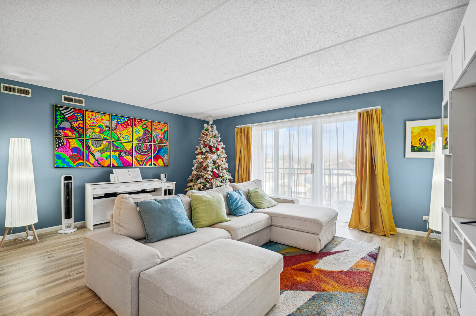 Welcome to this well-maintained 2-bedroom, 2-bath condominium located in the highly sought-after GlenLake community. This spacious unit offers approximately 1,750 square feet of comfortable living space and features vinyl flooring, well-connected living and dining area, and a private balcony. The kitchen offers ample cabinet space, ideal for everyday living and entertaining.The building includes a heated garage parking space (#4), additional guest parking conveniently located in front of the building, an elevator and extra storage space. The building is pet-friendly, and the unit features in-unit laundry for added convenience.Situated in a quiet cul-de-sac community, residents enjoy amenities including a pond with fountain, community pool, and jacuzzi, all within a well-kept and professionally managed association.Ideally located just minutes from I-90/I-94, CTA buses, the Blue Line, and O’Hare Airport, with easy access to Harlem Irving Plaza, the Rosemont Entertainment District, parks, restaurants, shopping, and within walking distance to grocery stores, Wright College, and other neighborhood amenities.