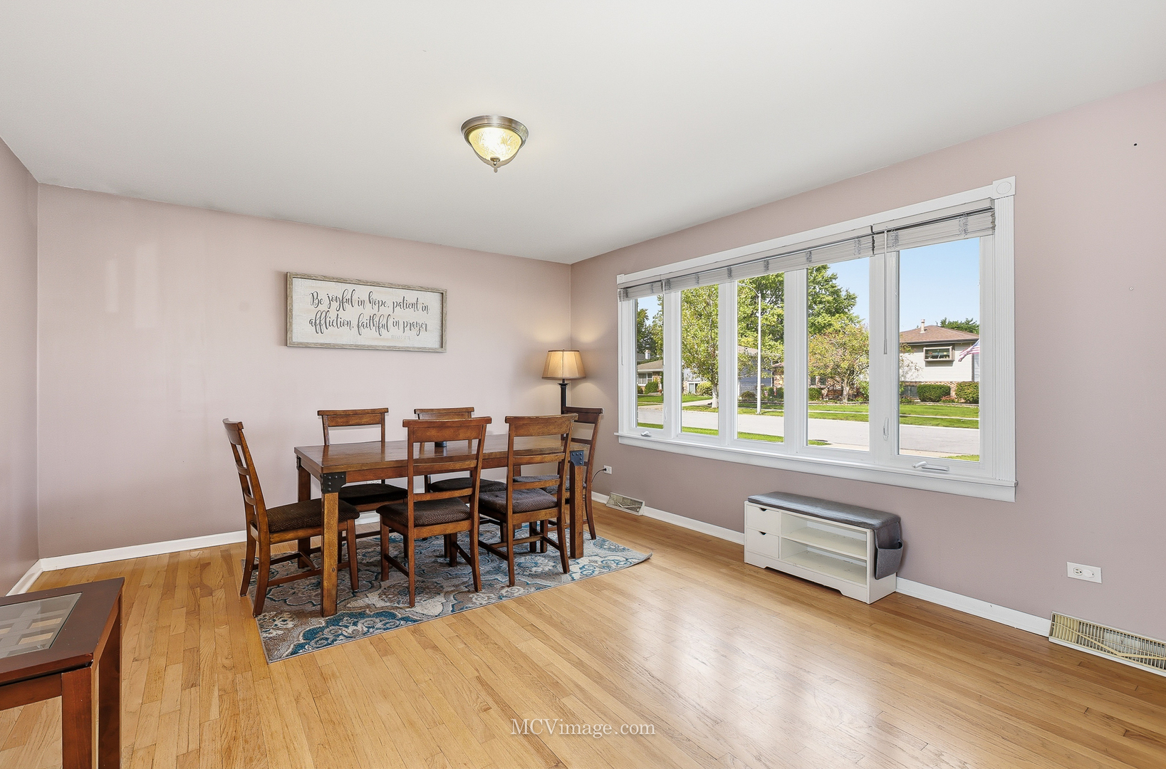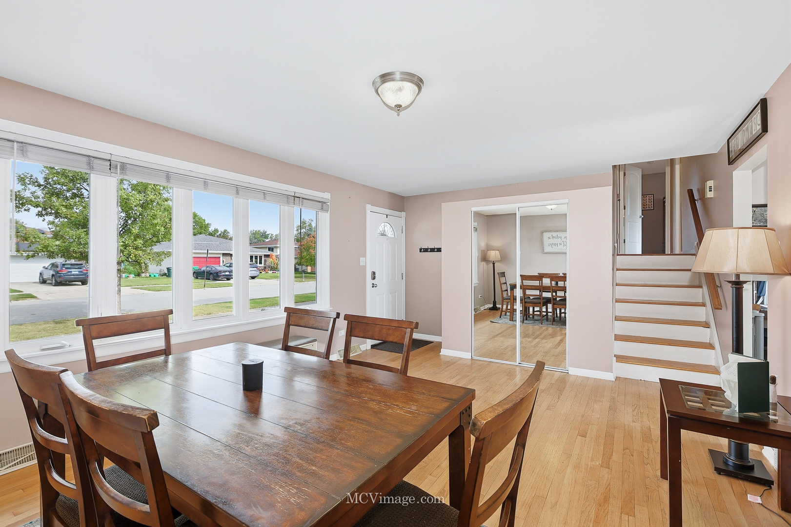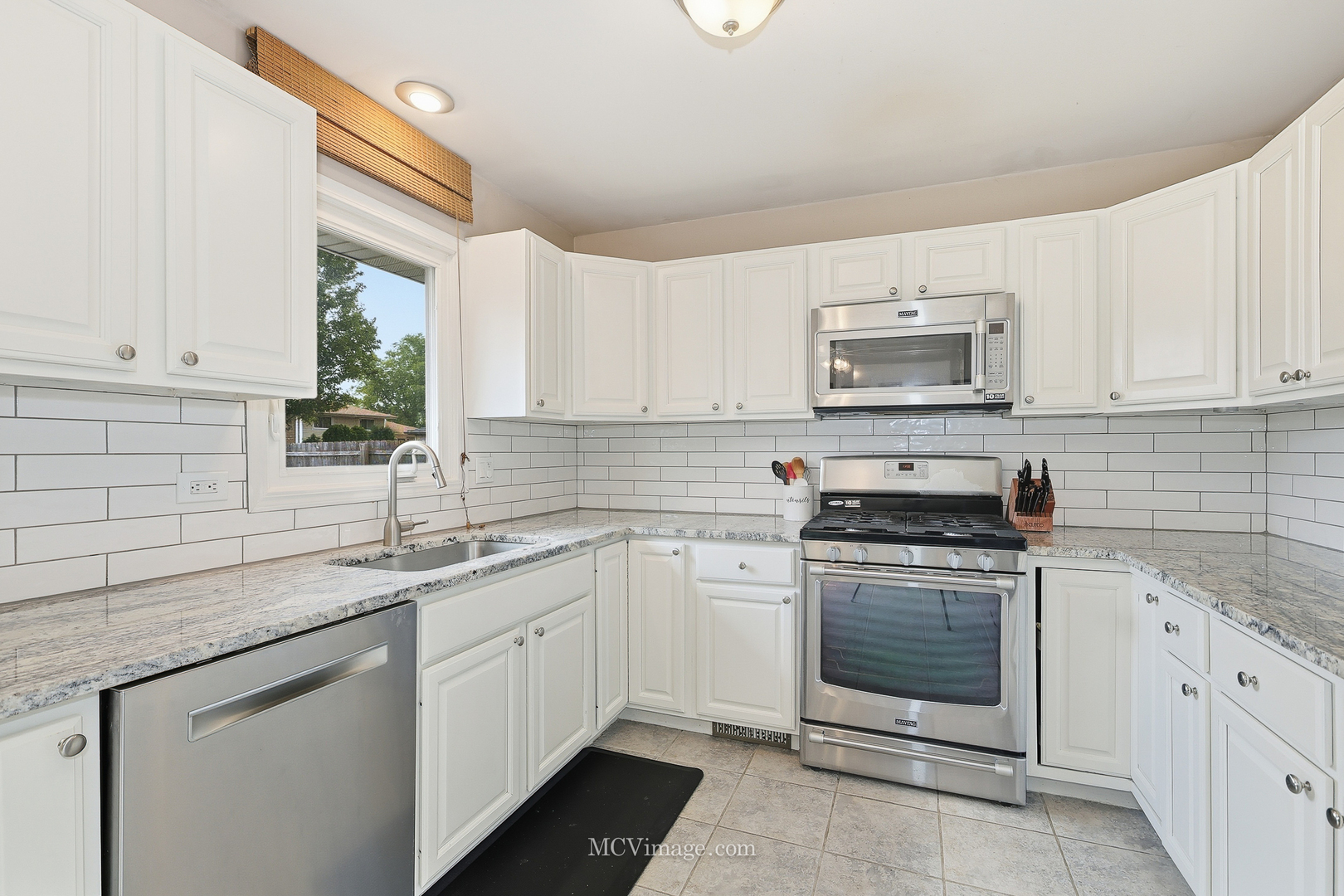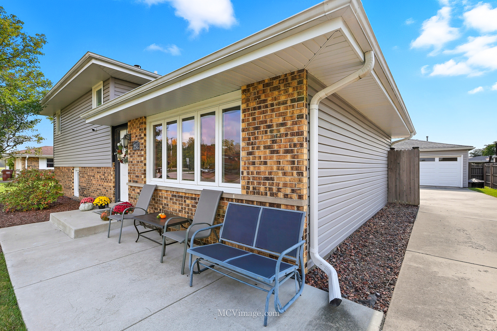 Picture Perfect…Bursting with curb appeal and loaded with upgrades this 3 bedroom split level is situated in the heart of Tinley. Filled with natural light along with beautiful hardwood flooring flowing from the spacious living room through the upper level. The freshly remodeled eat-in kitchen features painted white cabinetry, granite c-tops, a subway tile backsplash and newer stainless appliances along with a sliding door leading to the outdoor patio. Open to the lower level family room where you’ll enjoy the gorgeous fireplace wrapped in marble and a custom wood surround. The built-in beverage center with mini fridge provides a convenient place to gather while the lower level office adds a dedicated space for so many uses. Both bathrooms (one upstairs and one in the lower level) have both been updated. All 3 bedrooms feature hardwood flooring, ceiling fans and wood blinds including the master with a custom wall to wall built-in closet system providing a ton of storage. Neutral paint along with white trim and 2-panel doors complete the modern look. So many major updates include…HVAC in 2024…Roof and siding new in 2017…water heater, washer, dryer and kitchen appliances replaced in 2017. Lower level carpeting new in 2021. Newer maintenance free vinyl windows throughout are in great condition. Don’t forget about the spacious and dry concrete crawl space allowing for so much dedicated storage space. So much to offer and enjoy outdoors as well from the fenced-in yard to the oversized concrete patio, plenty of green space and a convenient shed for extra storage. The expanded 2.5 car garage is finished with drywall, 8′ ceilings and is heated plus a beautiful epoxy floor has been installed in 2021. A large concrete driveway and a newer front patio area provides the perfect place to relax. Truly a great home in a wonderful location. Come take a look today!