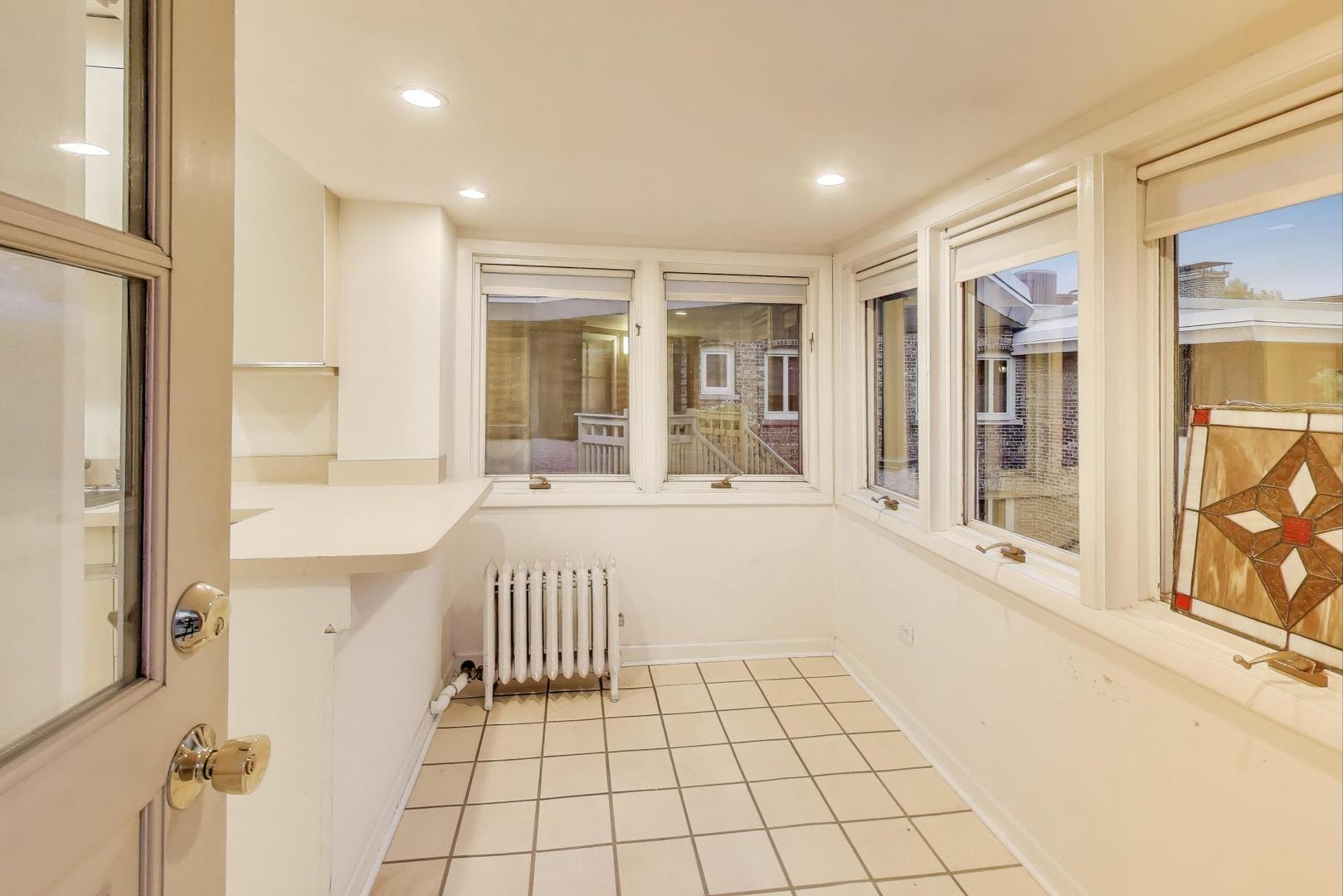 RARE chance to own in one of the most architecturally significant condo buildings in the world! This isn’t just a home, it’s a piece of history. Linden Landmark is the truest representation of Prairie School styling of any multi-unit property ever built and designed by local Oak Park resident John Van Bergen. The period-specific craftsmanship of the woodwork and built-in cabinetry is truly second to none and embodies the character that makes this architectural style so sought after. The open yet defined living/dining of this home spans from one side of the building to the other, allowing natural light to flow into its top-floor windows. The front sunroom functions as a daily lounge or home office. With a proper dining room, you can easily accommodate an 8-person table, and it flows seamlessly into the kitchen for entertaining. Sip your morning coffee in the breakfast nook while overlooking the professionally landscaped courtyard. And at the end of the day, retreat into your massive bedroom that easily accommodates a king-sized bed and dresser. This is one of the few units that has parking, and also includes an oversized storage area in the lower level, separate bike room, rec room, and laundry. HOA covers heat, water, gas, and snow removal. Central air conditioning is allowed to be installed. Ideally located in the heart of Oak Park within walking distance to the Green Line El, farmers market, Ridgeland pool, coffee shops, grocery, restaurants, and boutiques. Just steps to Scoville Park, the Cheney mansion, OP library, and downtown Oak Park make this an unbeatable location.