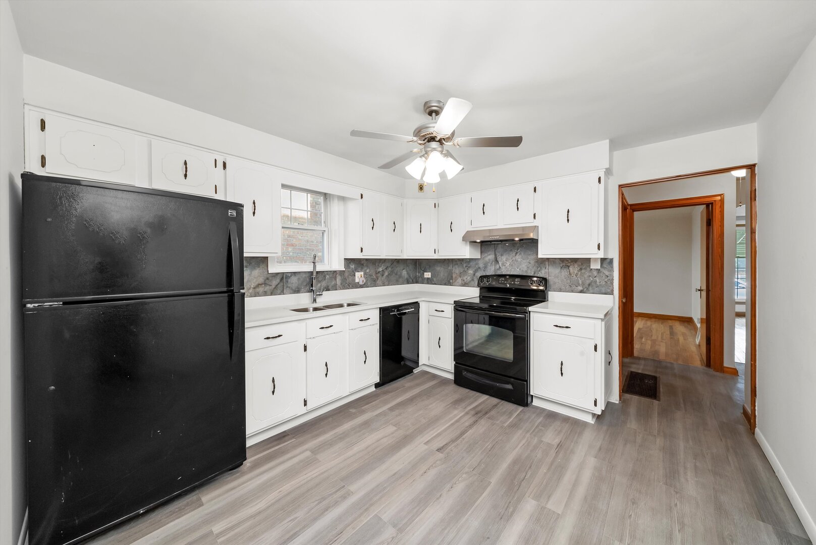 Welcome to this beautifully updated 5-bedroom, 2-bathroom home featuring modern updates throughout. Step inside to find refinished hardwood floors, new flooring, and home freshly painted all throughout. The kitchen offers refinished cabinets, quartz countertops, and modern finishes. Upstairs, you will find 2 spacious bedrooms, new doors, and an updated bathroom. Unfinished open basement, ready for your ideas. The automatic garage door has been serviced and includes a fixed power kill switch located on the right side of the door in case of emergency. Includes all appliances. This move-in-ready home combines comfort, style, and quality updates throughout. Schedule your showing today.