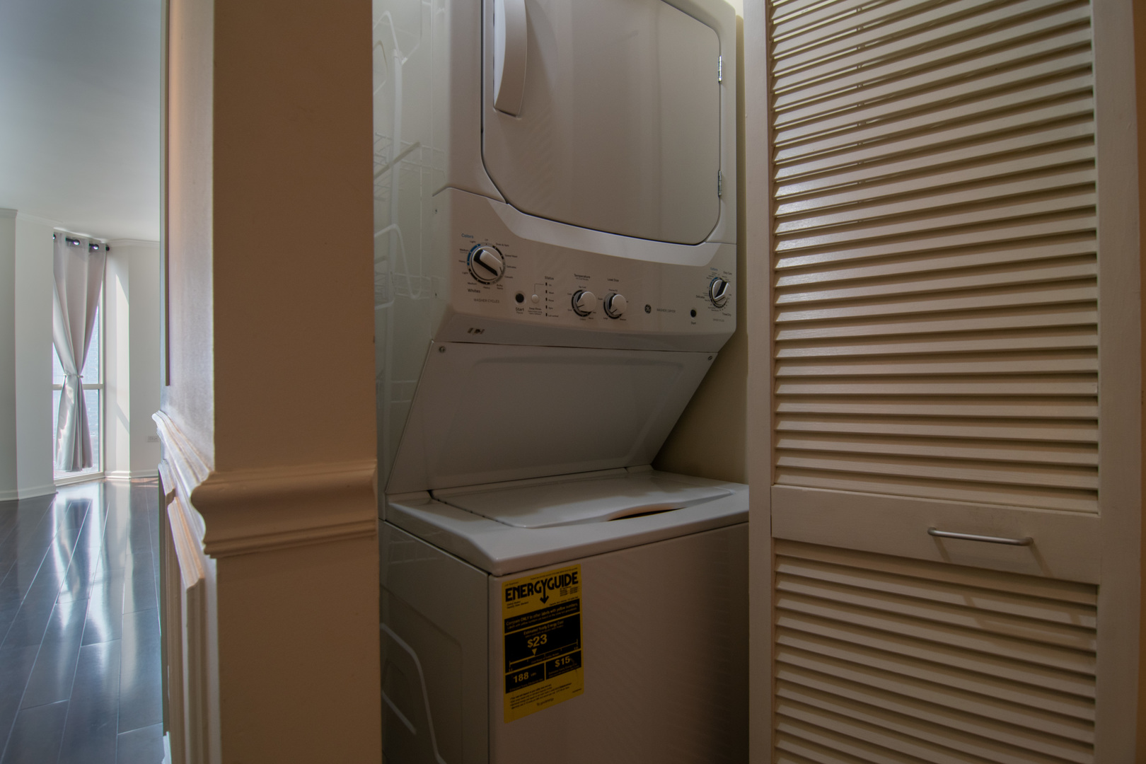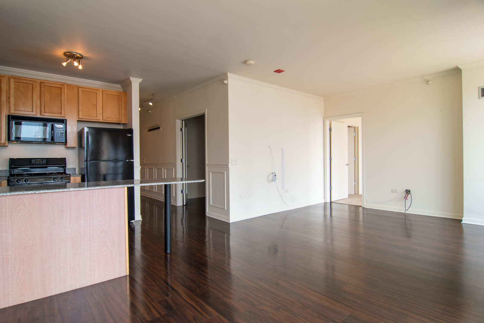 Bright and sunny SOUTH-FACING 1 bedroom with a DEN and 1 and a half bathrooms has come on the market for the first time since 2002. The open concept floor plan opens out to the large private balcony ideal for entertaining. The stunning floor to ceiling windows showcase the Chicago skyline in the background. The primary suite has a large bedroom, with an oversized walk in closet. Off the kitchen is a den and half bathroom making this the perfect place for your guests. Washer and dryer conveniently located in the unit. Deeded parking included with pricHOA includes water, parking, heat, AC, gas, trash AND all of the building amenities. Two dogs per unit and is conveniently located down the street from Larrabee Dog Park. Located within walking distance to East Bank Club, the riverwalk, a dog park, playgrounds, restaurants, grocery stores, and all River North has to offer.