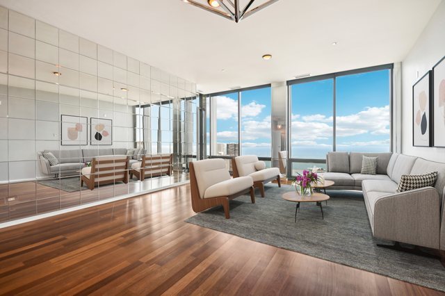 The Park Monroe is a luxury high-rise located in the heart of the Loop, offering stunning views and high-end amenities. This east-facing, high floor, 2-bedroom home features a spacious, open-concept living area with floor-to-ceiling windows and large terrace that provides unobstructed, panoramic views of the city, Lake Michigan, and Millennium Park. The ’21 tier is rarely available, has one of the largest floor plans and is just one of the few units offering private outdoor space. The kitchen includes modern Bosch stainless steel appliances, granite backsplash and countertops, sleek cabinetry, and a large island. Both bedrooms have generous closet space, with the primary bedroom featuring an updated en-suite bathroom with marble tiling, double sinks, a soaking tub, and a separate glass-enclosed shower. The spacious second bedroom is closed off with glass, ideal for a guest room, home office, or roommate. The guest bath has been updated with marble tiling and a modern vanity. Other features include gorgeous Brazilian cherry hardwood floors throughout, full size walk in laundry room, custom lighting, and 10′ high ceilings. Deeded XL garage parking space available for an additional $40,000. The building itself offers top-notch amenities, such as a rooftop deck, fitness center, indoor pool, 24-hour door staff, and resident lounge. Being centrally located, the Park Monroe also offers easy access to dining, shopping, and entertainment, along with proximity to public transportation, making it a prime spot for urban living in Chicago.