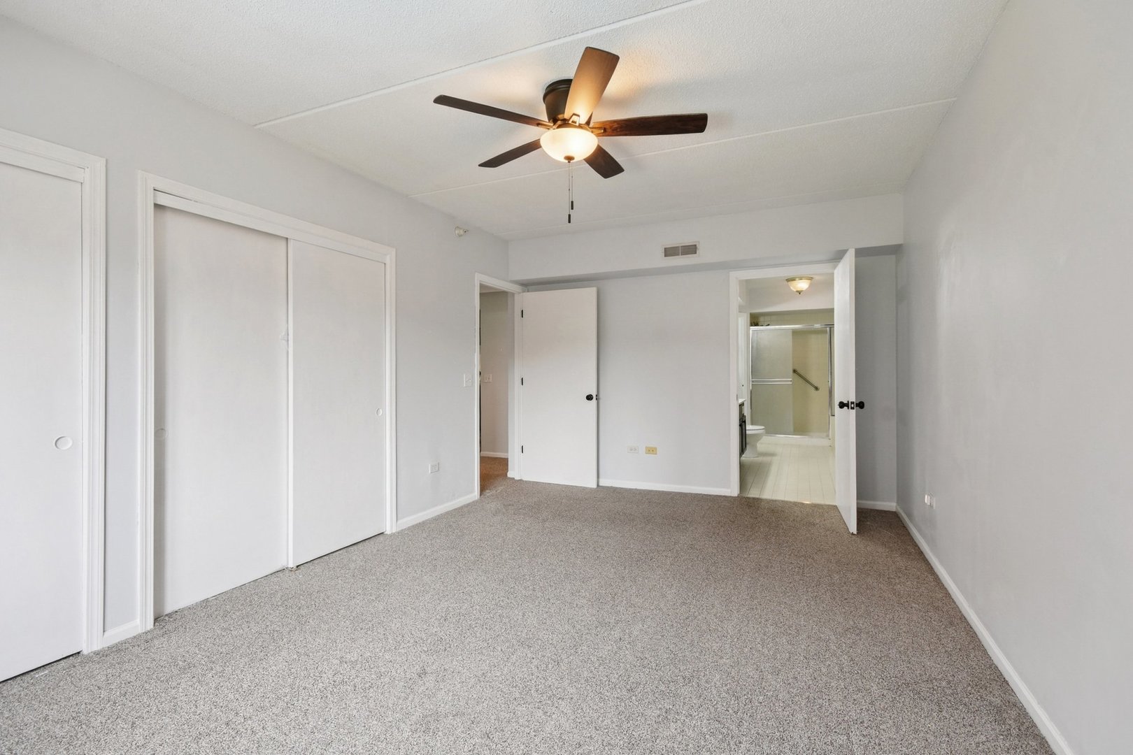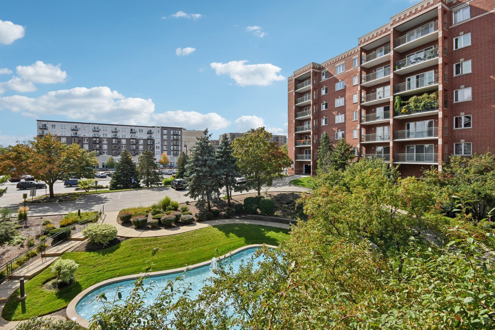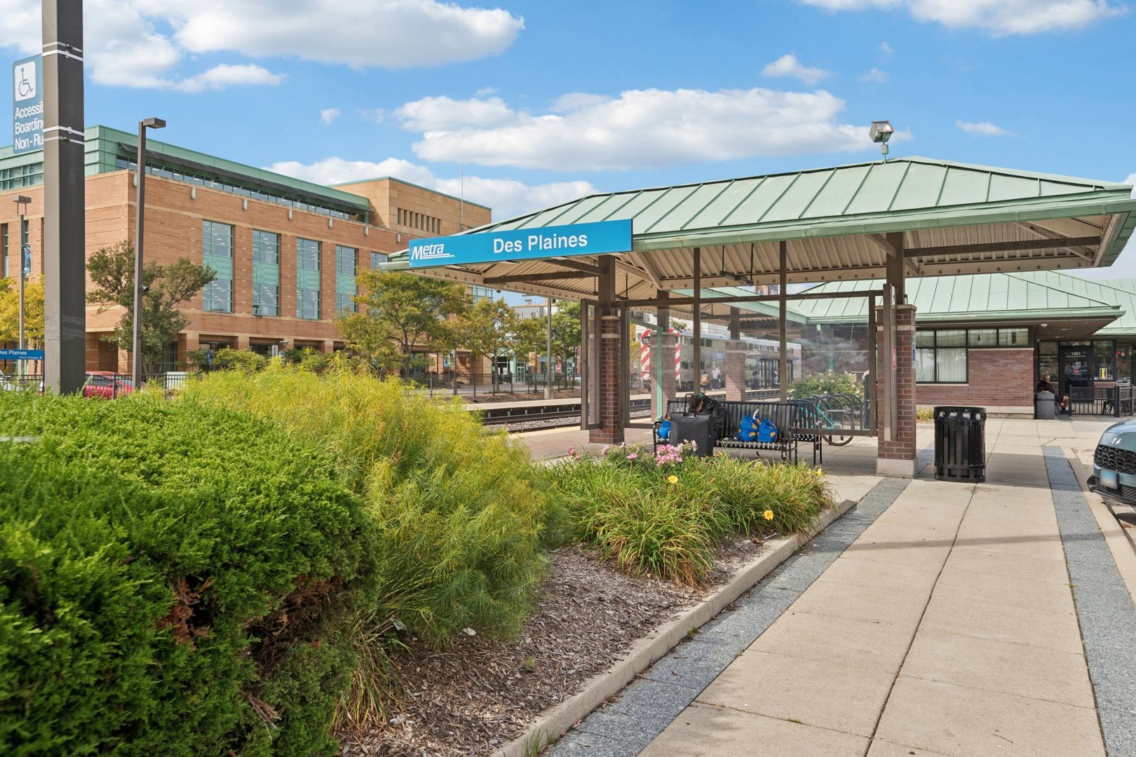 Modern & spacious 2-Bed/2-Bth condo in perfect Des Plaines location! This unit is updated and move-in ready! As you enter, you’re greeted by an expansive living room/dining room combo with built-ins including a bar fridge and sliders that lead out to your large, private balcony. The kitchen has been updated and features black SS appliances, shaker cabinets and modern hardware and flooring. The spacious Primary suite has tons of storage space between 2 closets and a wall of cabinets in the large en-suite bathroom. The bathroom also houses the separate laundry room. Another great sized bedroom and updated full bath round out this unit. 1 parking spot on 2nd floor (#52) in heated garage included plus a storage unit behind the parking. You can’t beat this condo or it’s location – centrally located in downtown Des Plaines you are steps away from the newly renovated and reopened Des Plaines Theatre, tons of restaurants, groceries, gyms, the library and so much more. You’re also directly across from the Metra station so transit into the city is a breeze. Schedule your tour today!