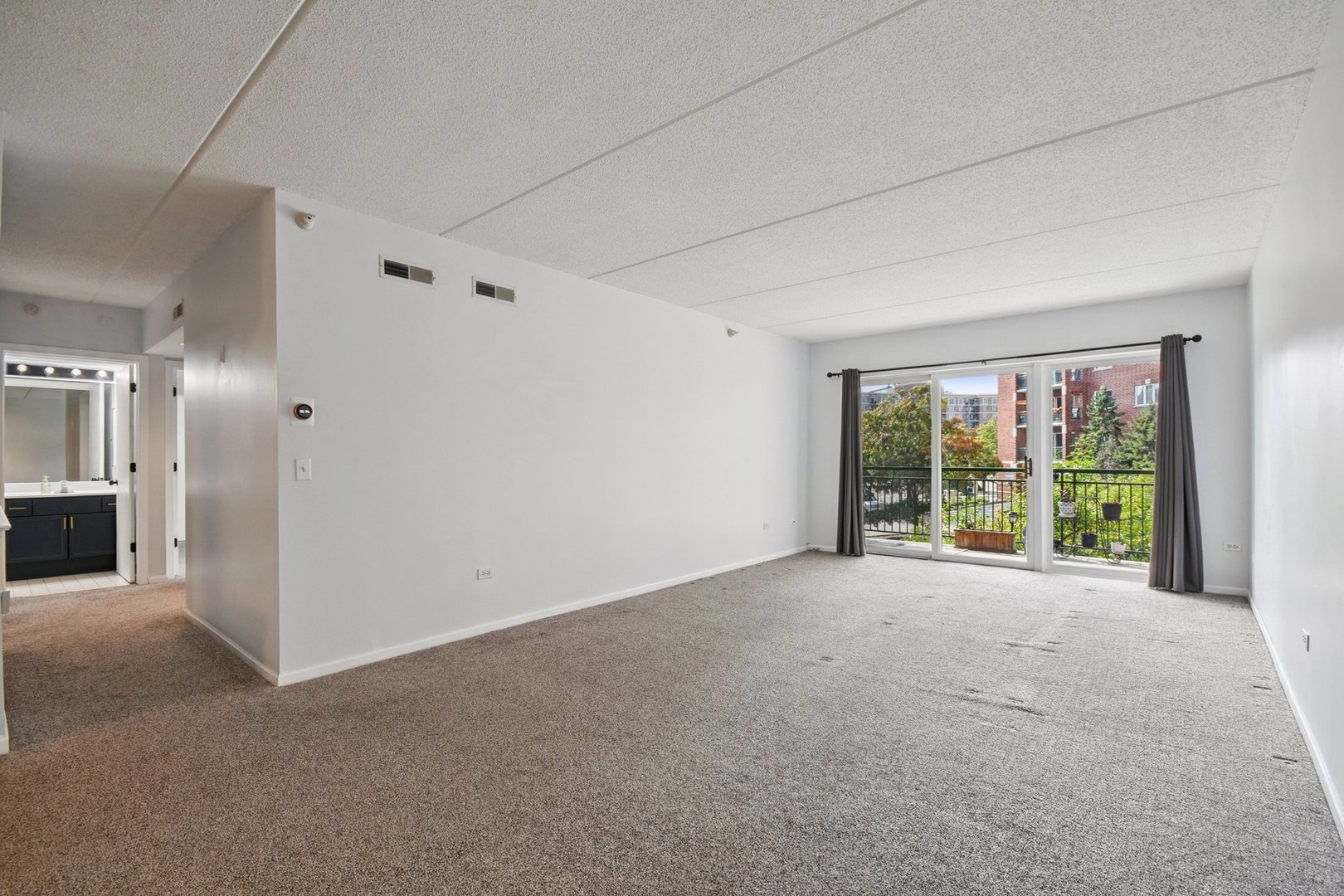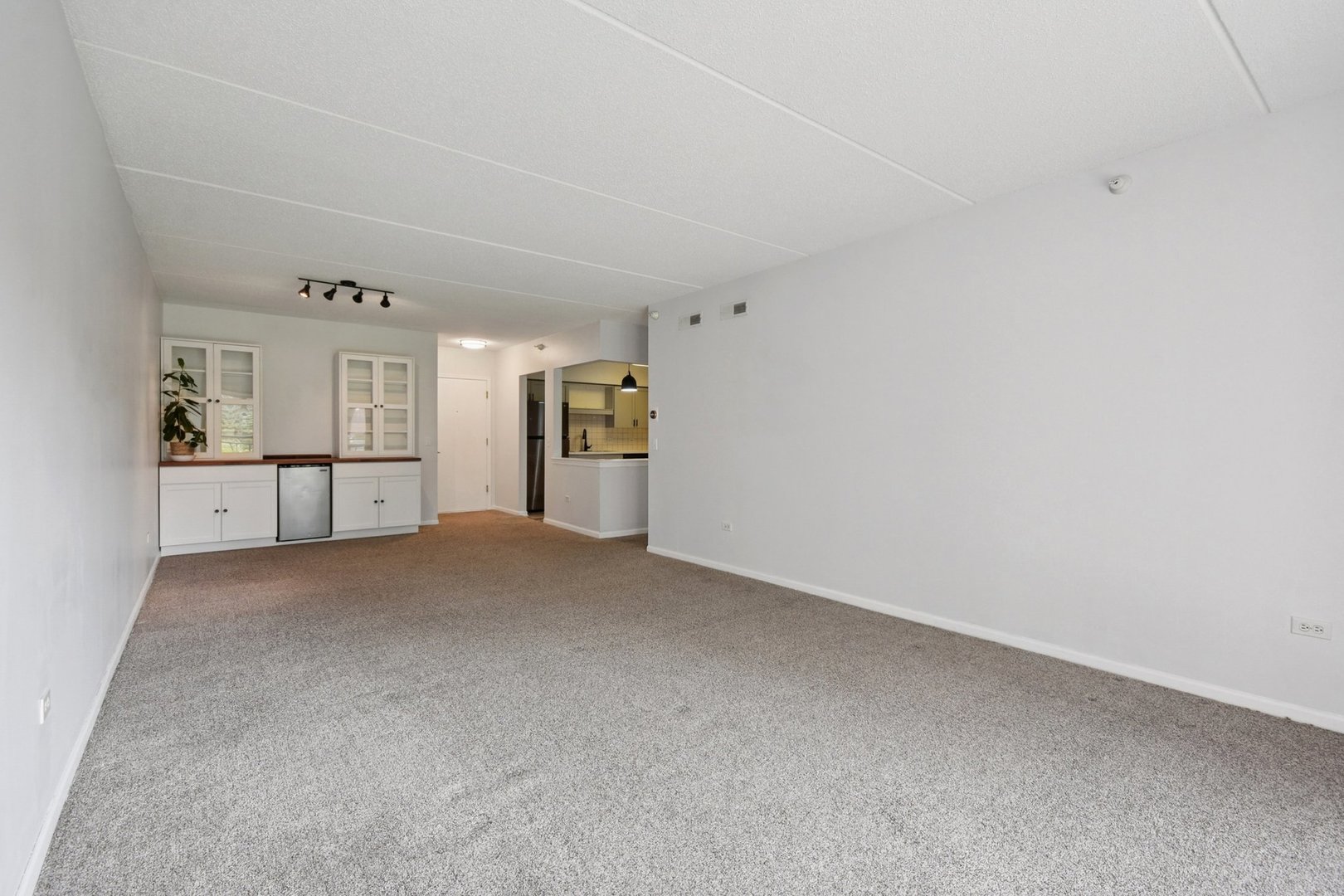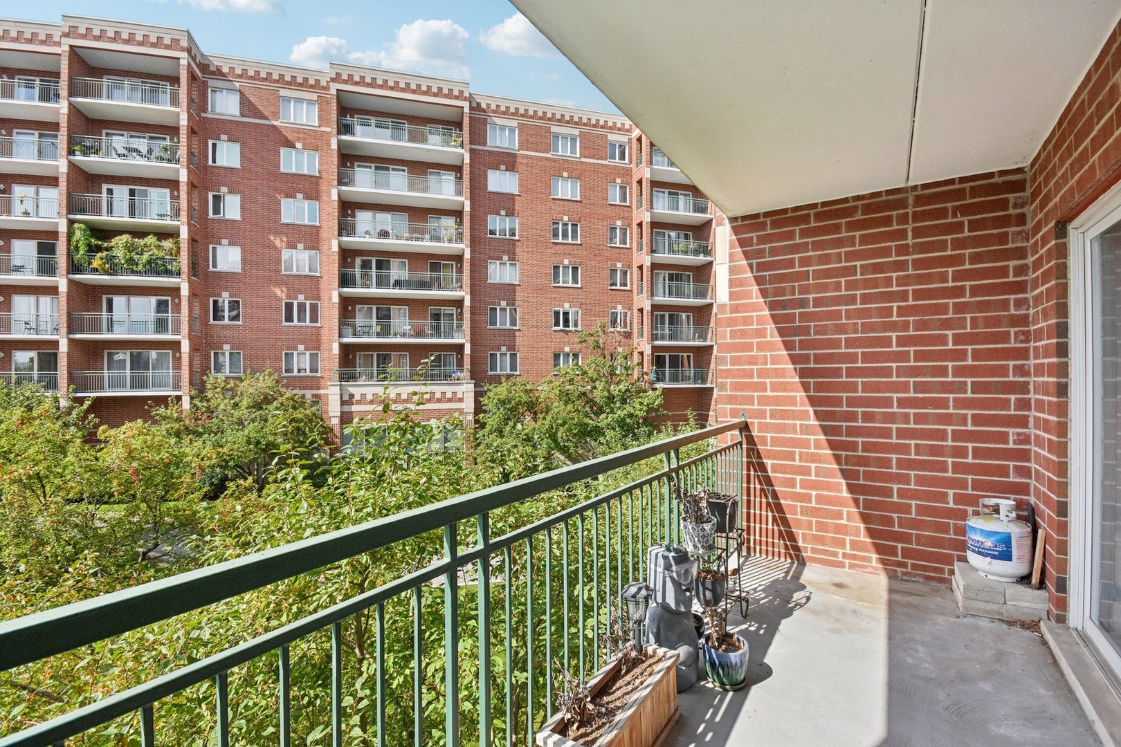 Modern & spacious 2-Bed/2-Bth condo in perfect Des Plaines location! This unit is updated and move-in ready! As you enter, you’re greeted by an expansive living room/dining room combo with built-ins including a bar fridge and sliders that lead out to your large, private balcony. The kitchen has been updated and features black SS appliances, shaker cabinets and modern hardware and flooring. The spacious Primary suite has tons of storage space between 2 closets and a wall of cabinets in the large en-suite bathroom. The bathroom also houses the separate laundry room. Another great sized bedroom and updated full bath round out this unit. 1 parking spot on 2nd floor (#52) in heated garage included plus a storage unit behind the parking. You can’t beat this condo or it’s location – centrally located in downtown Des Plaines you are steps away from the newly renovated and reopened Des Plaines Theatre, tons of restaurants, groceries, gyms, the library and so much more. You’re also directly across from the Metra station so transit into the city is a breeze. Schedule your tour today!