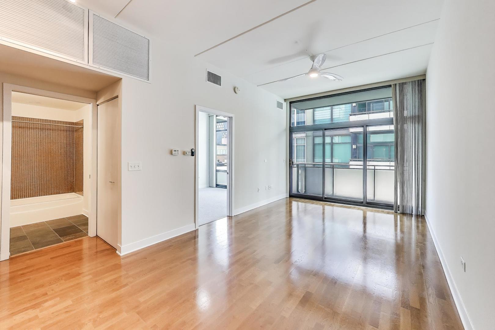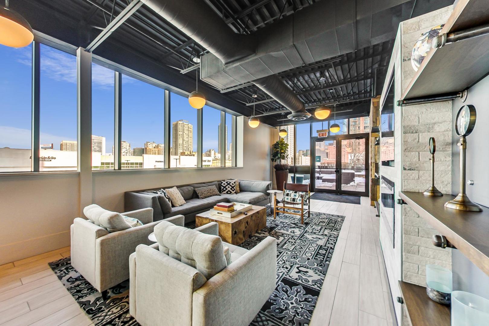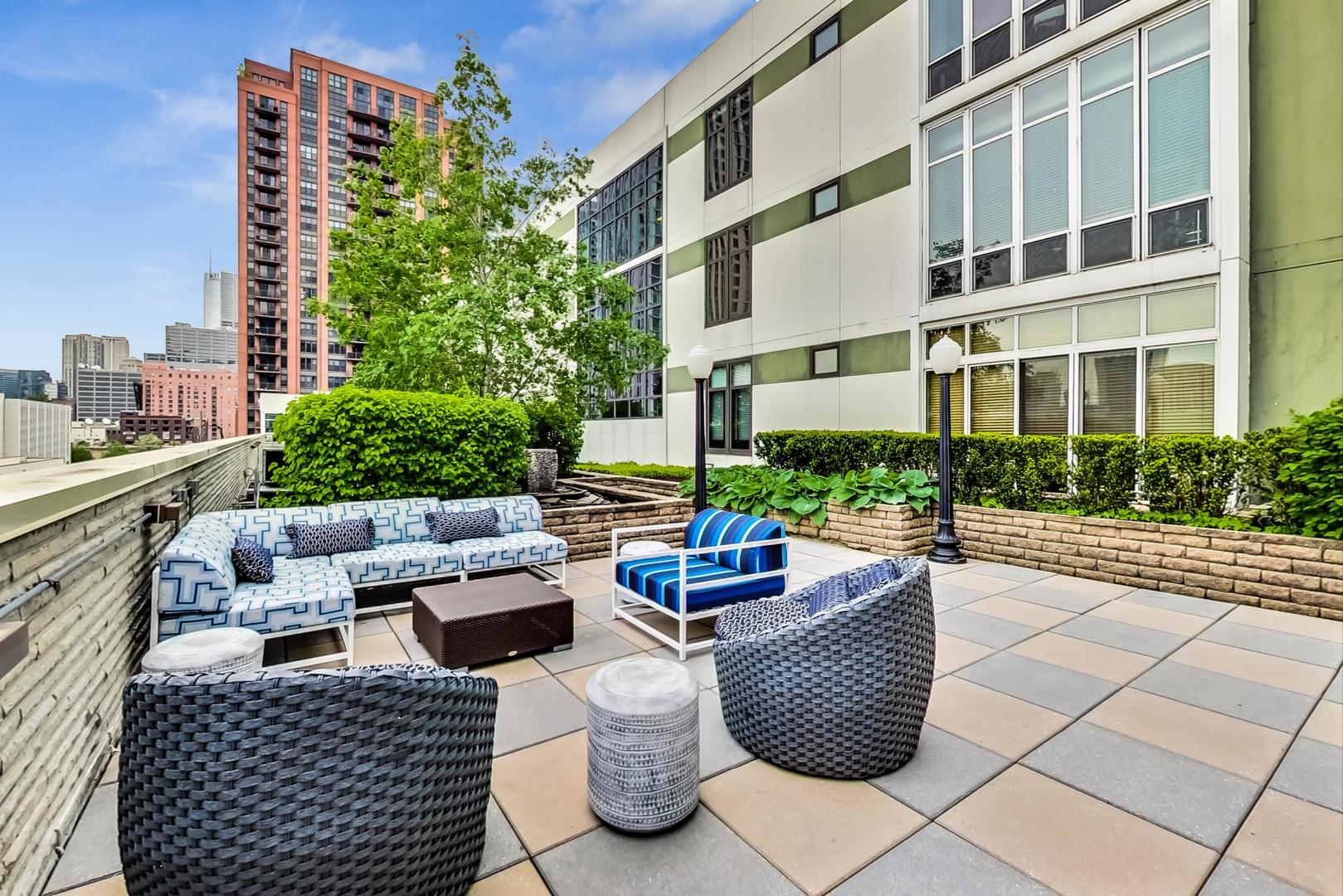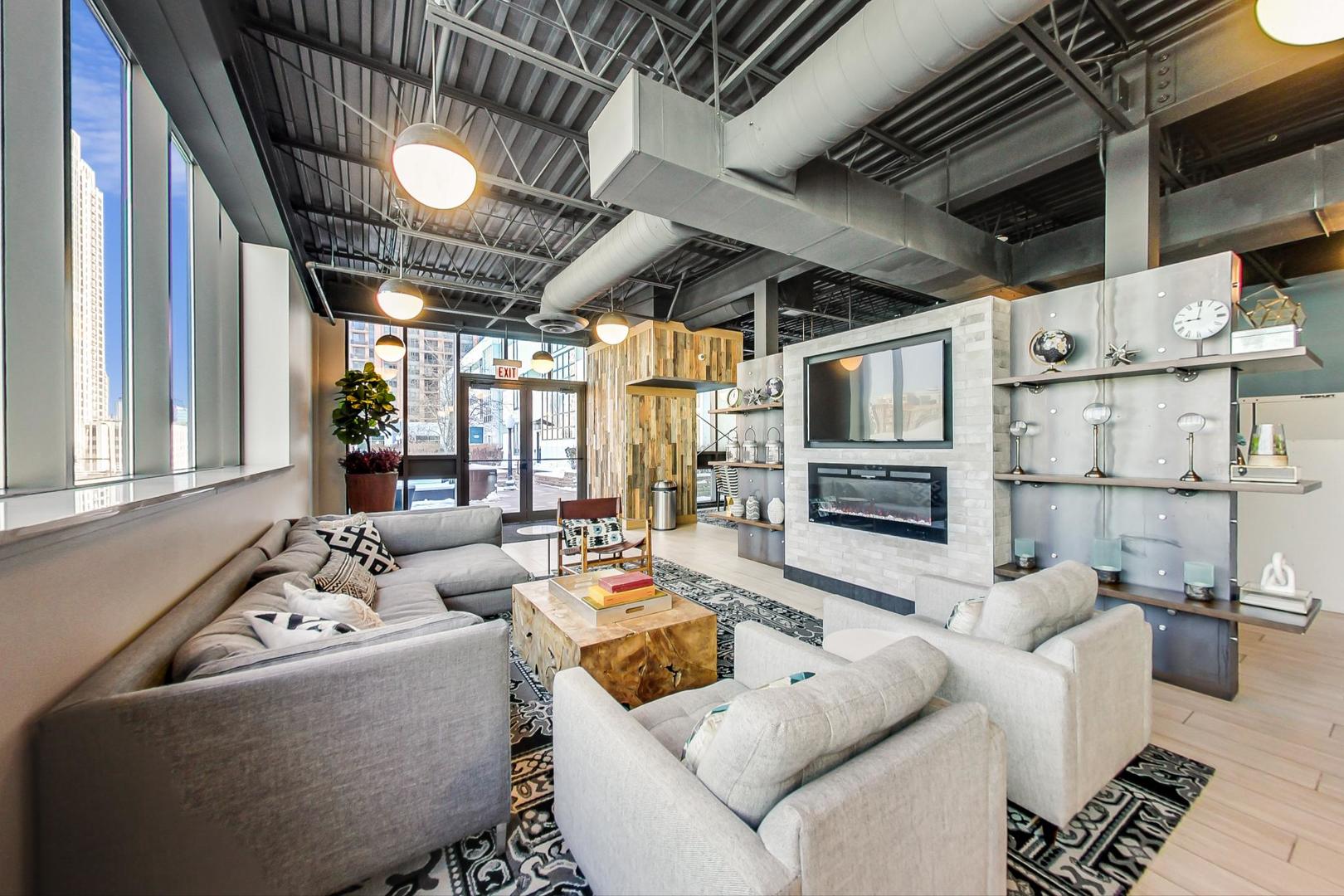 Pristine 1 bedroom in the Fulton River District! Kitchen with granite counters, Italian-style cabinets, SS appliances and glass mosaic tile backsplash. Hardwood floors, track lighting, brand new carpet in bedroom and entire unit was just painted. Newer Washer/Dryer in unit. Updated bath with slate floor. Private balcony, fitness center, party room, business center and dog run. Plus rooftop terrace (entrance on this floor)! Huge storage locker. But that’s not all: heated garage space #104 included!