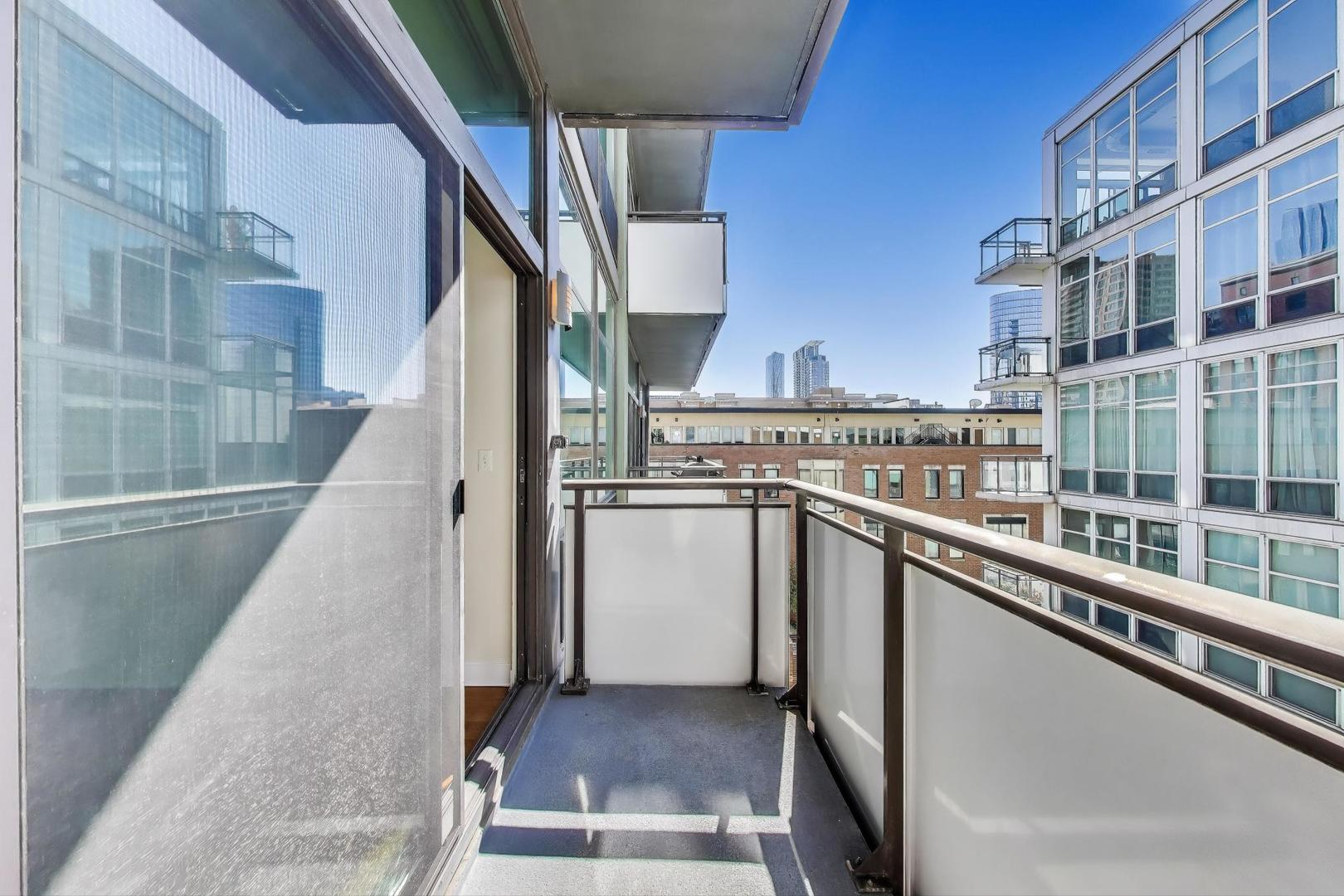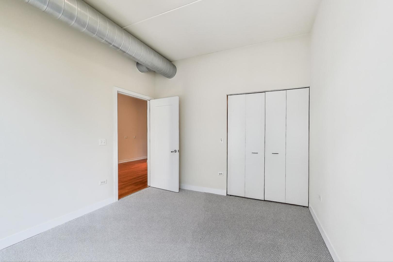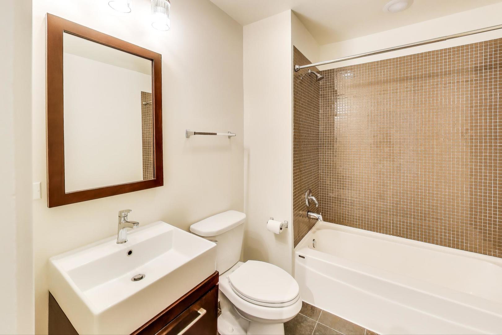 Pristine 1 bedroom in the Fulton River District! Kitchen with granite counters, Italian-style cabinets, SS appliances and glass mosaic tile backsplash. Hardwood floors, track lighting, brand new carpet in bedroom and entire unit was just painted. Newer Washer/Dryer in unit. Updated bath with slate floor. Private balcony, fitness center, party room, business center and dog run. Plus rooftop terrace (entrance on this floor)! Huge storage locker. But that’s not all: heated garage space #104 included!