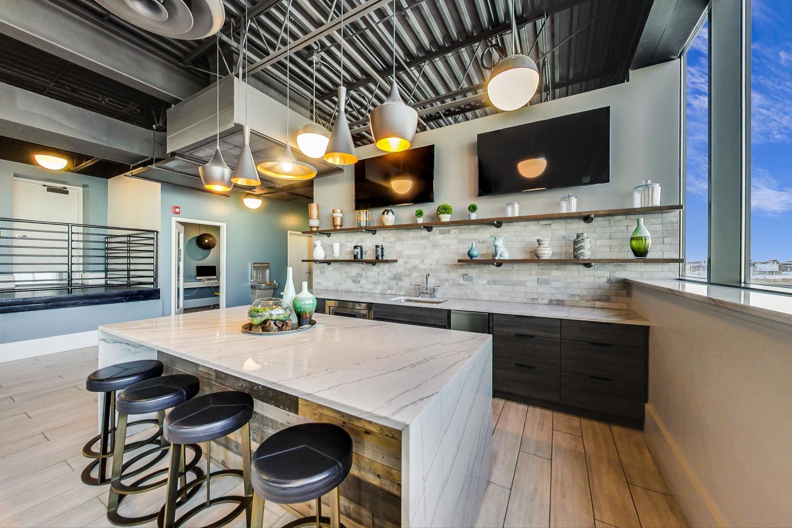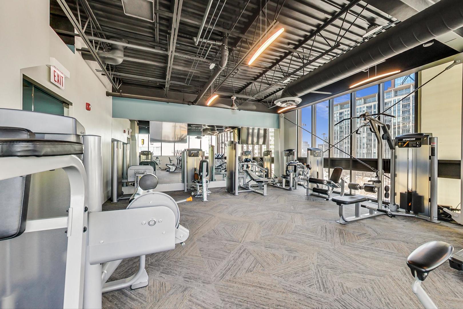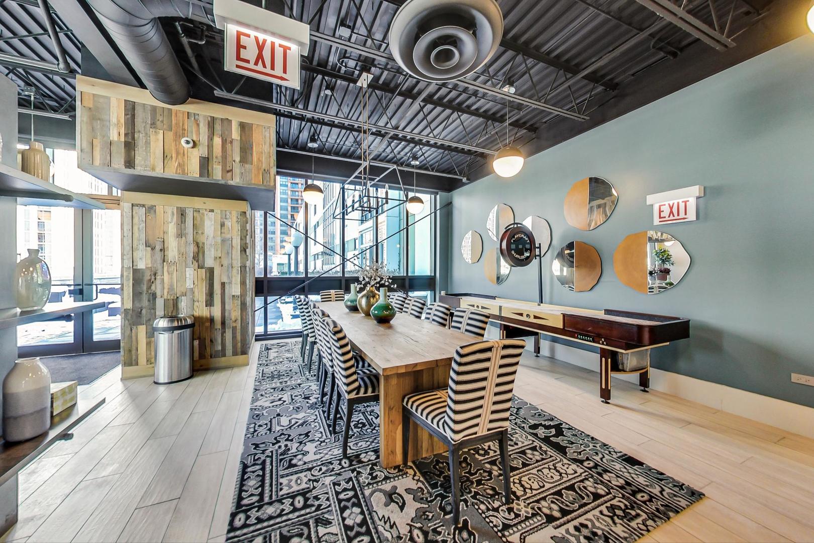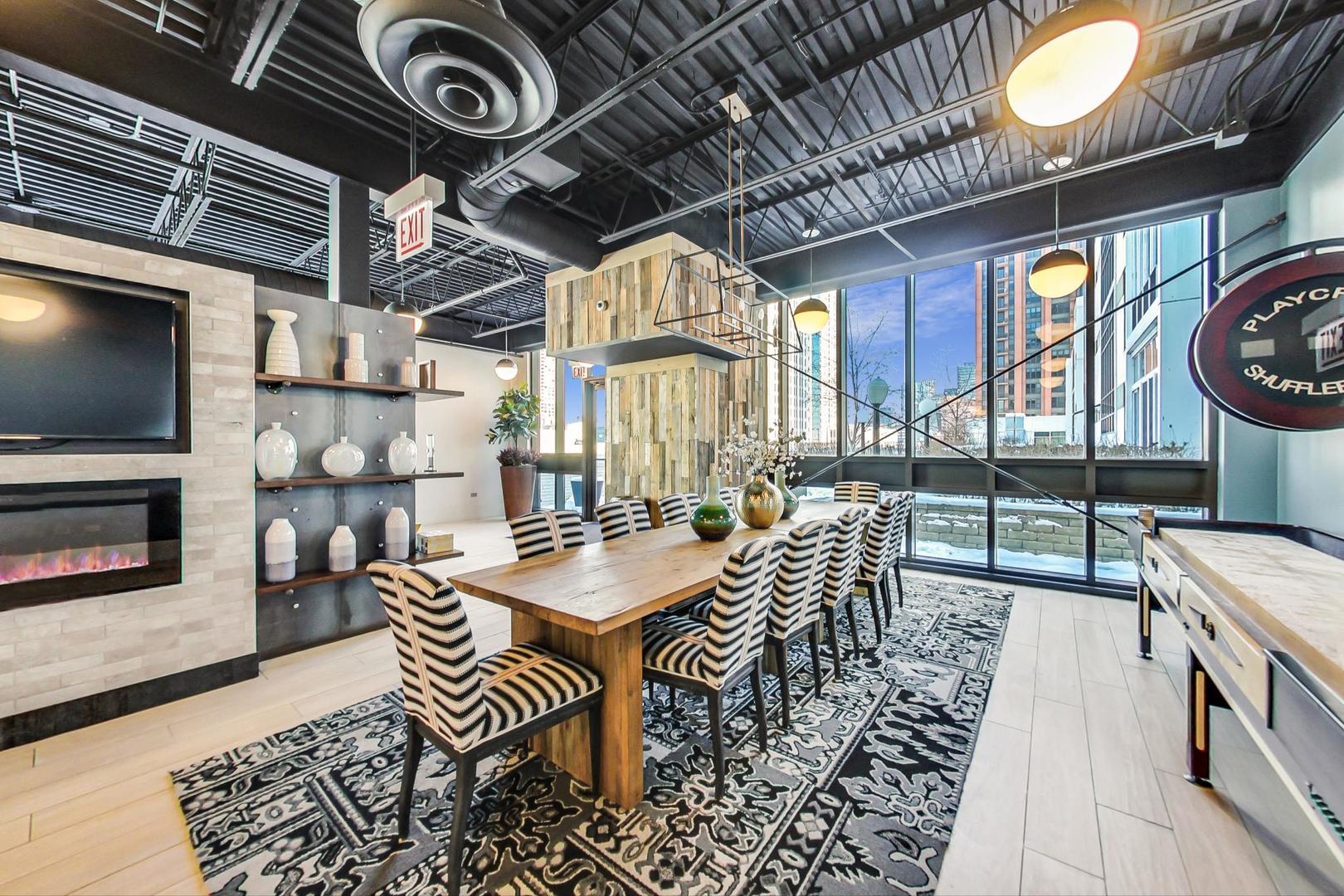Pristine 1 bedroom in the Fulton River District! Kitchen with granite counters, Italian-style cabinets, SS appliances and glass mosaic tile backsplash. Hardwood floors, track lighting, brand new carpet in bedroom and entire unit was just painted. Newer Washer/Dryer in unit. Updated bath with slate floor. Private balcony, fitness center, party room, business center and dog run. Plus rooftop terrace (entrance on this floor)! Huge storage locker. But that’s not all: heated garage space #104 included!