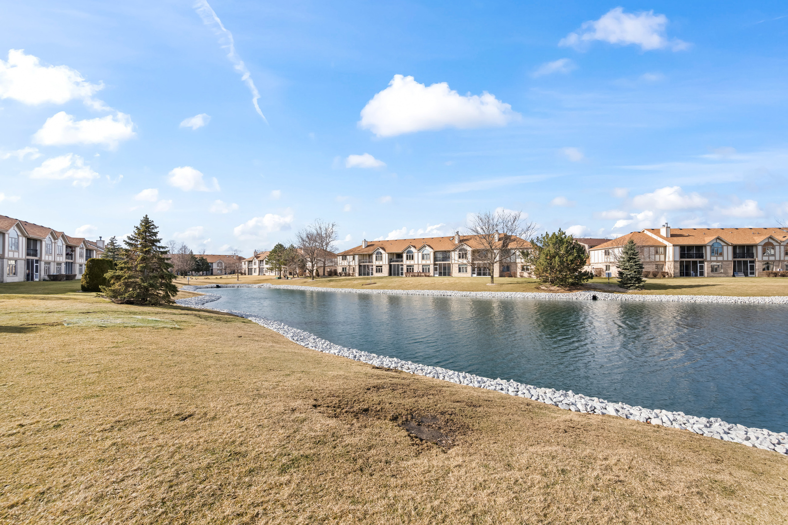Light-filled and inviting condo in the highly sought-after The Pines subdivision of Tinley Park, a well-maintained 55+ adult community. (Note: The Pines allows up to one fifth of the units to be owned by individuals aged 18-54. This unit is available to an under 55 buyer!) Nestled in a quiet, close-knit community, this peaceful home offers serene pond views and a welcoming atmosphere throughout. Step inside to a spacious, open-concept living and dining area featuring vaulted ceilings and a gas fireplace-perfect for both everyday comfort and entertaining. The thoughtfully designed kitchen provides generous counter space and a tranquil eat-in area overlooking the pond, while the separate dining room easily accommodates dinner parties and gatherings. Enjoy outdoor relaxation on the large screened-in balcony, complete with an additional walk-in storage room. The sun-drenched primary suite is a true retreat, offering a large walk-in closet and a spa-like ensuite bath with abundant counter space, a separate shower, and a luxurious whirlpool tub. A spacious second bedroom with ample closet space and an additional full bath ensures comfort for guests. Recent updates include brand-new carpeting in both bedrooms and fresh paint throughout the kitchen, bedrooms, and bathrooms in soothing, neutral tones. Additional highlights include an attached one-car garage with extra storage, driveway space, and plentiful guest parking just steps away. This quiet, safe, and beautifully kept community offers the perfect blend of comfort, convenience, and low-maintenance living. Home is part of an Estate and being offered AS-IS.