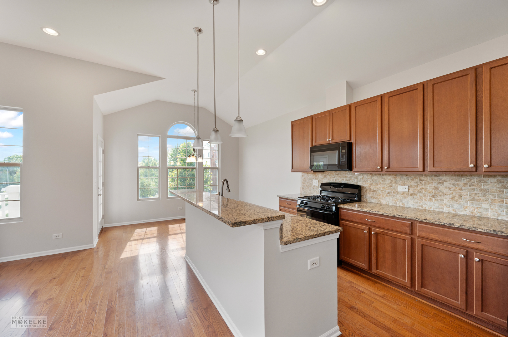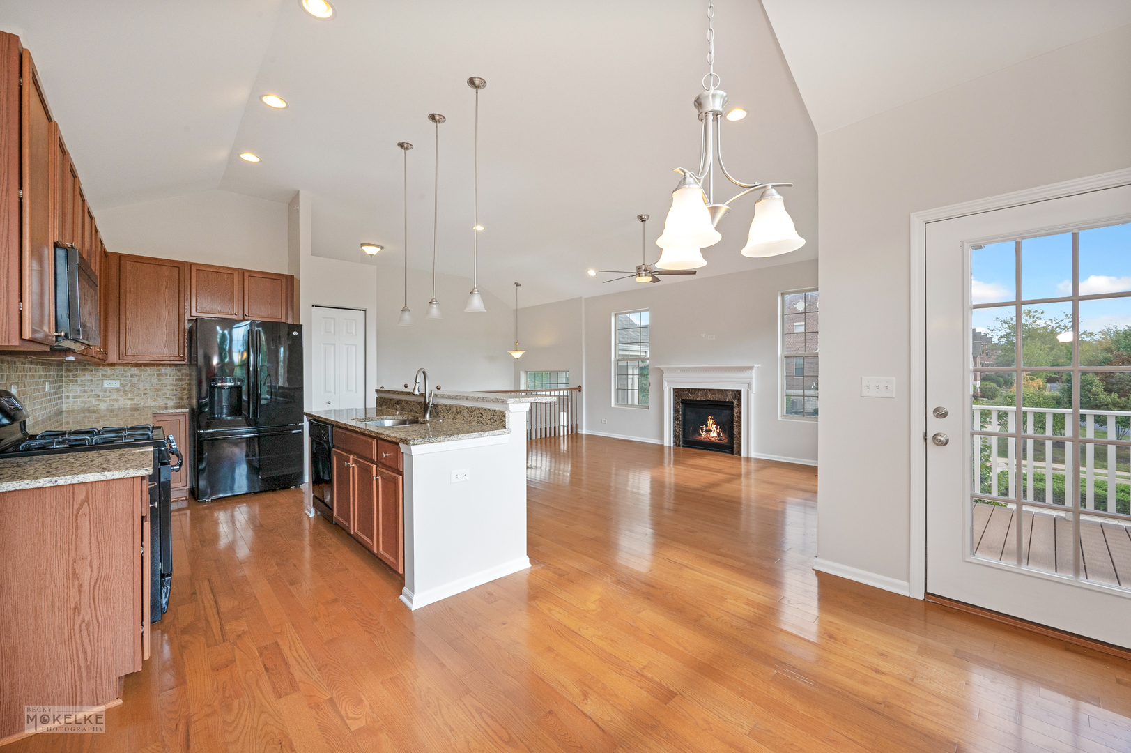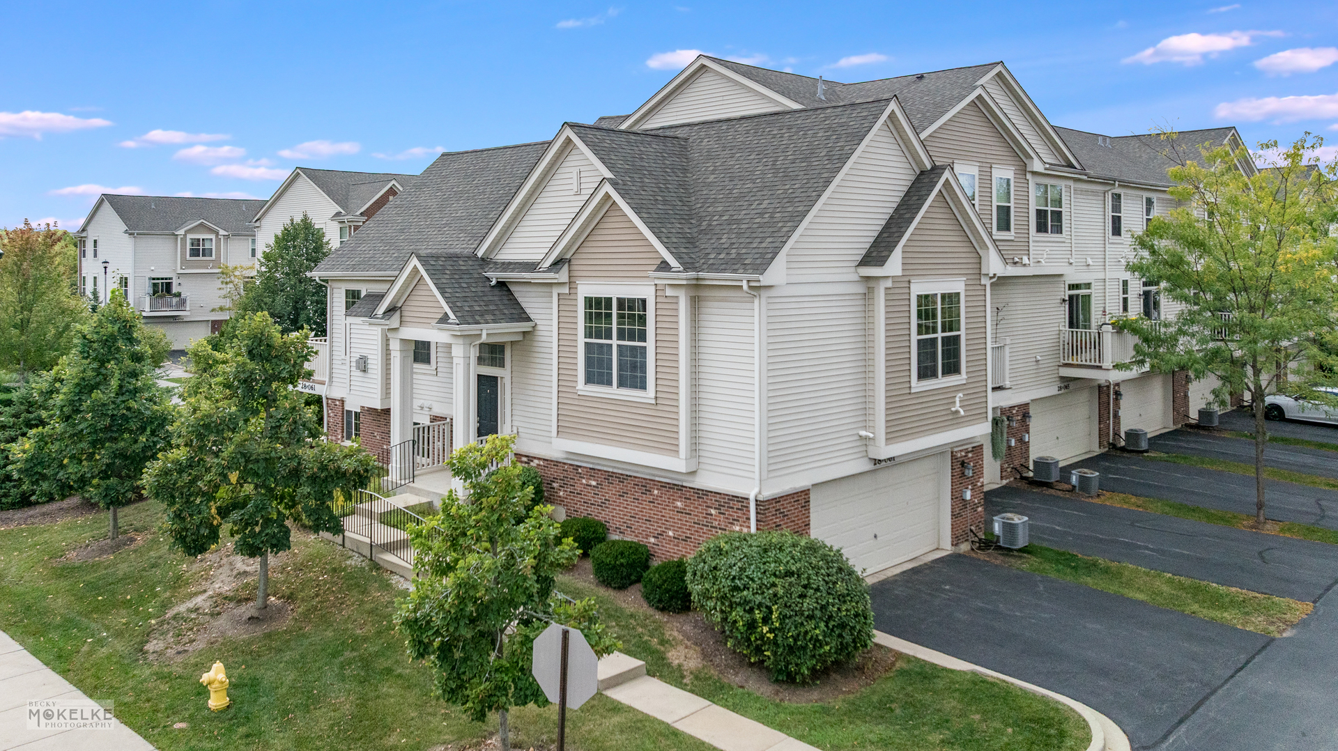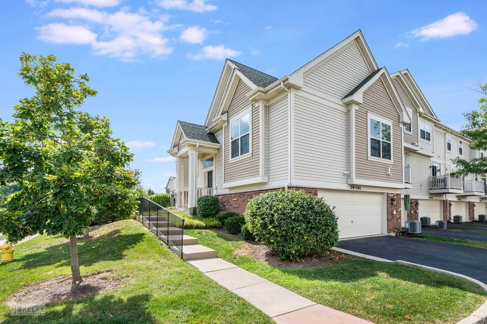 Step into this spacious and freshly updated end-unit townhouse, featuring 3 bedrooms, 3 full bathrooms, and a private entrance. The entire home has been recently painted-including walls, ceilings, trim, and doors-creating a bright and move-in-ready feel. The main level boasts a large family room filled with natural light, highlighted by a cozy gas fireplace and beautiful wood flooring throughout. The kitchen is a true standout with granite countertops, an updated sink, pantry closet, large island, stylish backsplash, under-cabinet lighting, and a new microwave (2022). Right next to the kitchen is a bright, window-filled breakfast room which leads out to the balcony. Go down the hallway to the primary suite which offers vaulted ceilings, dual walk-in closets, and a spa-like en suite bathroom with dual sinks, a soaking tub, separate shower, and brand new toilet. A spacious secondary bedroom with a large closet is located on the main floor, along with a full bath featuring a new toilet, oversized shower, and plenty of storage. Bedrooms have brand-new carpet for added comfort. The versatile lower level features new flooring throughout, a large great room, laundry room, and a third bedroom with French doors that can double as an office. A full bathroom and an attached 2.5-car garage complete this level. Additional highlights include a 30-year transferable builder warranty and a convenient location close to the train, shopping, and major highways.