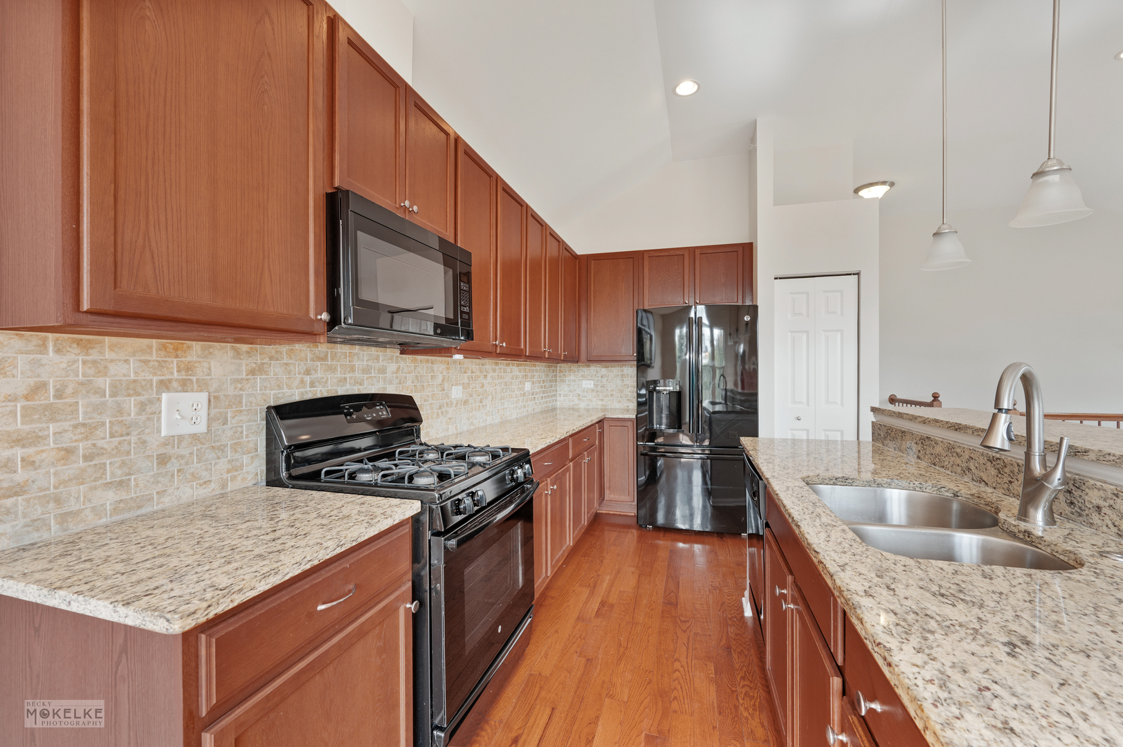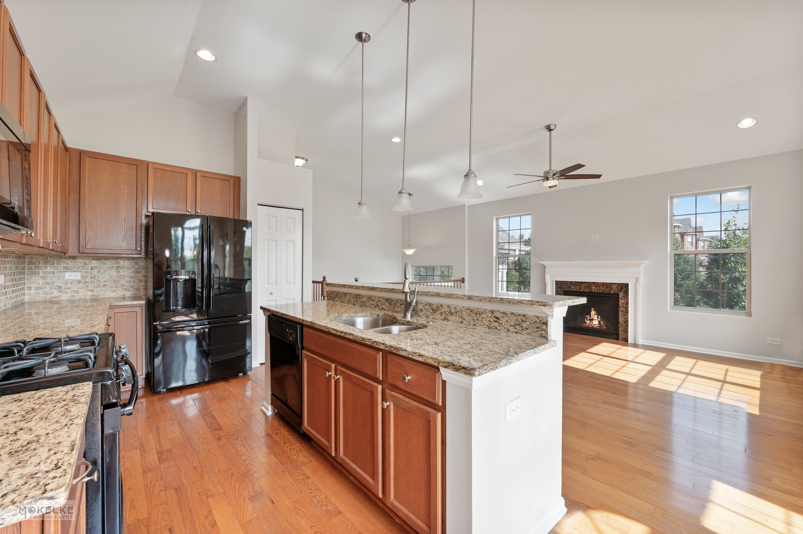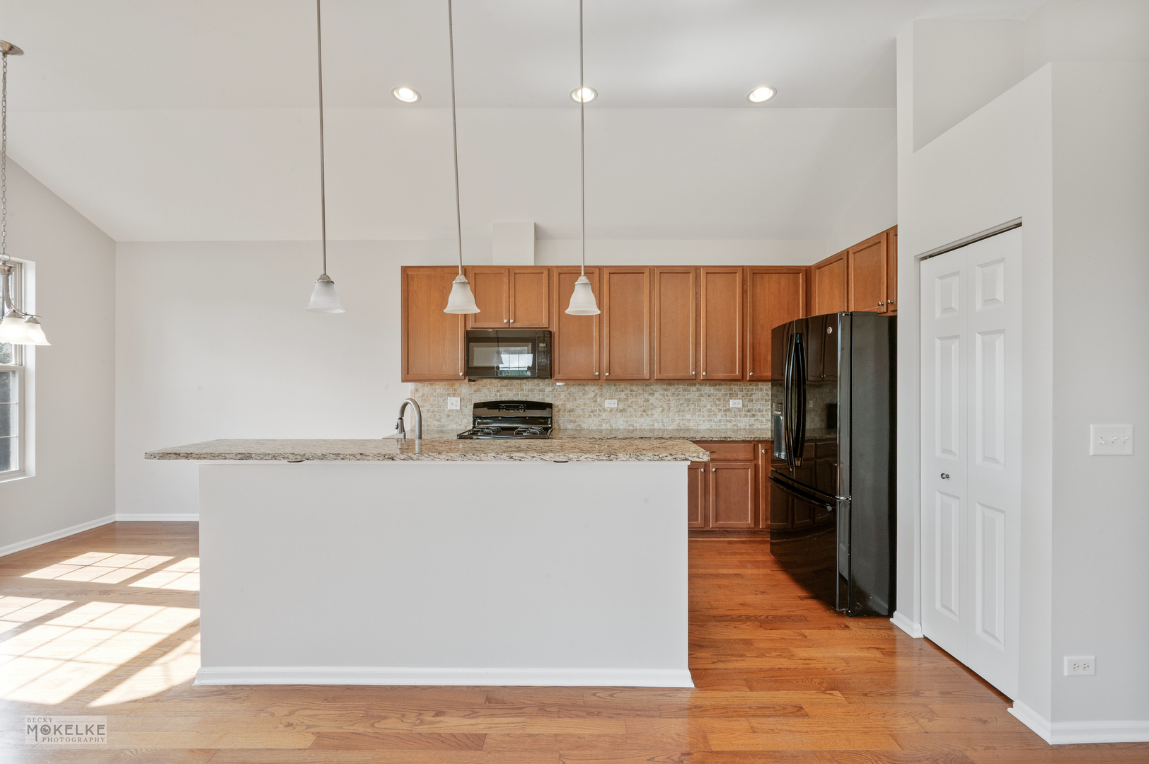 Step into this spacious and freshly updated end-unit townhouse, featuring 3 bedrooms, 3 full bathrooms, and a private entrance. The entire home has been recently painted-including walls, ceilings, trim, and doors-creating a bright and move-in-ready feel. The main level boasts a large family room filled with natural light, highlighted by a cozy gas fireplace and beautiful wood flooring throughout. The kitchen is a true standout with granite countertops, an updated sink, pantry closet, large island, stylish backsplash, under-cabinet lighting, and a new microwave (2022). Right next to the kitchen is a bright, window-filled breakfast room which leads out to the balcony. Go down the hallway to the primary suite which offers vaulted ceilings, dual walk-in closets, and a spa-like en suite bathroom with dual sinks, a soaking tub, separate shower, and brand new toilet. A spacious secondary bedroom with a large closet is located on the main floor, along with a full bath featuring a new toilet, oversized shower, and plenty of storage. Bedrooms have brand-new carpet for added comfort. The versatile lower level features new flooring throughout, a large great room, laundry room, and a third bedroom with French doors that can double as an office. A full bathroom and an attached 2.5-car garage complete this level. Additional highlights include a 30-year transferable builder warranty and a convenient location close to the train, shopping, and major highways.