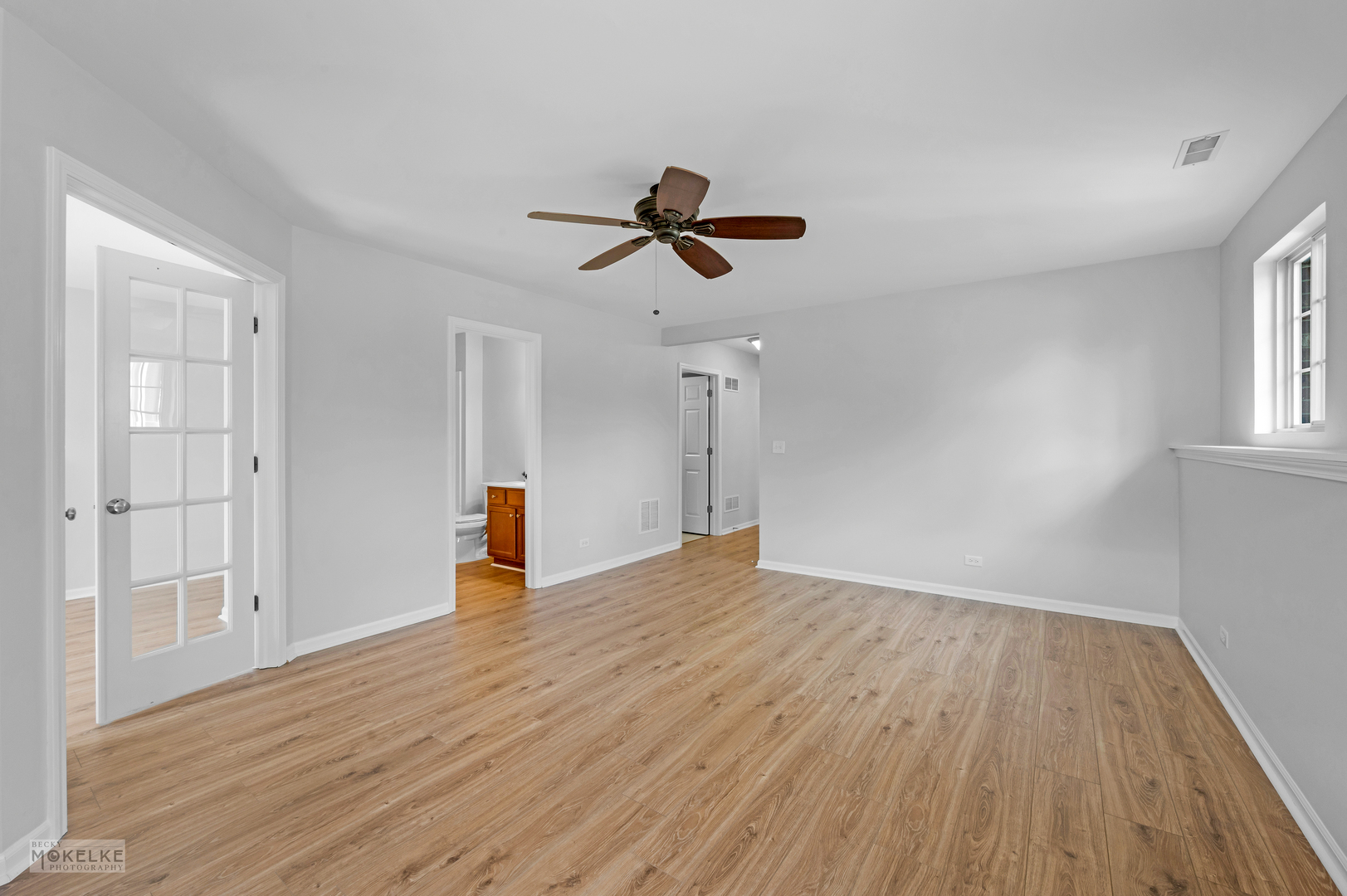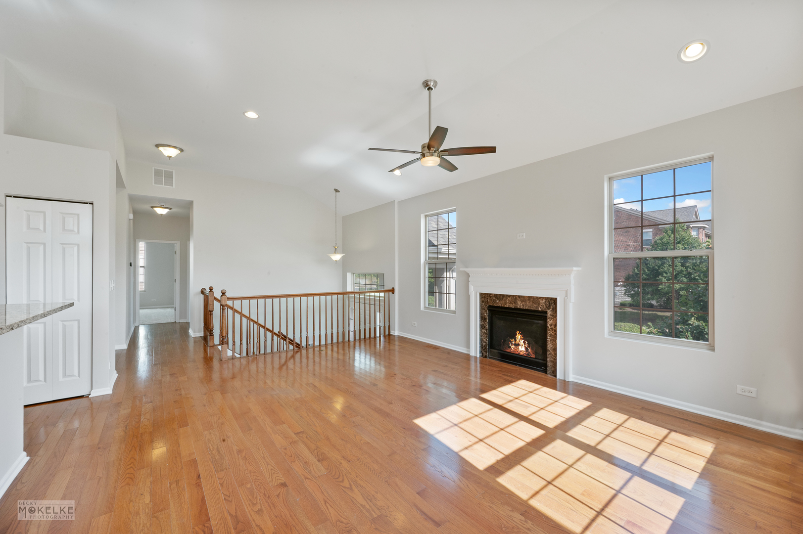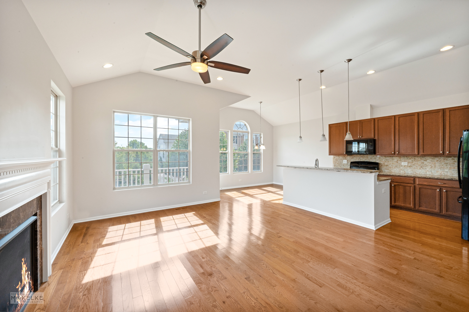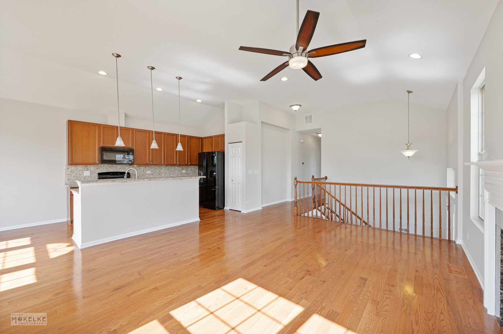 Step into this spacious and freshly updated end-unit townhouse, featuring 3 bedrooms, 3 full bathrooms, and a private entrance. The entire home has been recently painted-including walls, ceilings, trim, and doors-creating a bright and move-in-ready feel. The main level boasts a large family room filled with natural light, highlighted by a cozy gas fireplace and beautiful wood flooring throughout. The kitchen is a true standout with granite countertops, an updated sink, pantry closet, large island, stylish backsplash, under-cabinet lighting, and a new microwave (2022). Right next to the kitchen is a bright, window-filled breakfast room which leads out to the balcony. Go down the hallway to the primary suite which offers vaulted ceilings, dual walk-in closets, and a spa-like en suite bathroom with dual sinks, a soaking tub, separate shower, and brand new toilet. A spacious secondary bedroom with a large closet is located on the main floor, along with a full bath featuring a new toilet, oversized shower, and plenty of storage. Bedrooms have brand-new carpet for added comfort. The versatile lower level features new flooring throughout, a large great room, laundry room, and a third bedroom with French doors that can double as an office. A full bathroom and an attached 2.5-car garage complete this level. Additional highlights include a 30-year transferable builder warranty and a convenient location close to the train, shopping, and major highways.