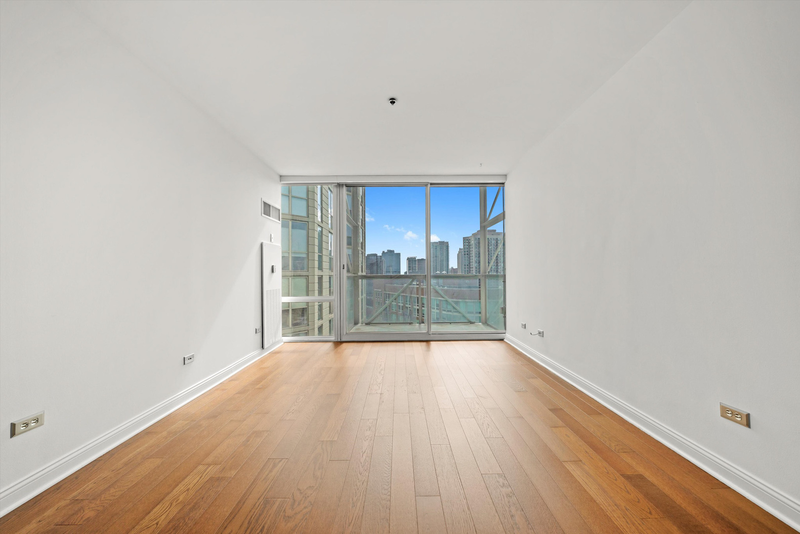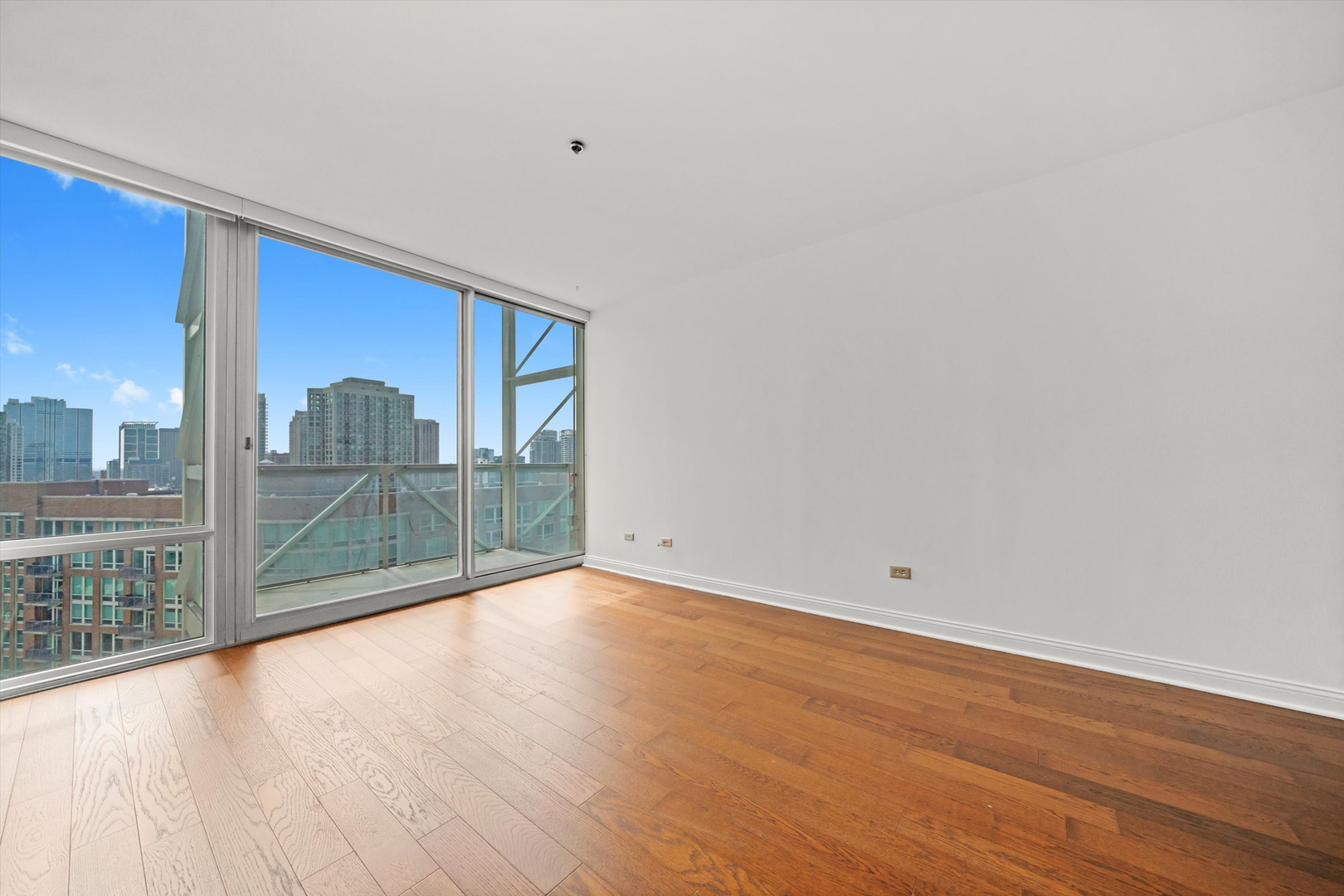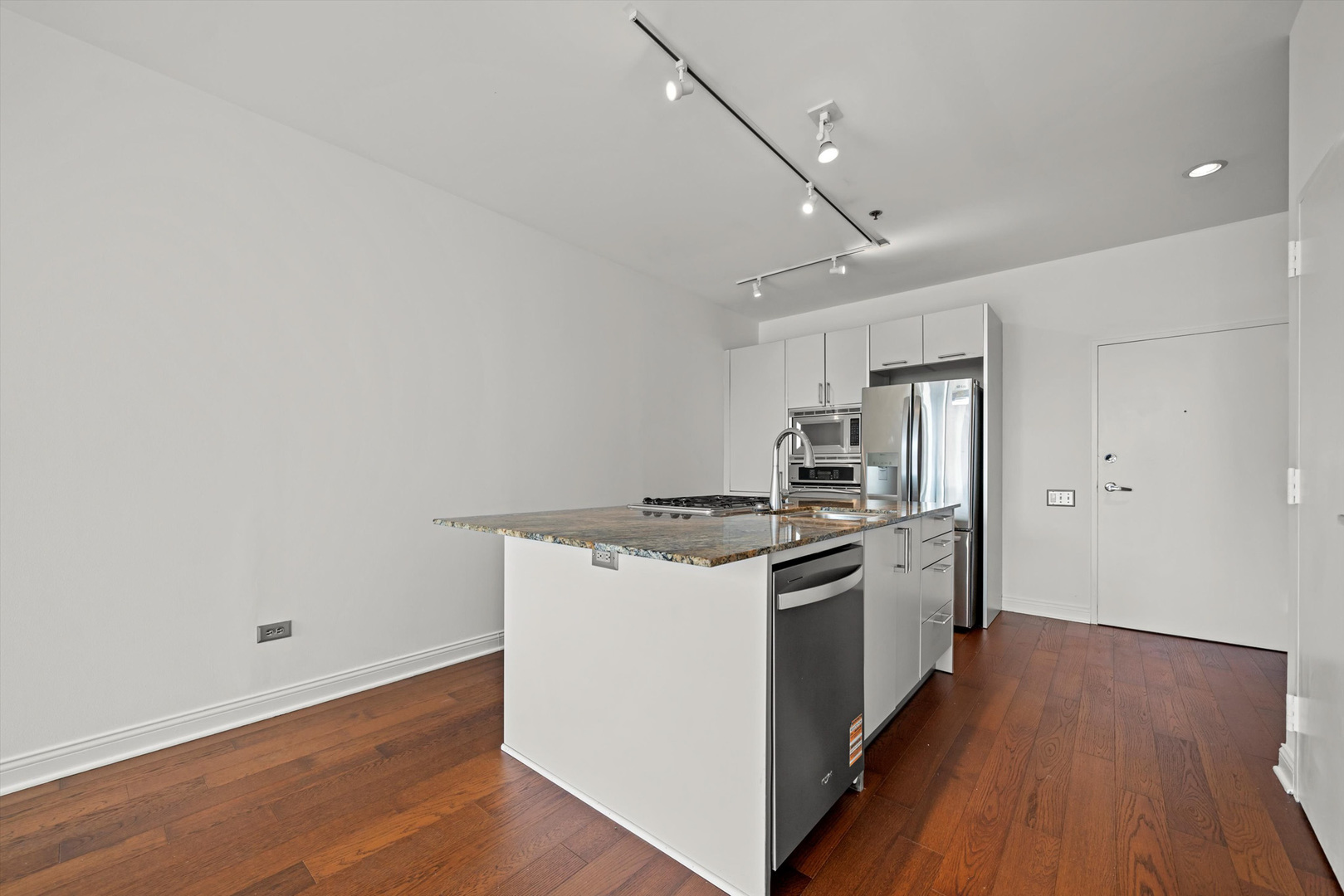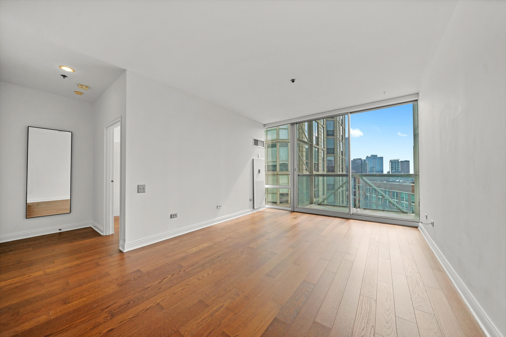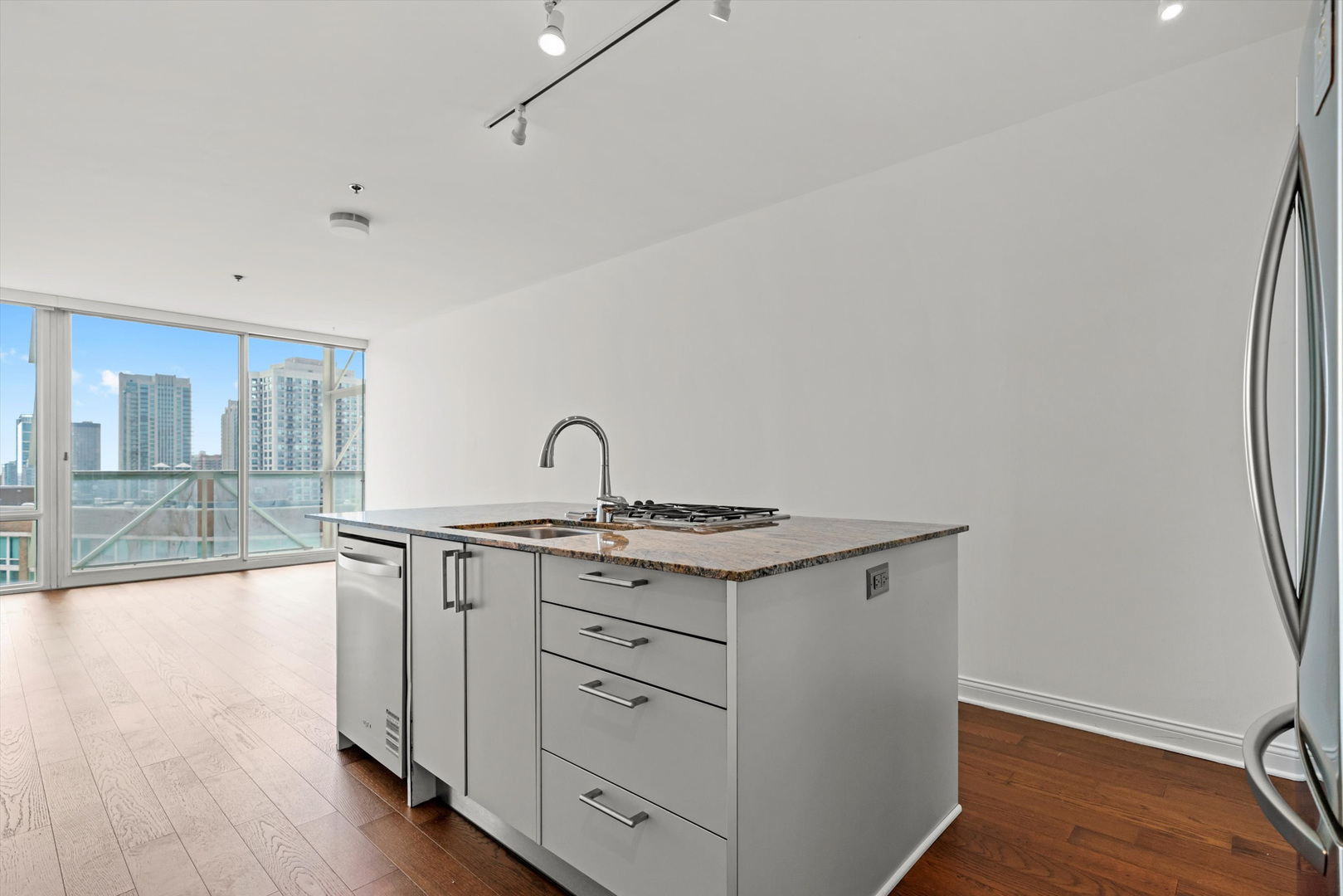 Stunning 1 Bedroom + Den in the Heart of River North! This rarely available “08” tier condo boasts floor-to-ceiling windows, hardwood floors, and a private balcony. The oversized kitchen features granite countertops, light gray/white cabinetry, stainless steel appliances, and a large island overlooking the open-concept living and dining area. The spacious den is ideal for a home office or flexible space to suit your needs. The bedroom comfortably fits a king-size bed and includes a walk-in closet. Upgrades include fresh paint, a fridge replaced in 2020, a dishwasher replaced in 2025, wood flooring updated in 2025, and a bathroom remodeled in 2019. Heated garage parking ($35K) and additional storage are included. Building amenities feature a 24/7 doorman, fitness center, and two nearby dog parks. Located just steps from the Loop, Starbucks, Erie Park, cafes, fine dining, CTA, and more! Take a 3D Tour – click the 3D button to explore every detail of this beautiful home.
