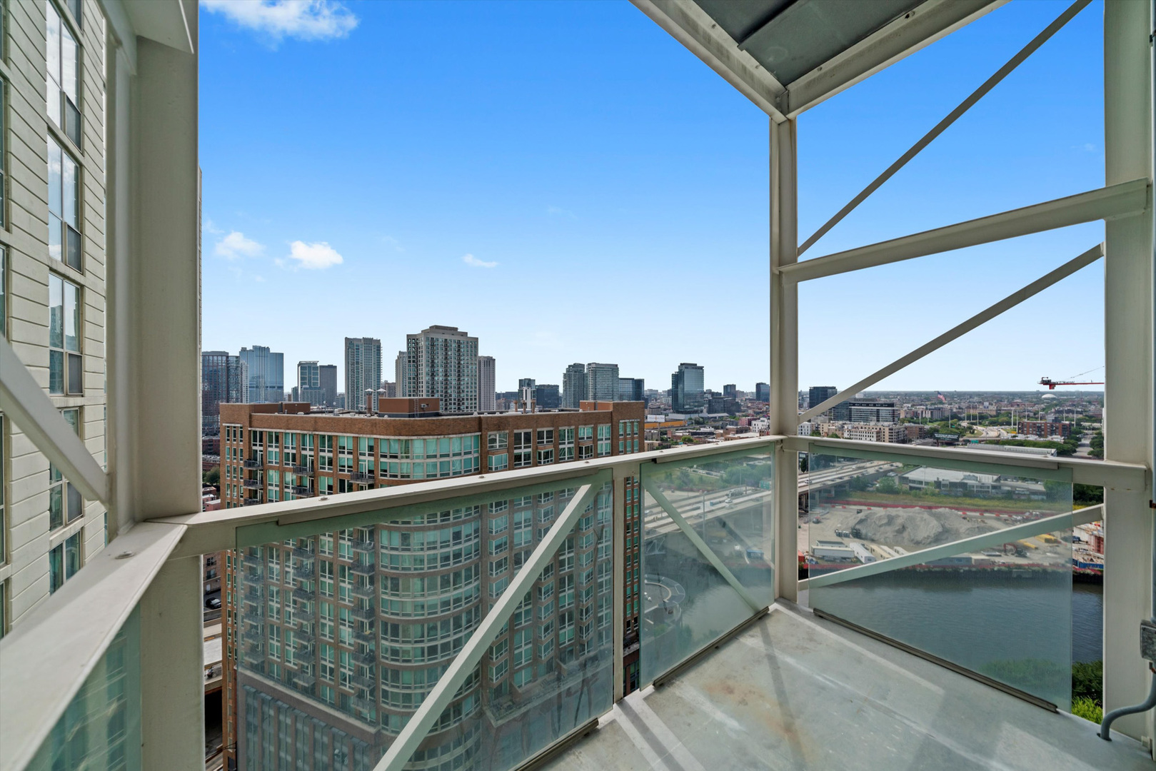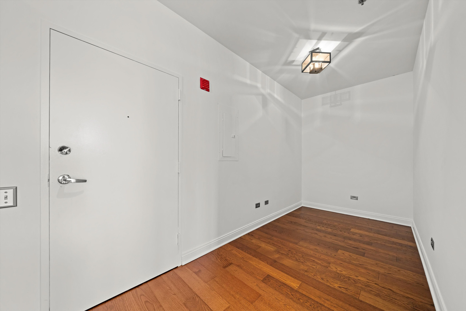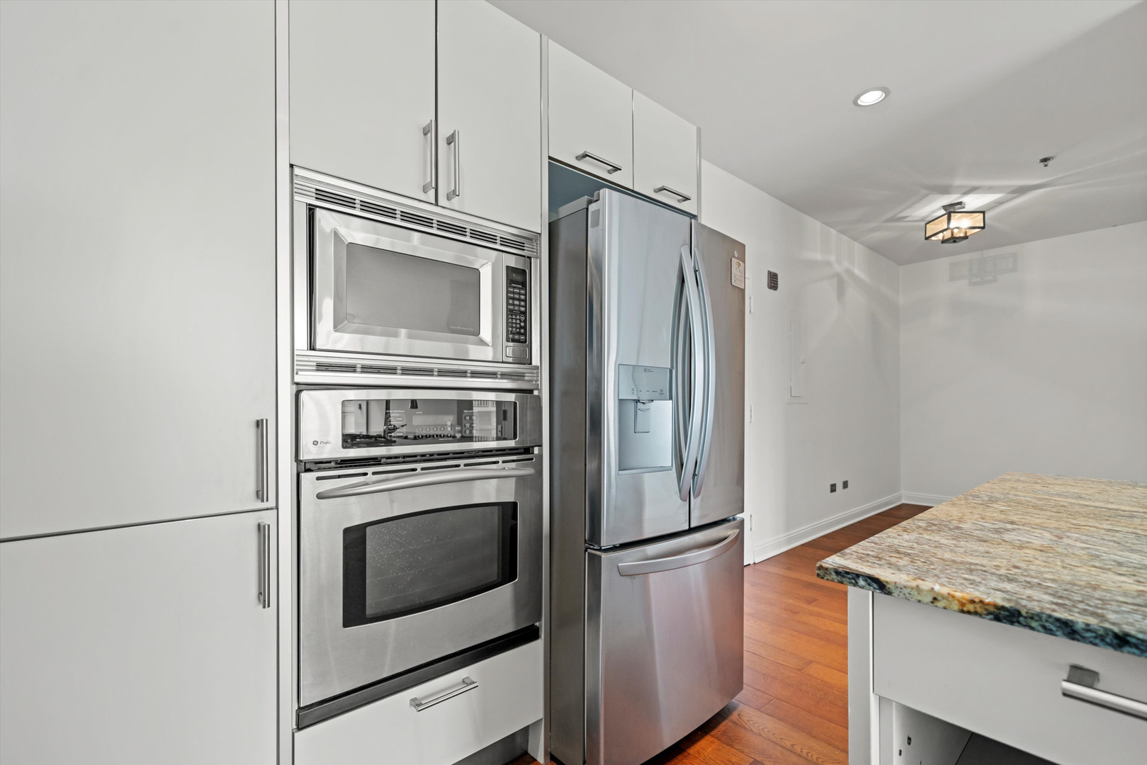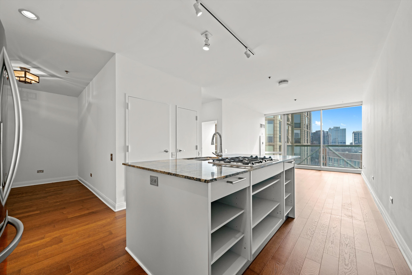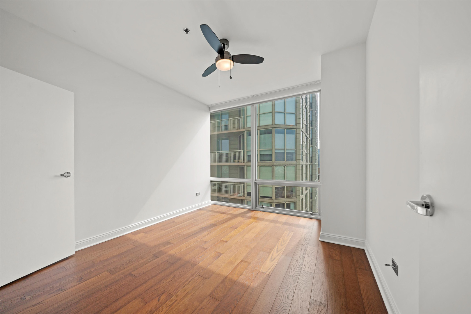 Stunning 1 Bedroom + Den in the Heart of River North! This rarely available “08” tier condo boasts floor-to-ceiling windows, hardwood floors, and a private balcony. The oversized kitchen features granite countertops, light gray/white cabinetry, stainless steel appliances, and a large island overlooking the open-concept living and dining area. The spacious den is ideal for a home office or flexible space to suit your needs. The bedroom comfortably fits a king-size bed and includes a walk-in closet. Upgrades include fresh paint, a fridge replaced in 2020, a dishwasher replaced in 2025, wood flooring updated in 2025, and a bathroom remodeled in 2019. Heated garage parking ($35K) and additional storage are included. Building amenities feature a 24/7 doorman, fitness center, and two nearby dog parks. Located just steps from the Loop, Starbucks, Erie Park, cafes, fine dining, CTA, and more! Take a 3D Tour – click the 3D button to explore every detail of this beautiful home.