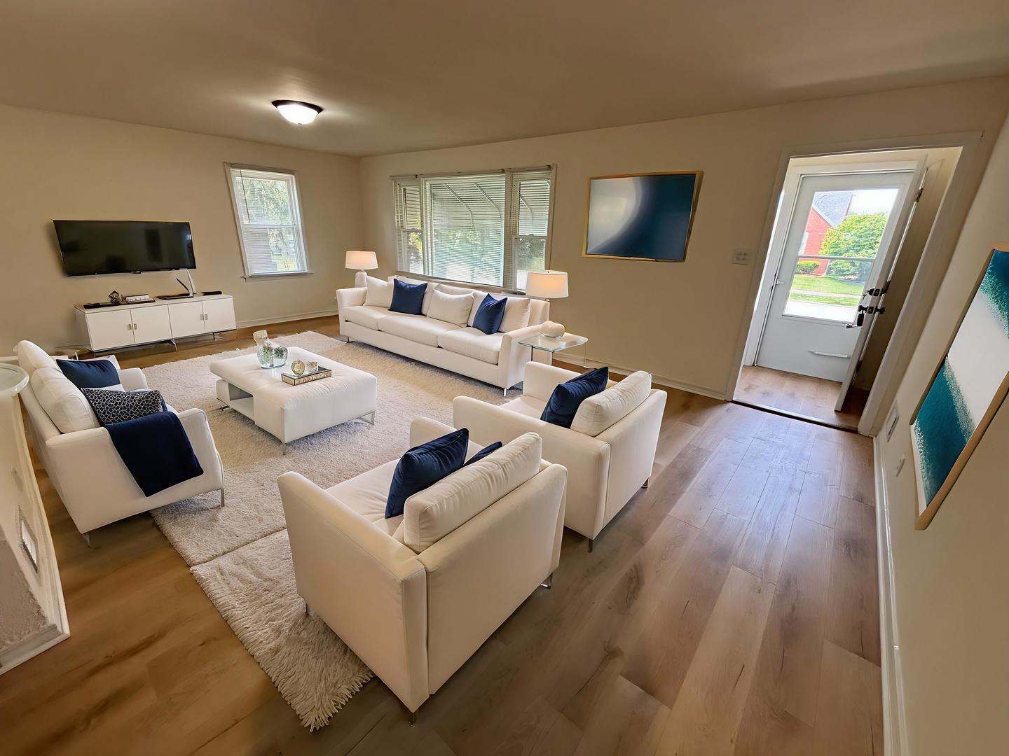 Welcome to this beautifully renovated 3-bedroom/ 2-bath all Brick ranch that perfectly blends modern updates with classic charm! Step inside to find brand-new flooring throughout, plush new carpeting in the bedrooms, and an open, airy layout designed for comfortable living. The brand new kitchen is a chef’s dream-featuring stylish cabinetry, sleek quartz countertops, subway backsplash and brand-new stainless steel appliances including refrigerator, oven, microwave and dishwasher! There are new interior and exterior doors and new trim. Both bathrooms have been completely updated, including a private half bath in the spacious primary suite. All 3 main level bedrooms offer robust closet space, providing generous storage for everyone. Windows newer. Downstairs, the massive unfinished basement offers endless potential-plus a finished flex room that’s perfect for a home office, playroom, or gym & laundry area. Enjoy outdoor living in the large yard-ideal for entertaining, gardening, or simply relaxing. 20×18 asphalt apron provides private parking in rear. This move-in ready home is a must-see. Don’t miss your chance to own this stunning rehab with modern upgrades and thoughtful details throughout! There are no tax exemptions reflected, so taxes will go down with a filed homestead exemption. This home is for sale / not for rent.