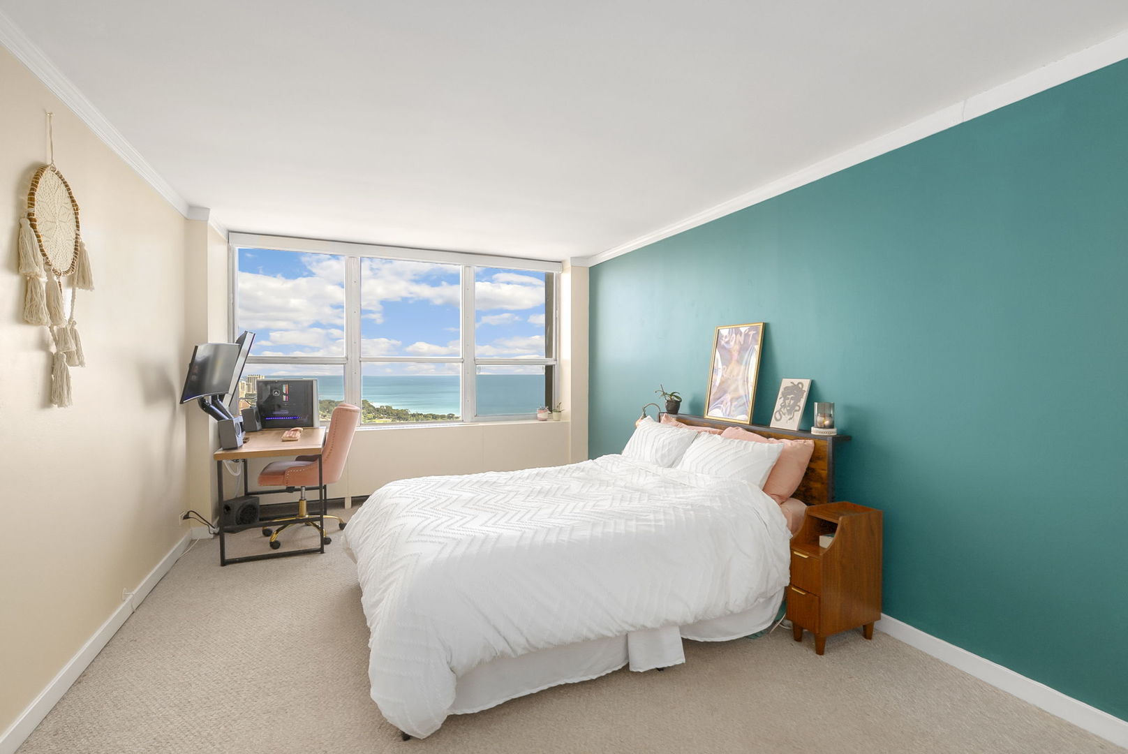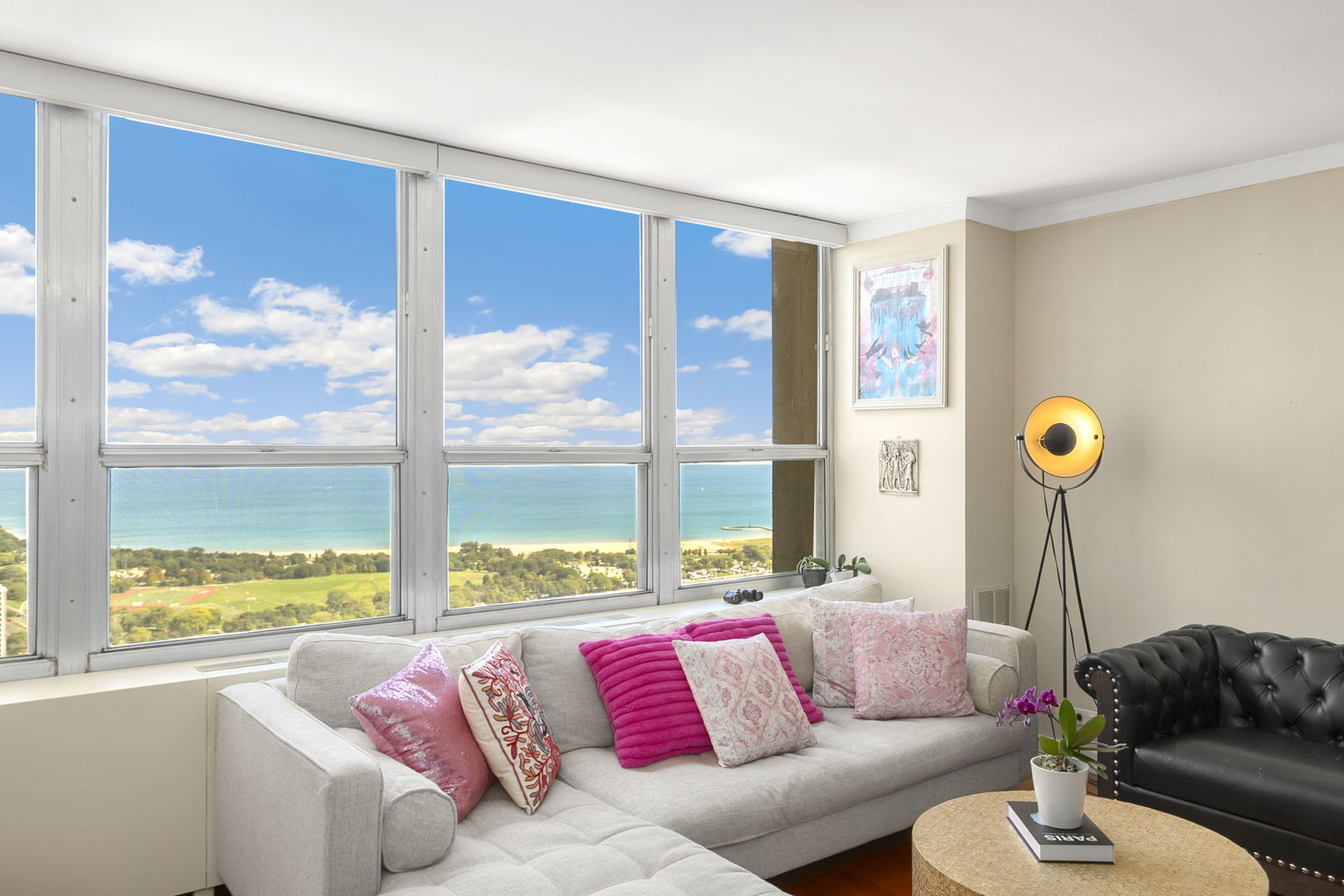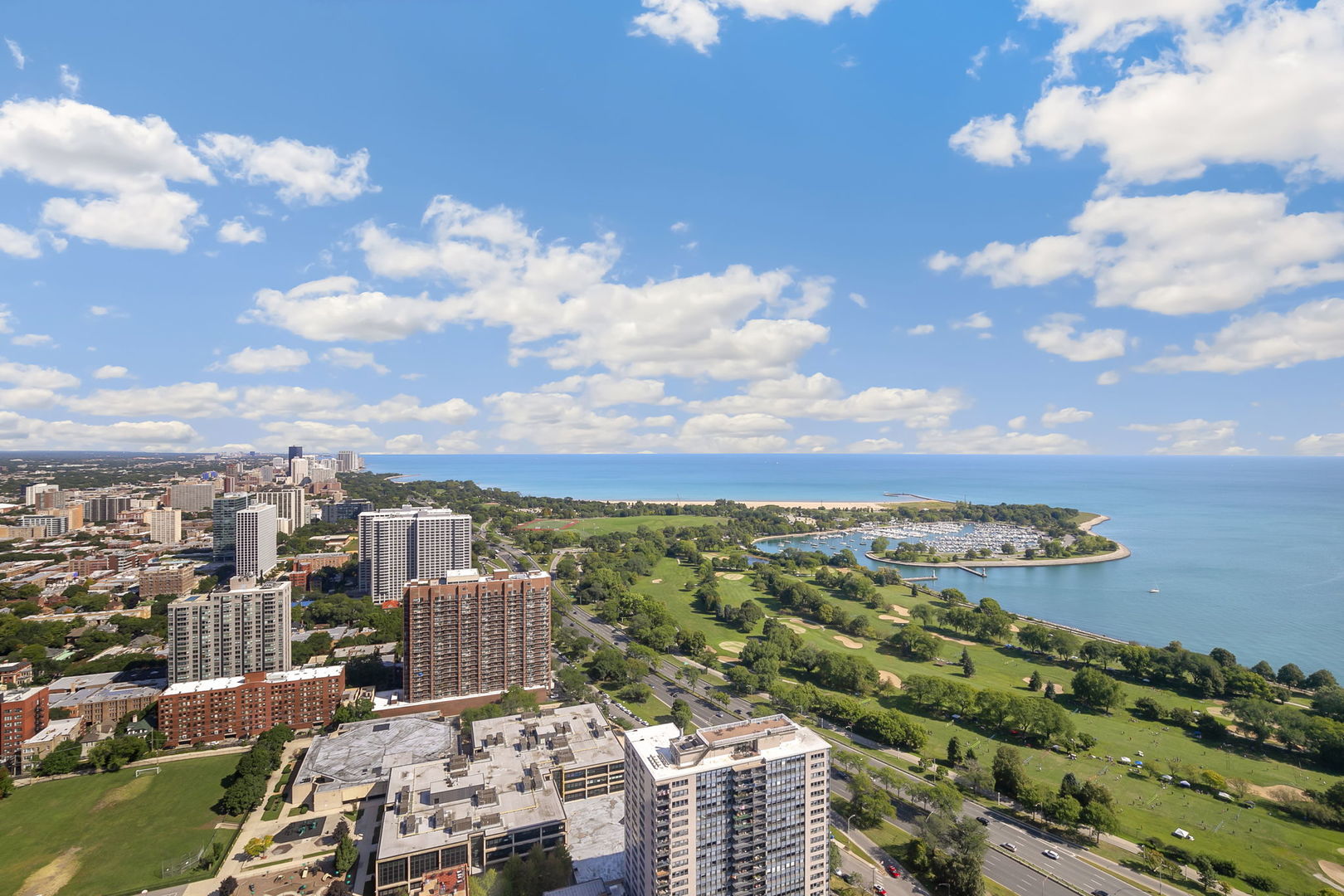 Discover your dream home in this exceptional oversized one-bedroom condo where every corner offers stunning views of the lake and an abundance of natural light. Meticulously maintained, featuring wood floors that flow through your main living area, stainless steel appliances in a kitchen with new Samsung Bespoke refrigerator that make cooking a delight! As a bonus, unit includes a large walk in closet off of entryway that could serve as a den, office area, or dressing room. The large open concept living room, dining room, and kitchen is perfect for entertaining and can comfortably fit a large dining table. The unit includes remote control blinds custom installed from 3 Day Blinds. This unit is also located on one of the Premium Tower Suite floors of the building and enjoys views of Montrose Harbor, the lake, park, and golf course. Conveniently located near Lake Shore Drive and the lakefront trail. Walking distance to Wrigleyville, Lakeview, L stations, and all of your favorite dining experiences. Enjoy the luxurious building amenities, including a sundeck complete with outdoor pool and grilling area – ideal for entertaining or simply relaxing and taking on the views. Stay fit in the fitness center or kick back in the on site theater room. Perfect for hosting with large sundeck area and newly renovated party room. Feel at ease with 24 hour door staff, swift maintenance team in building, and secure package room. Pet friendly building with on-site dog run. No rental cap makes this a perfect long term investment. Deeded indoor heated garage parking with assigned space is available for an additional $20,000!