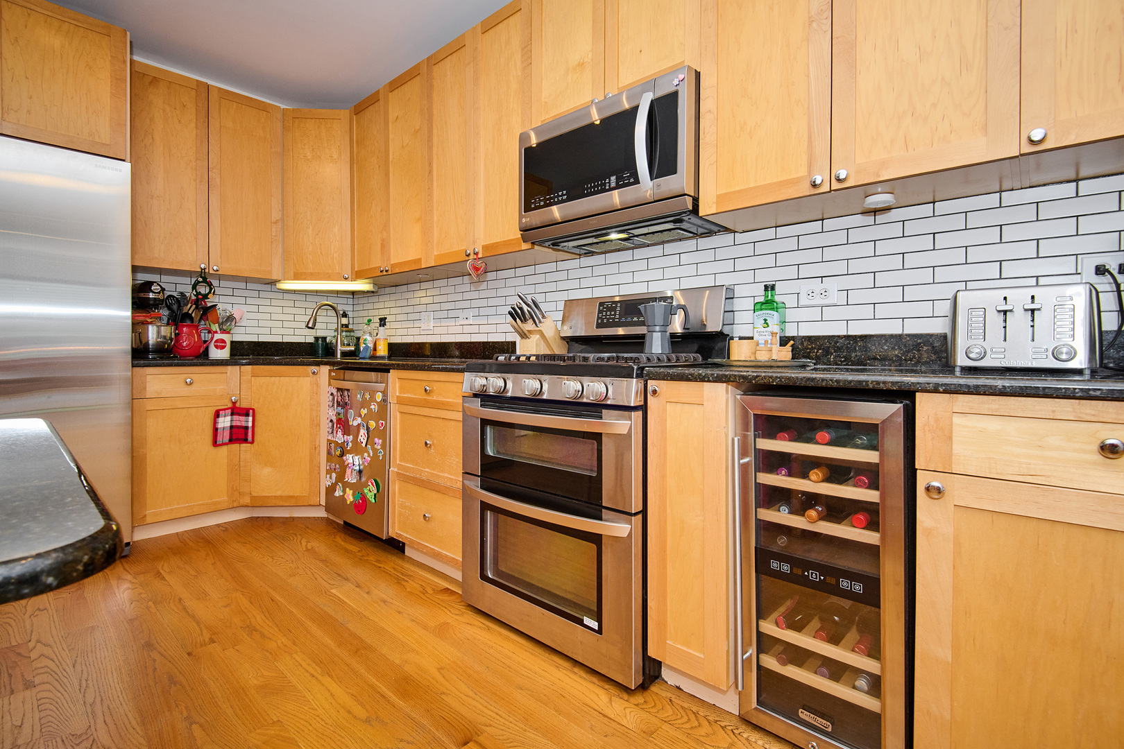 Spacious 3 bedroom, 2 bathroom condo with modern updates, washer/dryer in-unit and a private deck! Truly wonderful unit featuring an open layout, high ceilings, tall windows, newer doors and trims, all completed with hardwood floors throughout. Spacious living room and dining combo with a decorative fireplace adds charm and warmth. The kitchen is generously sized, offering granite countertops, a private peninsula, and stainless steel appliances including a double oven and wine cooler. Extra Large Pantry. The master bedroom includes a walk-in closet and a private bath with stand up shower for your comfort and privacy. Additional conveniences include in-unit laundry and spacious closets in each bedroom. Joliet Balcony facing the residential neighborhood offers even more charm. Extra Large storage space on the main floor and plenty of street parking, permit parking on tis particular street. This move-in ready condo is located in a super convenient area-close to major roads, bus lines, and shopping. Assessments include both hot and cold water. Don’t miss out on this perfect blend of comfort, style, and location!