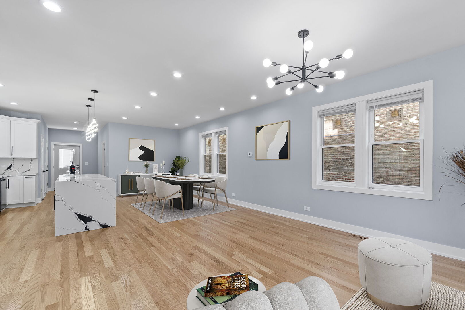 Beautiful New Construction in Austin! Welcome to this stunning 5-bedroom, 3.5-bathroom home that perfectly combines modern design, comfort, and functionality. This spacious residence new construction offers everything you’ve been looking for. The main level features an open-concept layout with a bright living room, dining area, and a chef-inspired kitchen complete with white cabinets, quartz countertops, and sleek black stainless-steel appliances. A guest half bath and office space complete this level – perfect for remote work or study. Upstairs, you’ll find three spacious bedrooms, including a luxurious master suite, a separate full bath, and a convenient laundry area with washer and dryer. The high-ceiling lower level adds even more living space, featuring two additional bedrooms and a large family room that feels just like the main floor – perfect for movie nights, kids’ playtime, or hosting extended family. Sitting on a 5,961 sq. ft. lot, this home offers a generous backyard – perfect for barbecues, family events, and summer fun – along with a brand-new 2-car garage. Located in a rapidly developing area of North Austin, this home is within one mile of Oak Park and the Green Line, and just 25 minutes from Downtown Chicago, providing easy access to shopping, dining, and transportation. Don’t miss the opportunity to own this beautiful new construction in one of Chicago’s fastest-growing neighborhoods