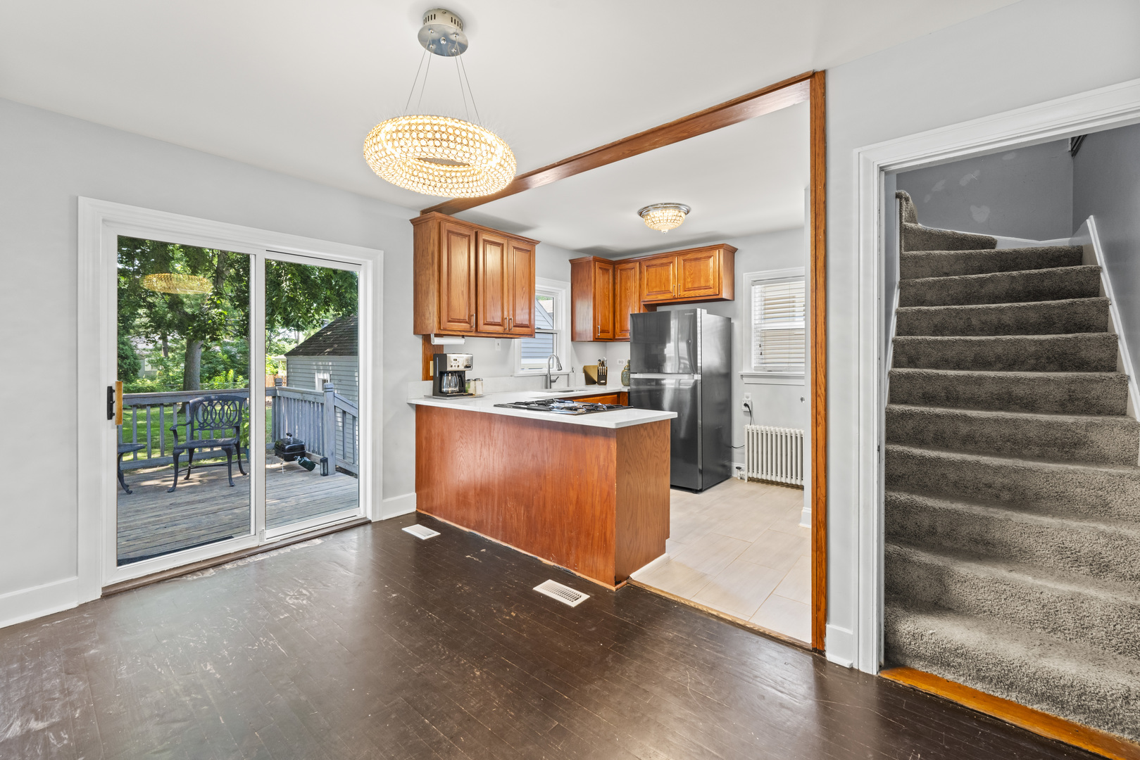 Welcome home to this charming 3-bedroom, 1-bath bungalow in the heart of Crete! Featuring two bedrooms on the main level and a spacious loft-style third bedroom upstairs, this home offers flexible living space perfect for families, guests, or a home office. The full unfinished basement includes a working toilet and is ready for your finishing touches-ideal for adding a second bathroom. Enjoy peace of mind with newer windows, furnace, and AC already in place. The property sits on a quiet street with a detached garage and a generous yard. All kitchen appliances stay! Walking distance to parks and minutes from downtown Crete.