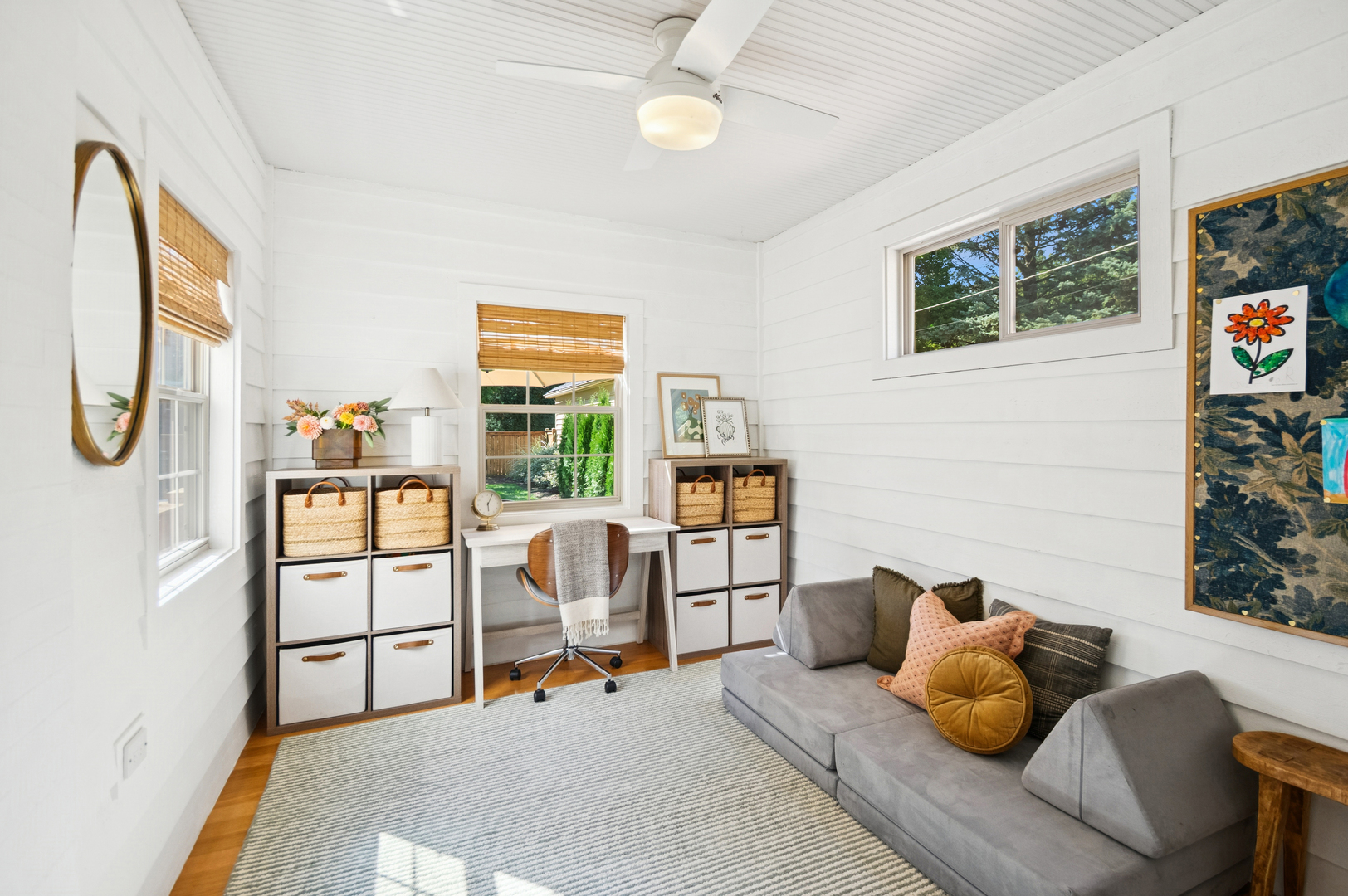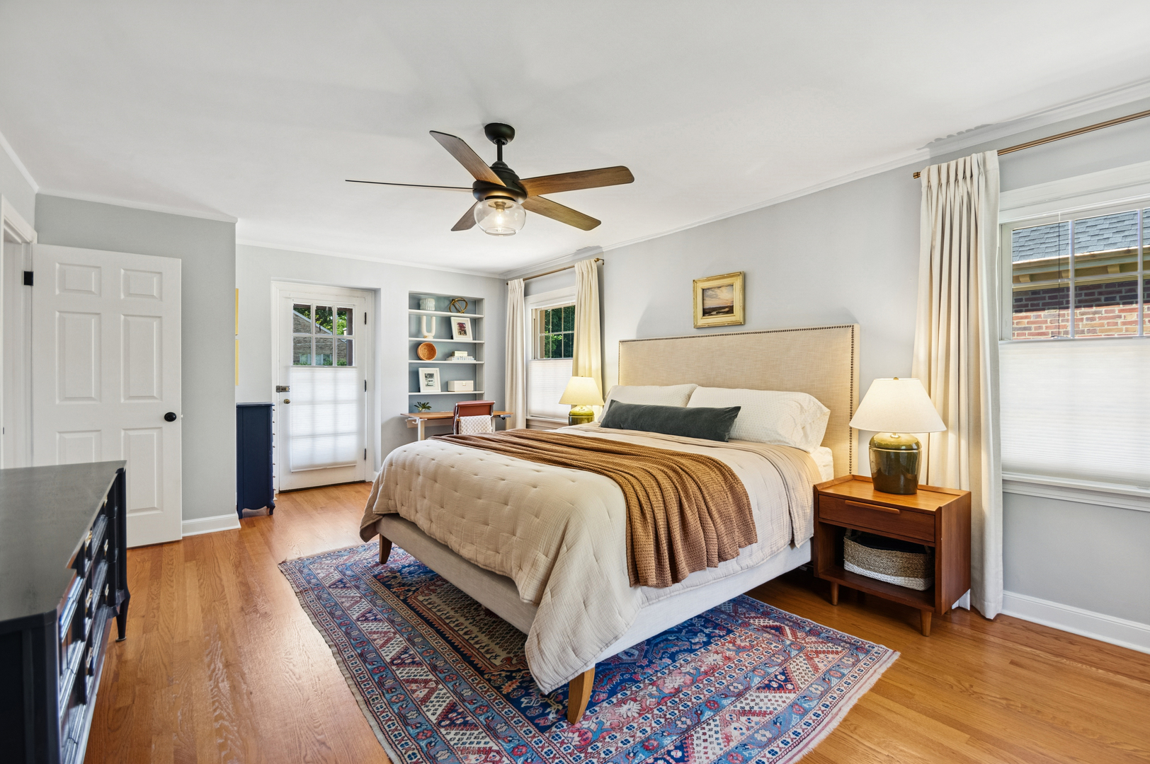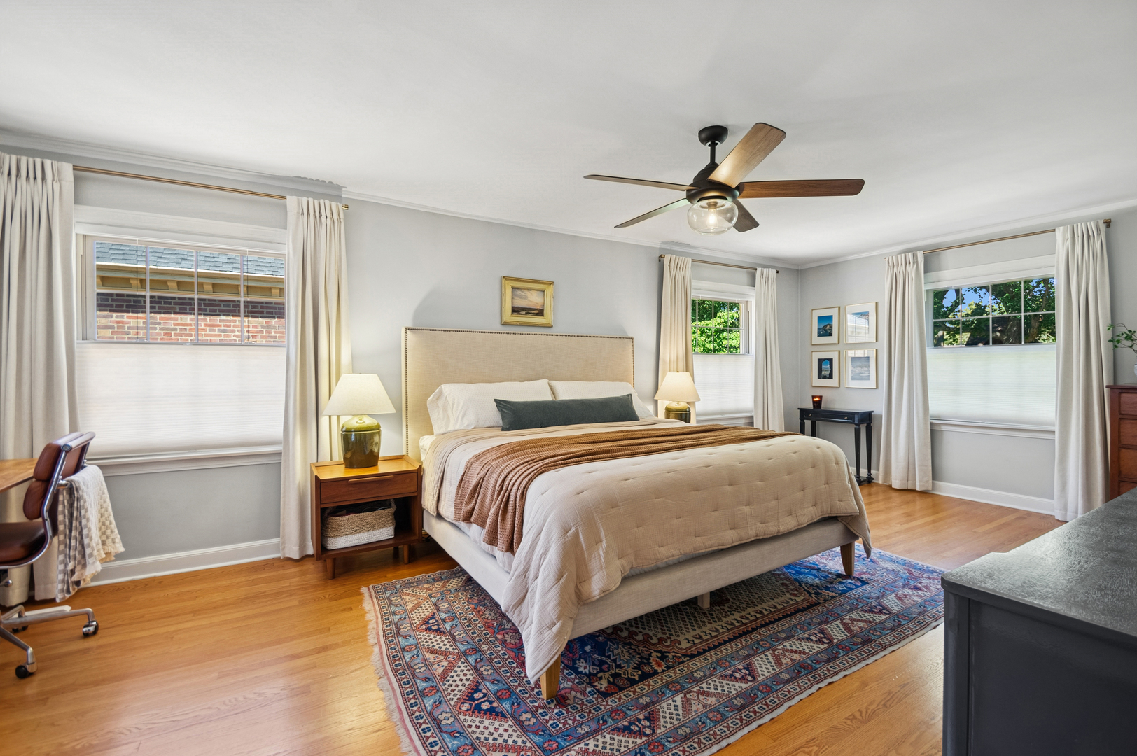 This Stately 1940s Brick Colonial tastefully combines vintage charm with a fresh and sophisticated interior for a contemporary lifestyle. The entire first floor has warm hardwood floors, oversized windows with elegant crown molding and arched doorways. The inviting LR is centered by a WB fireplace. A unique glass barn style door separates a light filled space perfect for an office. There is a large and sophisticated open concept kitchen and dining area. The kitchen has been tastefully updated and includes a unique and cozy corner seating area with views of the lovely backyard. There is also a convenient half bath on the first floor. A classic staircase takes you upstairs to the primary bedroom and 2 good sized bedrooms all light-filled from oversized windows. The beautifully updated bathroom has double sinks and a relaxing soaking tub. The finished basement has a welcoming and comfy family room, complete with a second WB fireplace and a second full bath with a walk-in shower. The oversized lot has large grassy area and brick paver patio with italian lights for outdoor entertaining plus a new 2-car garage. Recent updates: 2025 New 2-car garage, new basement ejector pump, 2024 Fireplace flue and firebox repaired & relined, 2022 New energy efficient furnace and humidifier installed, 2021 perimeter cedar fence installed, 2018 full kitchen remodel and expansion, touch screen, whole house security system installed, 2014 updated main floor half-bath. Fabulous location on a tree-lined street, just walking distance to everything Edgebrook, including the Edgebrook School, Metra, shops, and restaurants with easy access to 90/94, downtown and O’Hare. Stunning home in the heart of Edgebrook.