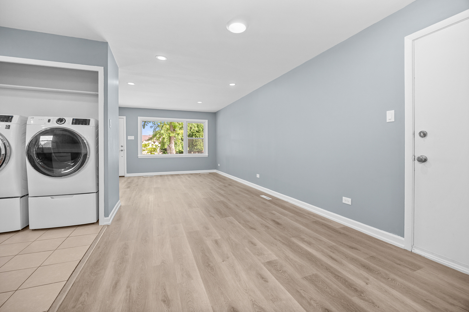 This house is ready for you to move in and features 4 bedrooms and 1.5 bathrooms. You’ll love the large addition, which includes a bedroom, a spacious family room, and a bonus den or office space. The kitchen is a standout with its granite countertops, white subway tile backsplash, and stylish wood cabinets. Brand-new washer and dryer with pedestal boxes are also included for your convenience. The home has new laminate wood floors throughout, can lights, and fresh paint. Both bathrooms have been updated with new vanities, lighting, and mirrors. Plus, you’ll have peace of mind with the newer furnace, AC unit, and water heater.(2020), insulated crawl space with 5 inches concrete (2016),New roofing insulation (2025) and Leaf Guard gutters (2021) Outside, enjoy the gorgeous front and back landscaping with Pear trees as well as plenty of white Hydrangeas and a large fenced-in yard perfect for outdoor fun. This home is just minutes from the Elgin O’Hare Expressway (390), Metra, and shopping centers. It’s located in the desirable Bartlett High School area. Ready to see your new home?