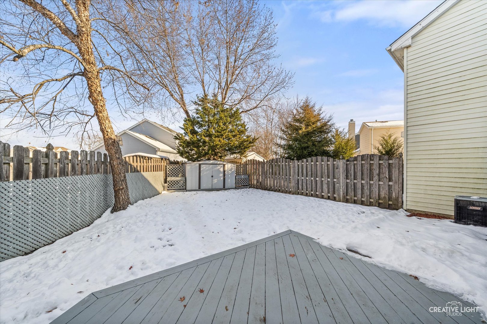 Yes, it’s cold, but this property will not last long. DON”T BLINK or you’ll miss a rare opportunity to own one of the Kingsport villas in a highly sought after neighborhood with NO HOA!!! Conveniently located just a 5 minute drive to endless shopping centers including Target, Home Goods, Menards, Home Depot, PetSmart, Caputo’s, Jewel and SO MUCH MORE! Walking distance to popular bars, Mexican cuisine and even a grocery store! This 2-bedroom home features walk-in closets in both rooms, providing maximum storage. 1.5 bathrooms, just under 1200 square feet, a fully fenced in yard and a beautiful deck to enjoy morning coffee or a cozy late night gathering! The yard is equipped with a storage shed!! The flat landscape is ready for a pool or hot tub. No Hoa means no rules, make a firepit if you want! Possibilities are truly endless! The garage has built-in shelves for all the garage organization you could ask for! Updated stainless steel appliances in the kitchen along with additional built-in shelving in the living room makes this home one of a kind. Brand new washer & dryer also conveyed with sale. Couches can stay too if buyer is interested.