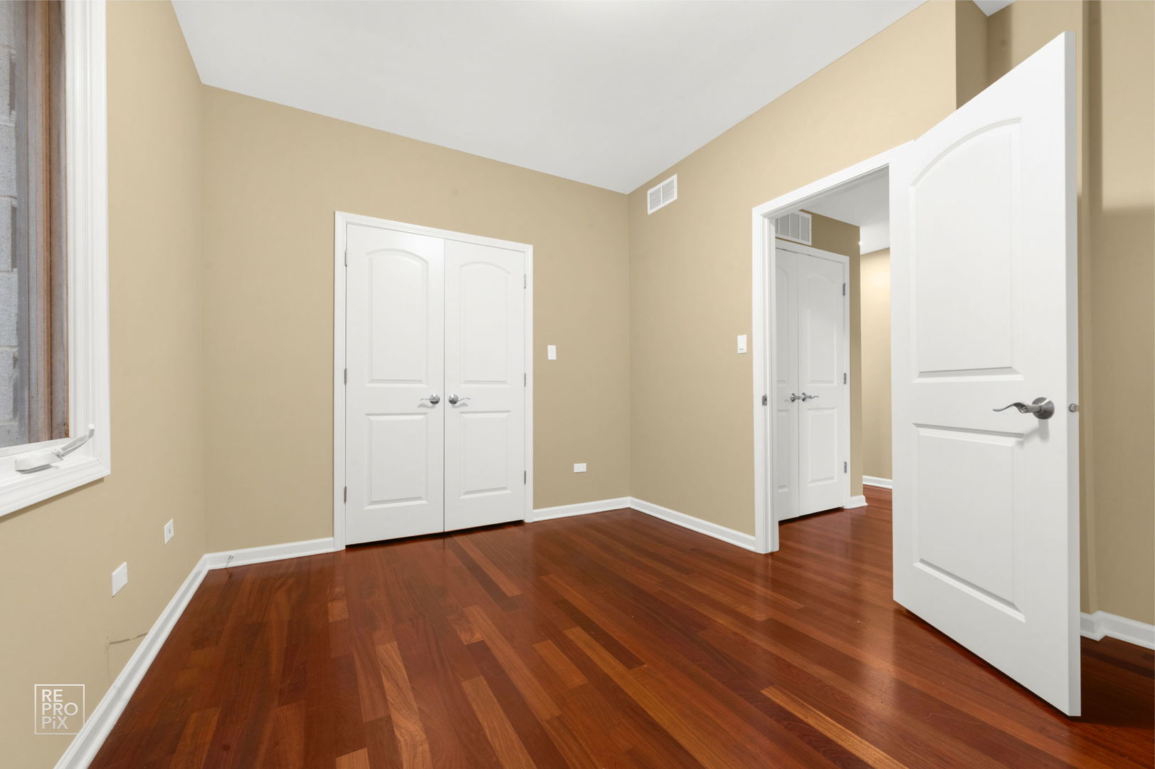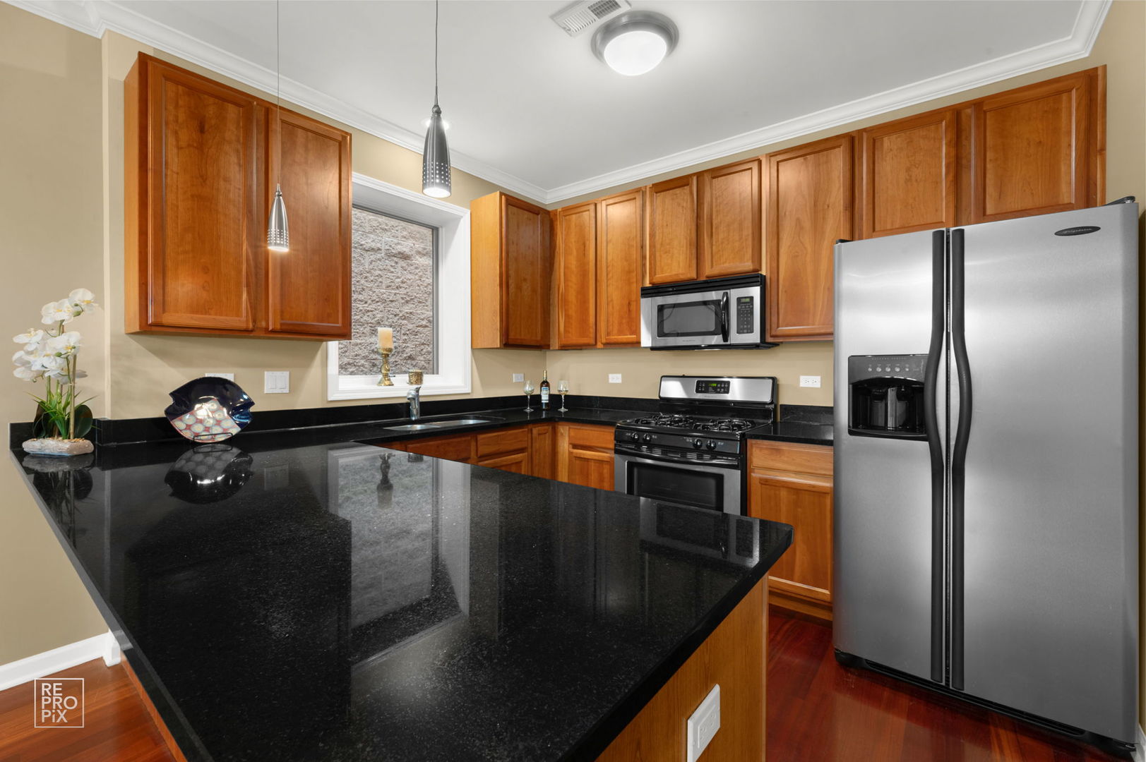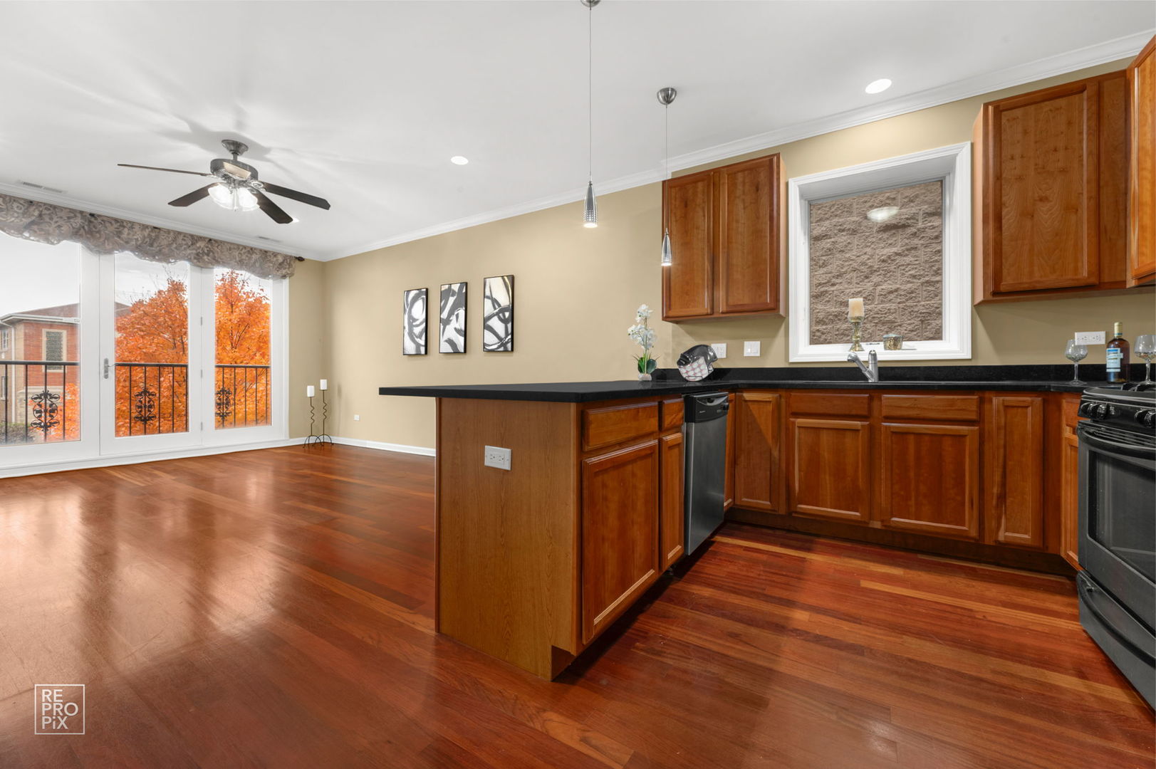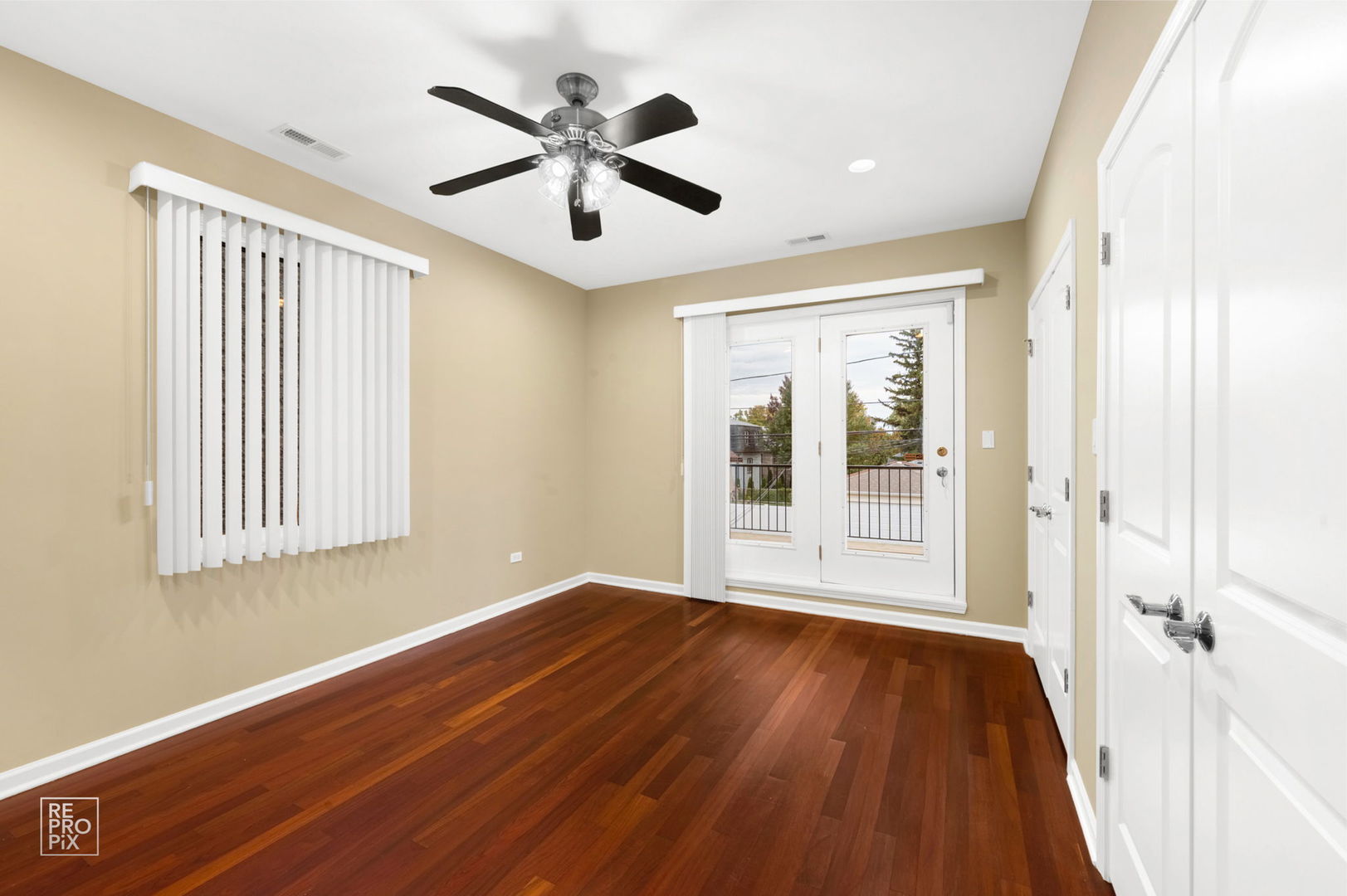 Beautifully maintained 2 bed / 2 bath condo in Chicago’s Montclare neighborhood. Solid brick building with a bright open layout featuring hardwood floors throughout, a spacious living area with Juliet balcony, and a modern kitchen with 42″ cabinets, granite countertops, stainless steel appliances, and peninsula seating. The primary suite offers double closets, a private bath, and access to a covered rear deck. Additional features include in-unit laundry, central heat & air, and an assigned parking space. Conveniently located near Brickyard Mall, Harlem Irving Plaza (HIP), Dunning Square, and everyday shopping and dining along Belmont Avenue. Easy access to public transit, Metra, and major expressways.