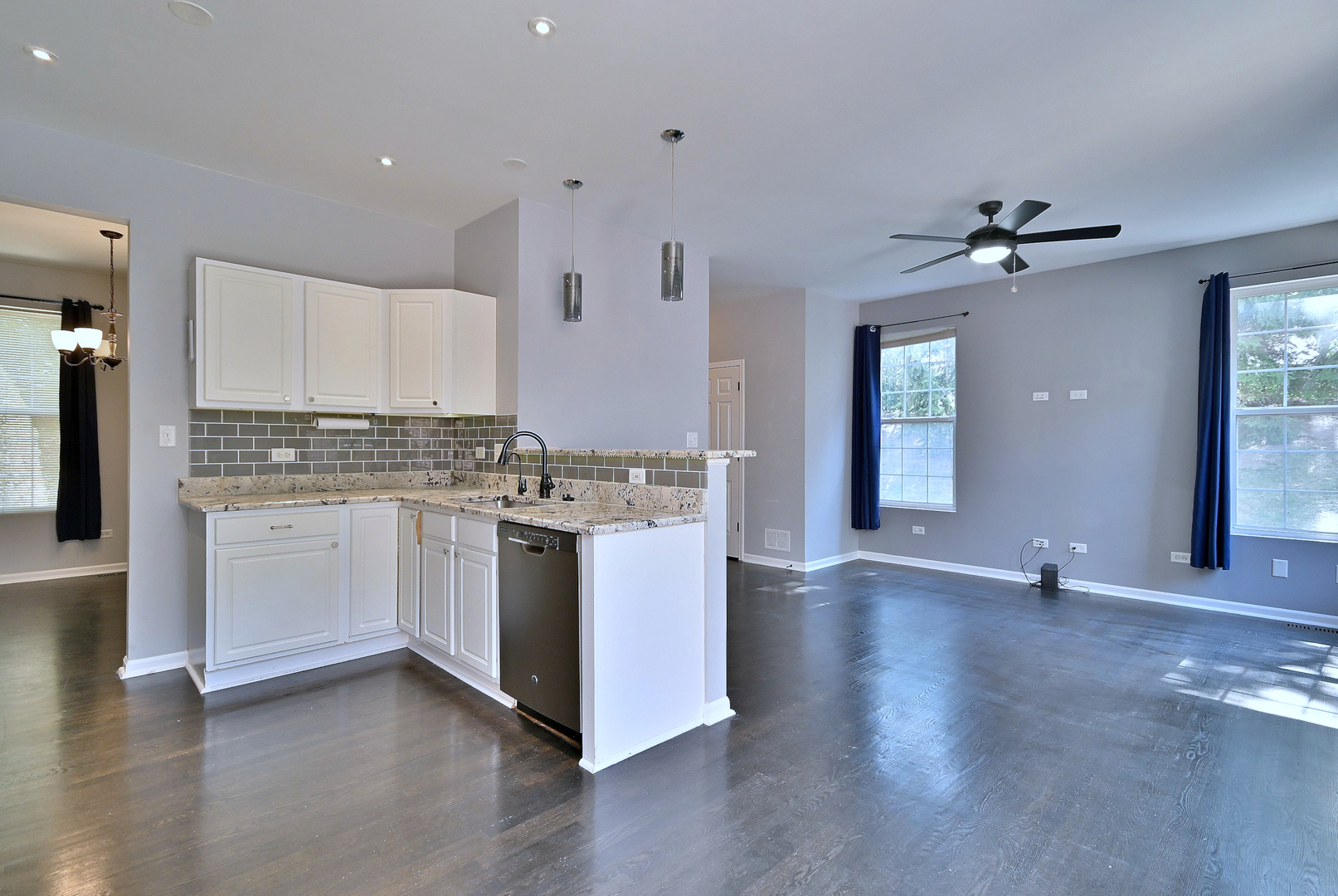 It’s an end unit! Privately located at the far end of the building, with good parking, your own 2+ car garage with opener, and a nice privacy fenced yard (that the HOA maintains!) with deck, patio and hot tub! What a great outdoor space and hard to find in townhouse living! 2 story townhouse style. All rooms have installed newer stained hardwood floors. Spacious living room is open to the kitchen with space for dinette table and pantry closet, stylish white cabinets, new granite countertop , patio door leading to yard/patio/deck/spa and garage. Formal dining could also be a den. Handy powder room on 1st floor, open staircase up to loft/office, generous master bedroom with walk in closet and access to large shared full bath w/dual sinks in dressing area, plus tub and separate shower. 2nd bedroom also has access to bath. Convenient 2nd floor laundry room. brand new furnice,New roof and gutters.Full finished basement .Easy and pleasure to show!!!