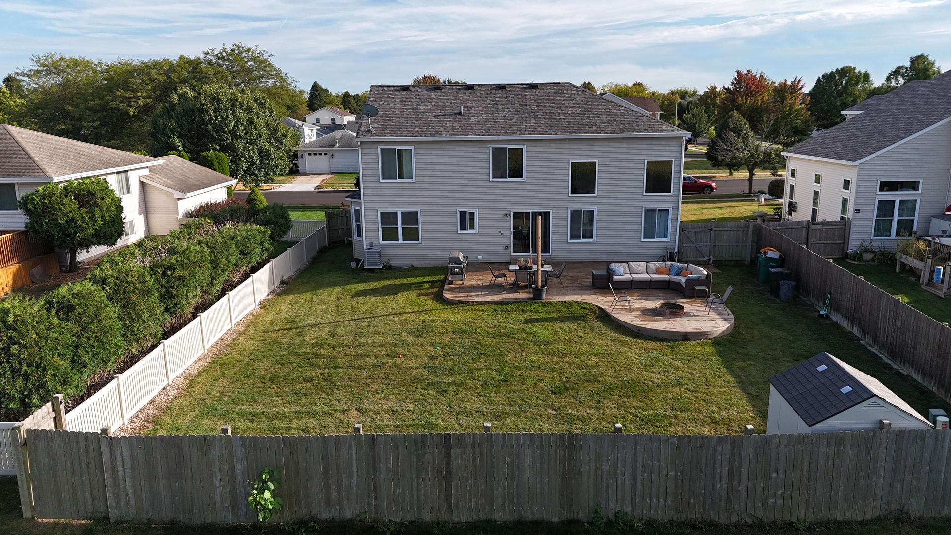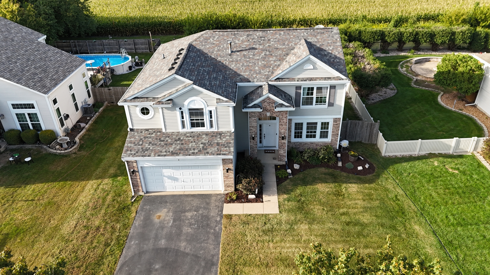 Beautifully updated and spacious home in Plainfield! Step into the impressive two-story foyer and enjoy the open layout throughout. The kitchen features granite countertops, a double oven, and a refrigerator (2023) with a dishwasher (2021). The kitchen opens to the dramatic two-story family room, creating the perfect space for gatherings. The oversized living and dining rooms provide plenty of room for entertaining. BRAND new carpet upstairs and FRESH paint throughout. This home has everything you need. The primary suite is a true retreat with a luxury bath with a large walk in shower with double shower heads and a huge walk-in closet. Recent updates include new windows (2021), roof (2017), water heater (2021), and water softener. Enjoy the large cedar fenced backyard with a 20×30 patio with a built in fire pit that opens to a peaceful field-ideal for relaxation or outdoor activities. Conveniently located near I-55, I-80, schools, shopping, and dining. Move-in ready with major updates already done! MULTIPLE OFFERS. Please submit by Saturday at 8pm.