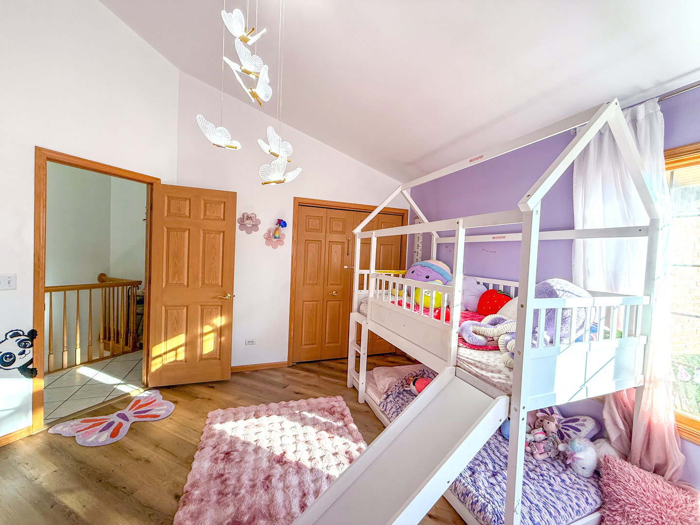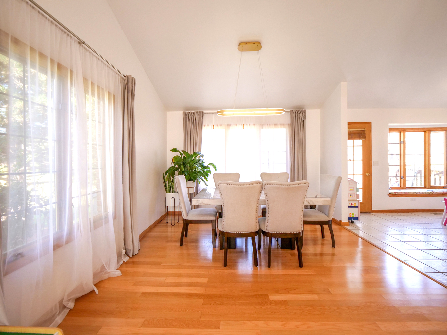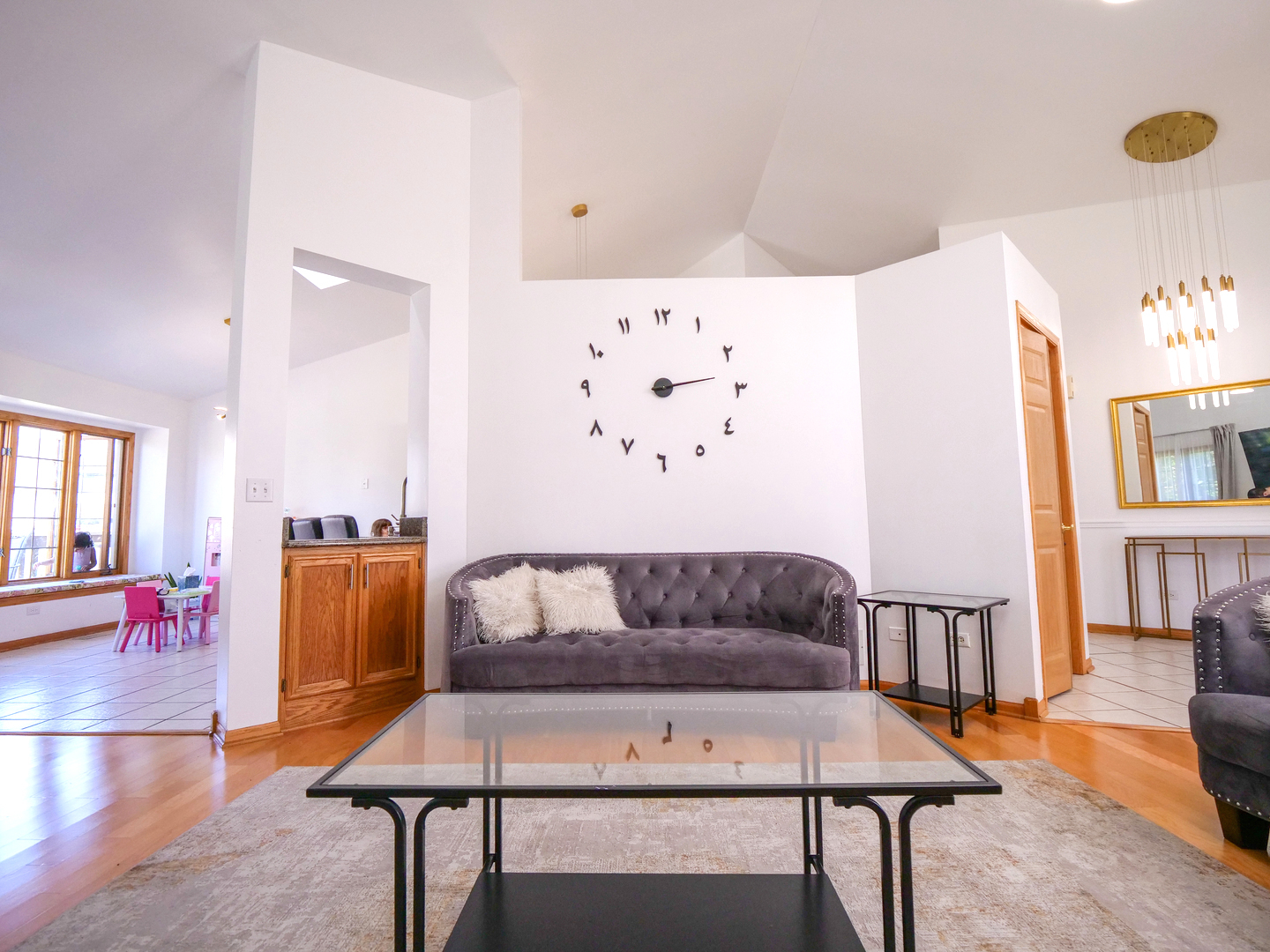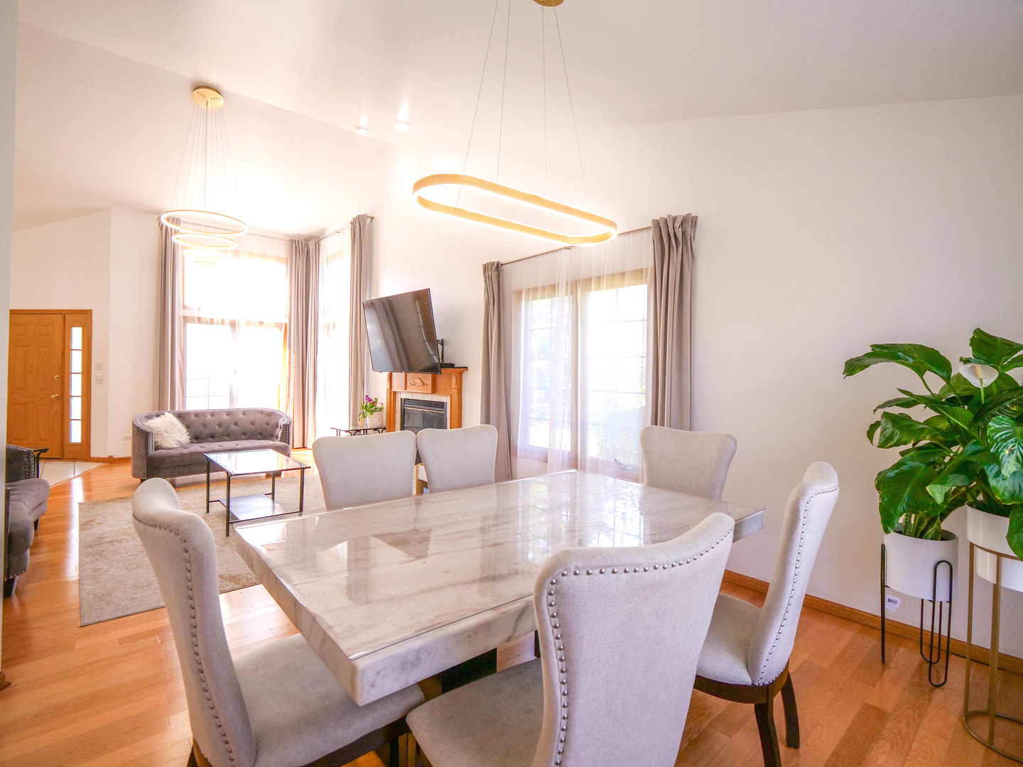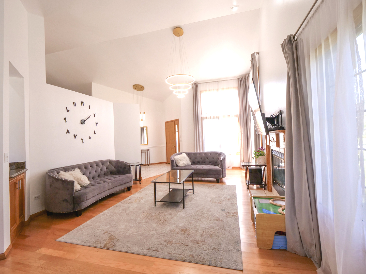 Modern aesthetics combined with timeless Cozy charm! This beautiful 3 bedroom total, 2 Bathroom end-unit Townhome in Tinley Park offers beautiful quiet living in an easy to access location less than 5 minutes from I-80, Illinois Rt. 43, and the 80th avenue Tinley park train station. This home offers a fantastic opportunity for travel convenience and amenities, while also being tucked from the busy bustle. Step inside the 3200+ livable sq ft. to an impressive open-concept main level highlighted by 20ft vaulted ceilings that enhance natural light and create a grand sense of space throughout. On the main floor there is a gas fireplace, and beautiful Low-emissivity energy efficient windows accented with luscious blinds and drapes that stay with the home. As you walk through the home, you will find wood and tile flooring, along contemporary styling. The expansive master bedroom features a walk in closet! Updates include 2 year old appliances that stay, and recent modern light fixtures! A newly constructed deck with extendable awning extends the living area outdoors, offering a perfect spot for morning coffee or evening gatherings; and being an end unit town-home surrounded by trees and arborvitae, offers more privacy than other units. The full finished basement nearly doubles the living area, offering one additional bedroom, an office space, expanded recreational space, and endless versatility for a media room, or guest suite. Practical comforts include a newer furnace and air conditioning system installed around 2020, and The attached 2.5-car garage adds valuable storage and functionality This home combines a luxury modern aesthetic with thoughtful amenities and abundant living space in a great location. Schedule a private tour and discover why this exceptional end-unit residence truly stands apart from the others! So Beautiful! For HOA info, please ask your agent to look at private remarks