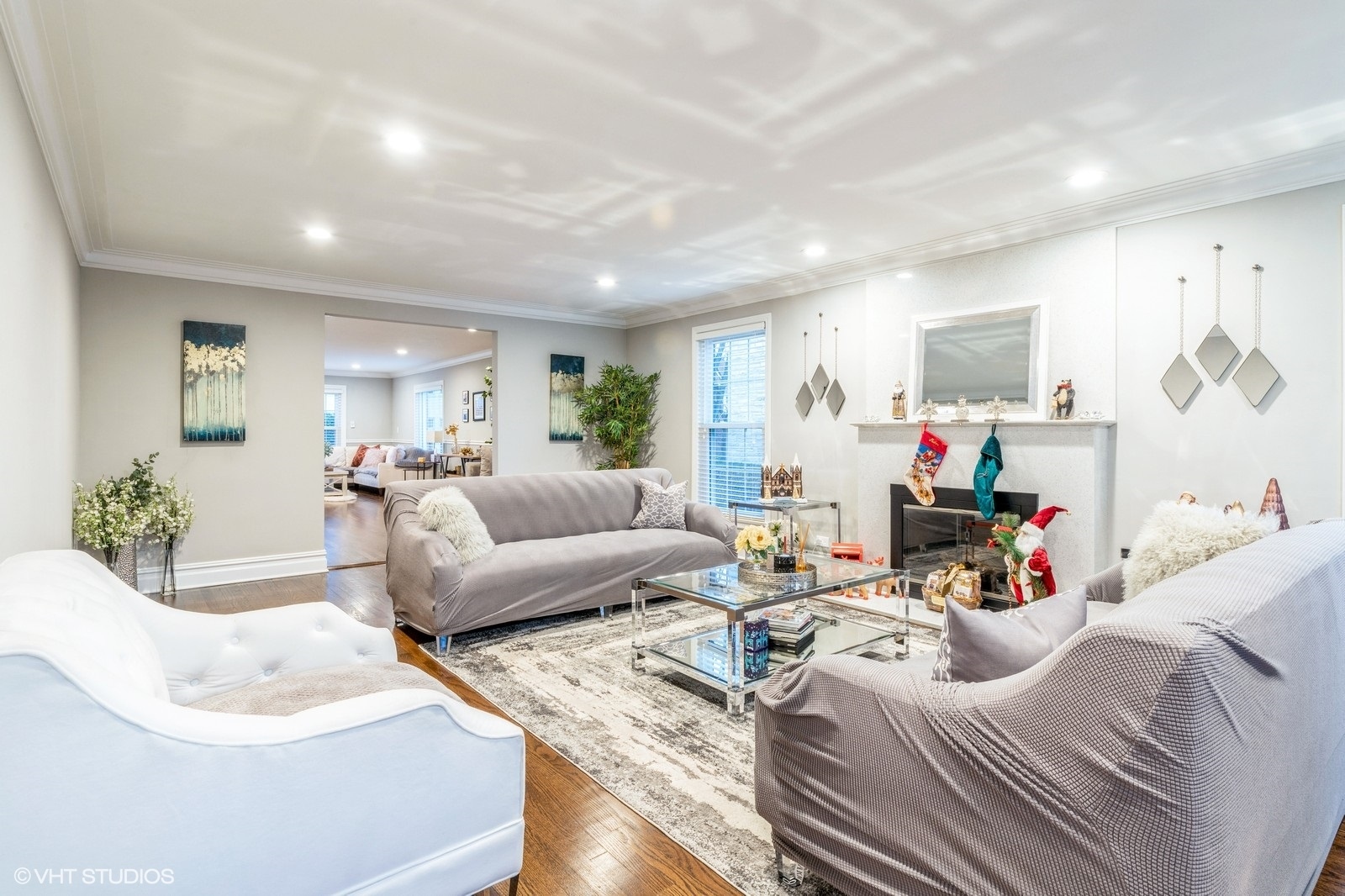 Stately 2 story home in the Towers with expansive room sizes throughout. Main level & 2nd floor feature gleaming hardwood floors & basement Recreational room boasts heated porcelain flooring. 3 of the 4 spacious bedrooms on 2nd level have private baths & the 4th full bath is located in 2nd floor hallway. There is also a hookup in 2nd floor Hall closet for stackable laundry unit. Main floor features include : Huge family room, formal dining room, fireplace in living room & eat in kitchen. Basement includes huge Rec. room with 2nd fireplace, exercise room, & plenty of storage space. Sprinkler system for front & back yard. 2 car attached garage & Brick paver driveway with room to park 4 cars. Significant improvements : New windows 2019, electrical panel & sump pump 2018, Porcelain tile & heated flooring in basement 2020, washer/dryer 2024, Refrigerator & dishwasher 2025. Close proximity to Expressway, shopping on Touhy Ave., Proesel Park & Lincolnwood schools. This is truly a must see !!!!