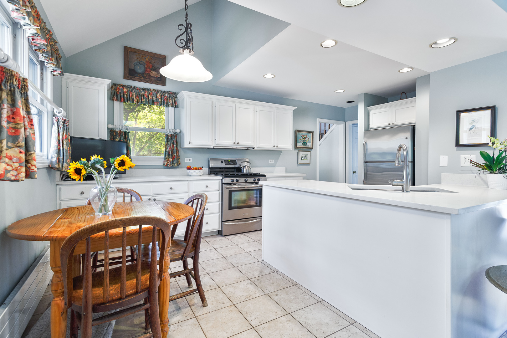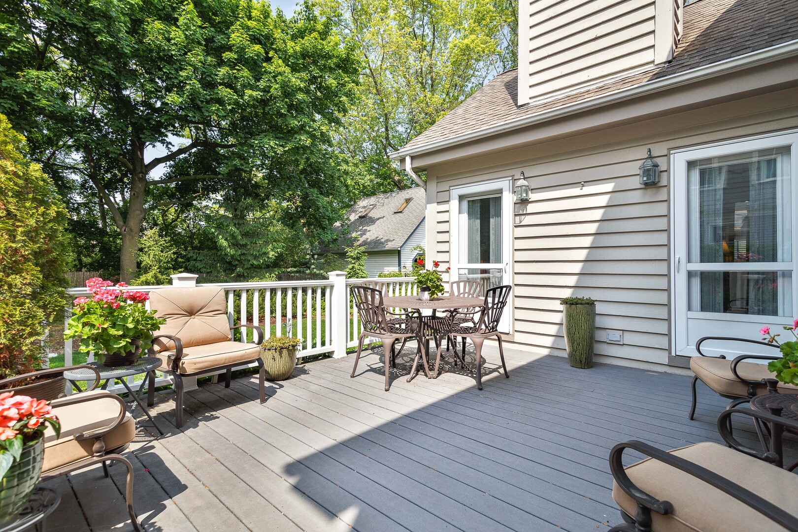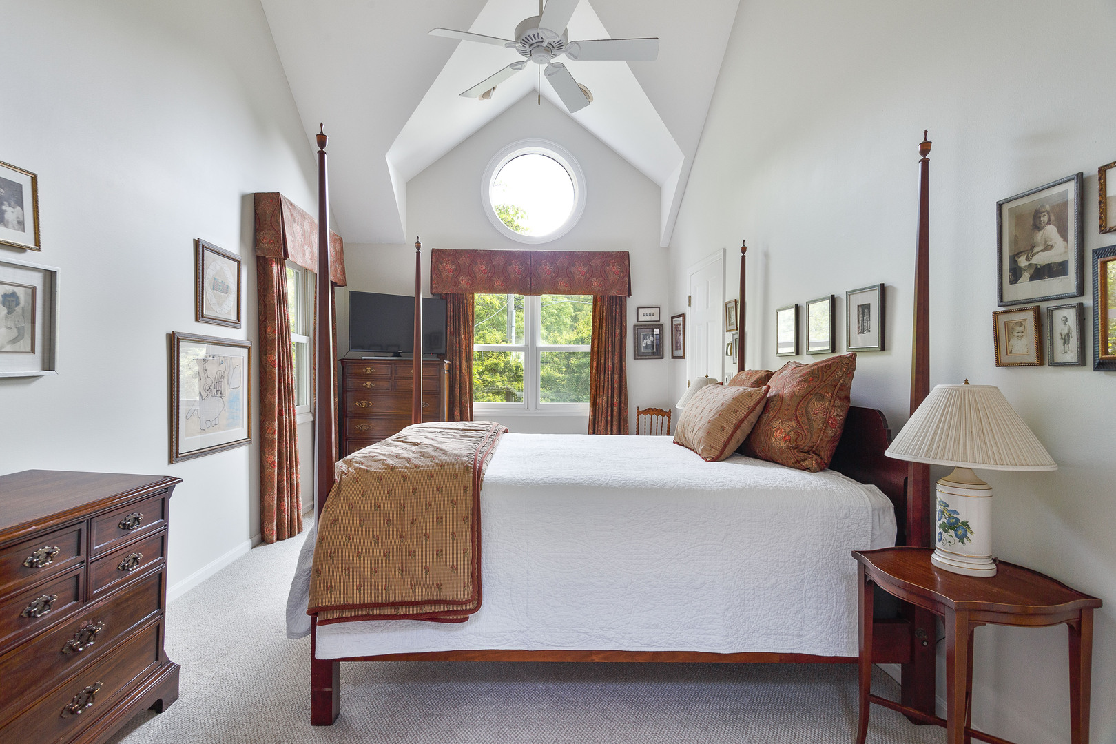 Final and best offer by 11am Saturday, June 21st. No escalation clause. Amazing in-town location for this handsome 4 bedroom, three bath home! Beautiful living room with fireplace…hardwood floors, plantation shutters and wall of windows. Separate formal dining room for family dinner or holiday celebrations. Open kitchen with quartz countertops, stainless steel appliances and plenty of room for a casual dining table. The kitchen opens to a sun-filled family room with fireplace with gorgeous wood mantle. Off this special spot is the sunny west facing deck overlooking the private, wooded fenced backyard. Completing the first floor is fourth bedroom, currently used as an in-home office, facing the backyard. And a full bath. Vaulted ceilings on second floor! Primary suite has high ceiling with circular window and newer bath. Hall bath, also redone, and two nice sized family bedrooms. Basement is partially finished and provides great space for gathering and watching your favorite movie or game. Laundry Room. Two car garage with great storage loft. Don’t miss this one….a special opportunity in a very convenient location.