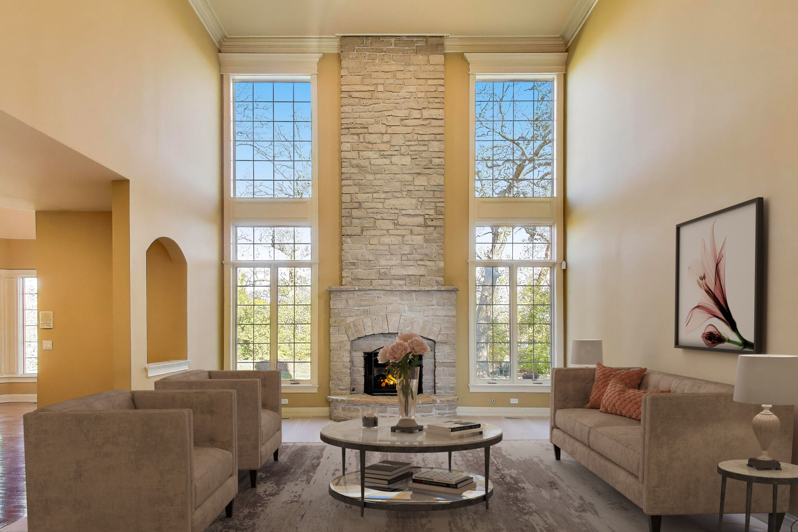 Custom Sebern-Built 5 Bedroom, 4.5 Bath Executive Home in Thornwood! Stunning 5BR, 4.5BA home with 3-car side-load garage on a premium cul-de-sac lot in the sought-after Thornwood Pool & Clubhouse Community. Over 4,600 sq ft of luxury living with hardwood floors, custom millwork, neutral decor, and a NEWLY finished basement (2024). Gourmet kitchen with granite countertops, custom cabinetry, stainless steel appliances (NEW dishwasher & refrigerator 2025), double oven, oversized island, and walk-in pantry. Kitchen opens to two-story family room with NEW carpet (2024) and a floor-to-ceiling stone fireplace. Main floor office, laundry with exterior access, and elegant formal dining room. Spacious primary suite with tray ceiling, huge walk-in closet, and luxury bath featuring dual vanities, whirlpool tub, and oversized dual-head shower. Three additional bedrooms include a Jack & Jill bath and private ensuite. Finished deep-pour basement (2024) offers 5th bedroom, full bath, rec room with stone fireplace, and storage. Enjoy a private wooded backyard with brick patio-perfect for entertaining! Updates: 2 NEW water heaters (2025) and NEW furnace (2023). Community amenities: clubhouse, zero-depth pool with water slide, pickleball/basketball/volleyball courts, playgrounds, and walking/bike paths. Located in top-rated St. Charles D303 Schools, with the onsite elementary just down the street. Close to shopping, dining, entertainment, and major commuter routes.