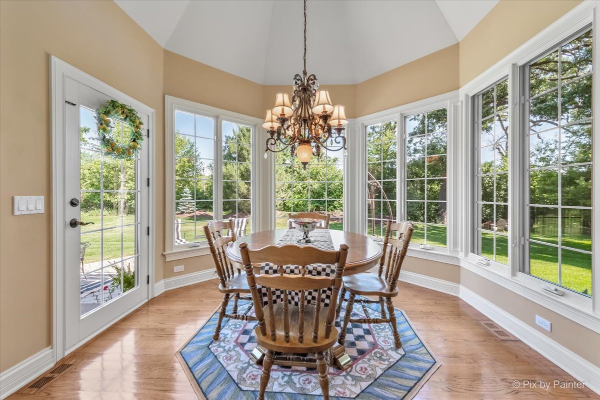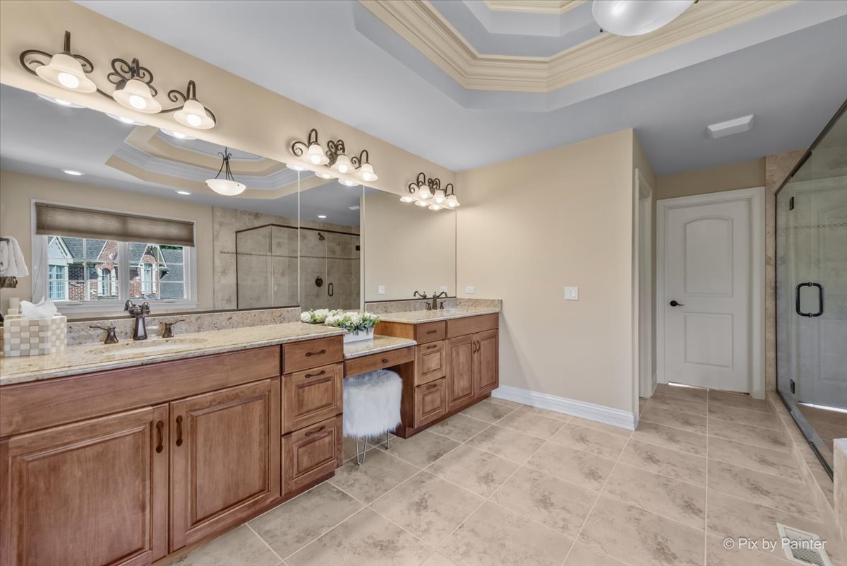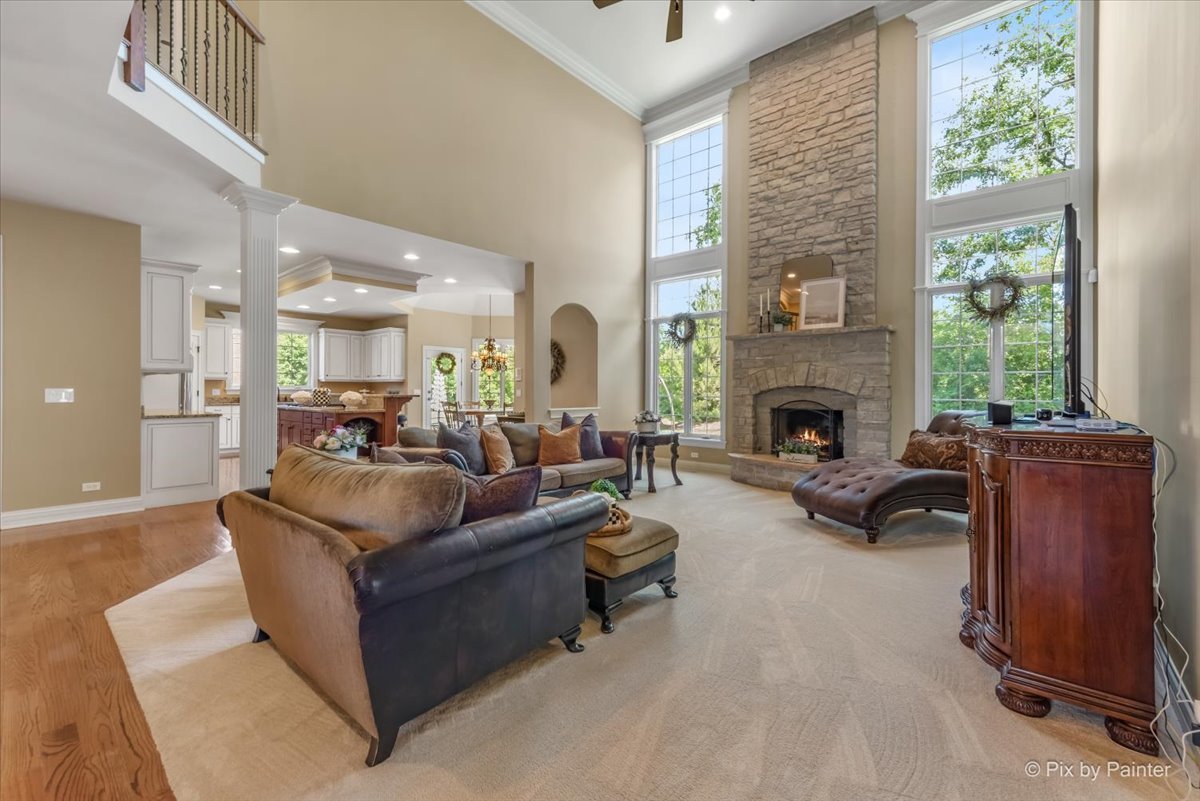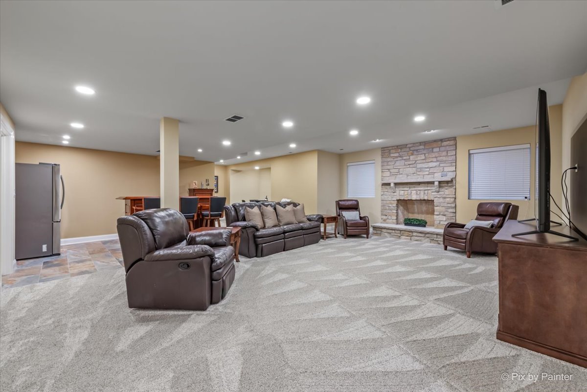 Custom Sebern Built 5 Bedroom, 4.5 Bath, 3-Car Garage Executive Home in Thornwood! Set on a premium cul-de-sac lot in the sought-after Thornwood Pool & Clubhouse community, this stately home impresses with its brick archway entry, dual doors, and manicured landscaping. Inside, a grand two-story foyer, wrought iron staircase, and formal dining room set the tone for over 4,600 sq ft of luxury living. The gourmet kitchen features custom cabinetry, granite countertops, oversized island, walk-in pantry, and stainless appliances including new dishwasher & refrigerator (2025). A bay window breakfast area overlooks the serene wooded backyard and brick patio. The kitchen flows into a soaring two-story family room with floor-to-ceiling stone fireplace and new carpet (2024). Upstairs, the expansive primary suite offers a tray ceiling, endless walk-in closet, and spa-like bath with whirlpool tub, oversized shower, and dual vanities. Three additional bedrooms include a Jack & Jill bath and a private en-suite. The newly finished basement (2024) adds a 5th bedroom, full bath, rec space with stone fireplace, and storage. Additional updates include 2 new water heaters (2025) and furnace (2023). Residents enjoy Thornwood’s clubhouse, pool with water slide, sports courts, playgrounds, and trails-all served by top-rated D303 St. Charles schools with the elementary school just down the street. Minutes from shopping, dining, and commuter routes! SELLER IS WILLING TO CONTRIBUTE UP TO $10,000 TOWARDS AN INTEREST RATE BUY DOWN. ALL REQUESTS MUST BE SUBMITTED WITH INITIAL OFFER.