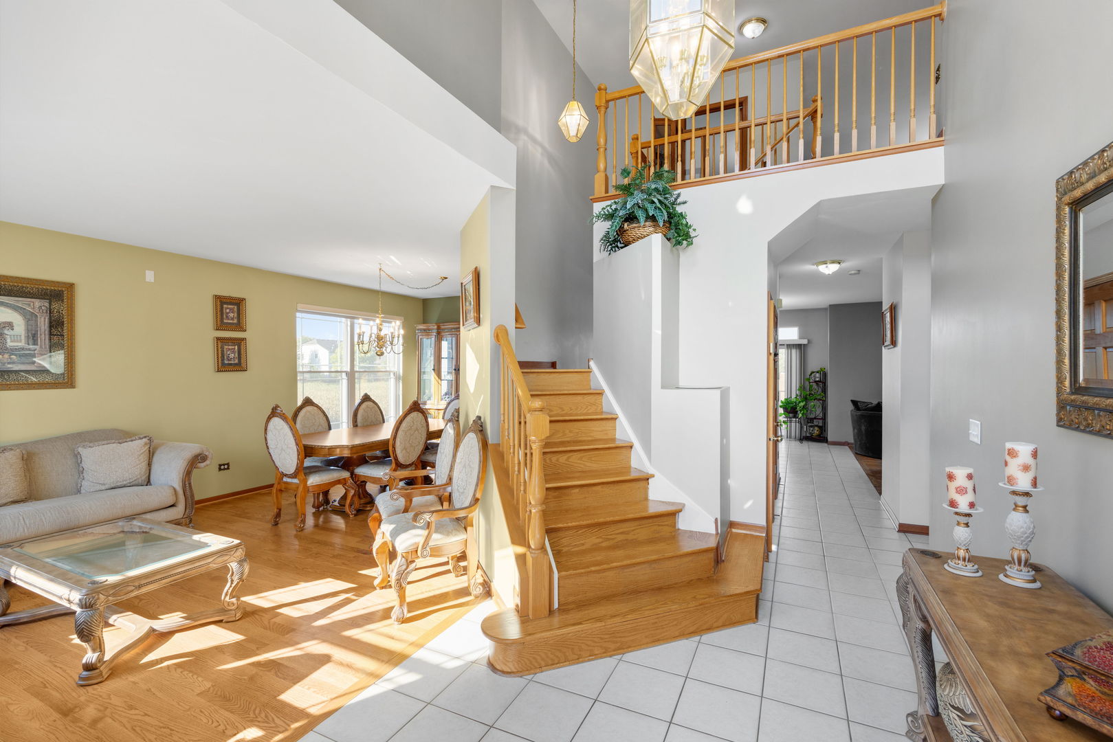 Welcome to the Exceptional Residence Carol Stream Has Been Waiting For. This thoughtfully designed home offers 3,886 sq. ft. of finished living space, including a fully finished basement, and is ideally situated on a quiet cul-de-sac with scenic views of wetlands and nature area-a rare setting that offers both privacy and natural beauty. Step into the inviting foyer and enjoy the abundant natural light and floor plan that flows throughout the main level. The home features formal living and dining room, a spacious family room with a cozy fireplace, a main-floor laundry room with storage, and dual staircases from both the foyer and kitchen for convenient access. At the heart of the home, the well-appointed kitchen features high-end cabinetry, generous counter space, dual ovens, a professional-grade gas range, stainless steel appliances, and a tile backsplash. The sunlit breakfast nook, surrounded by windows, provides panoramic views of the backyard and surrounding nature. Upstairs, you’ll find four comfortable bedrooms, including a primary suite with a spa-style bathroom and custom walk-in closets. A versatile loft area serves perfectly as a home office, reading nook, or playroom-overlooking tranquil views of the pond and preserve. An additional full bath completes the second floor. The finished basement expands your living space with large recreation areas, a full bathroom, and ample storage-ideal for entertaining, working out, or relaxing. Outside, enjoy a professionally landscaped yard and a newer deck (2017)-perfect for quiet evenings or hosting guests. With no homes to be built behind, you’ll enjoy uninterrupted views and lasting privacy year-round. Additional features include: 3-car garage, 3.5 bathrooms, expansive windows (2023), Furnace and AC (2016), Newer kitchen appliances, and an epoxy coated garage floor (2023). Located in a highly sought-after community with top-rated schools and just minutes from shopping, restaurants, this rare offering is more than a home-it’s a lifestyle. Schedule your private showing today and experience this exceptional property in person.