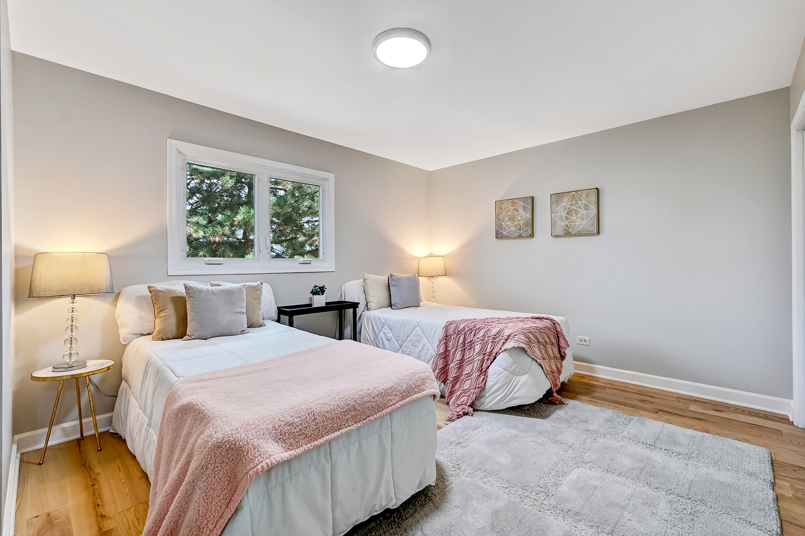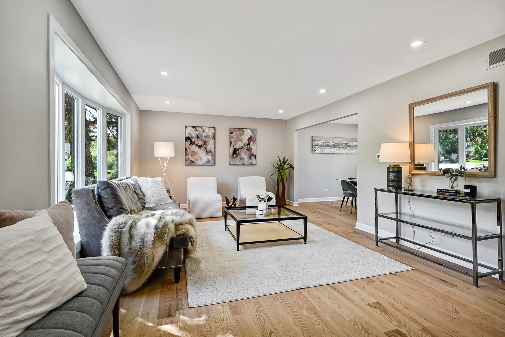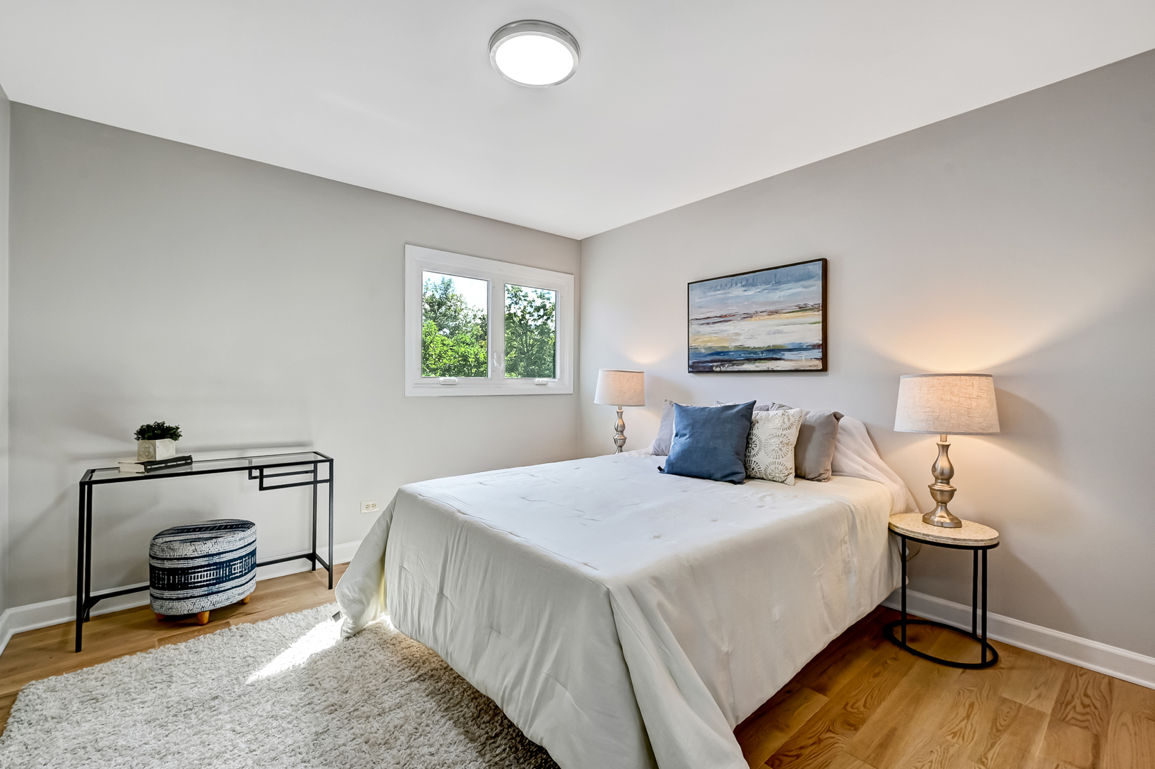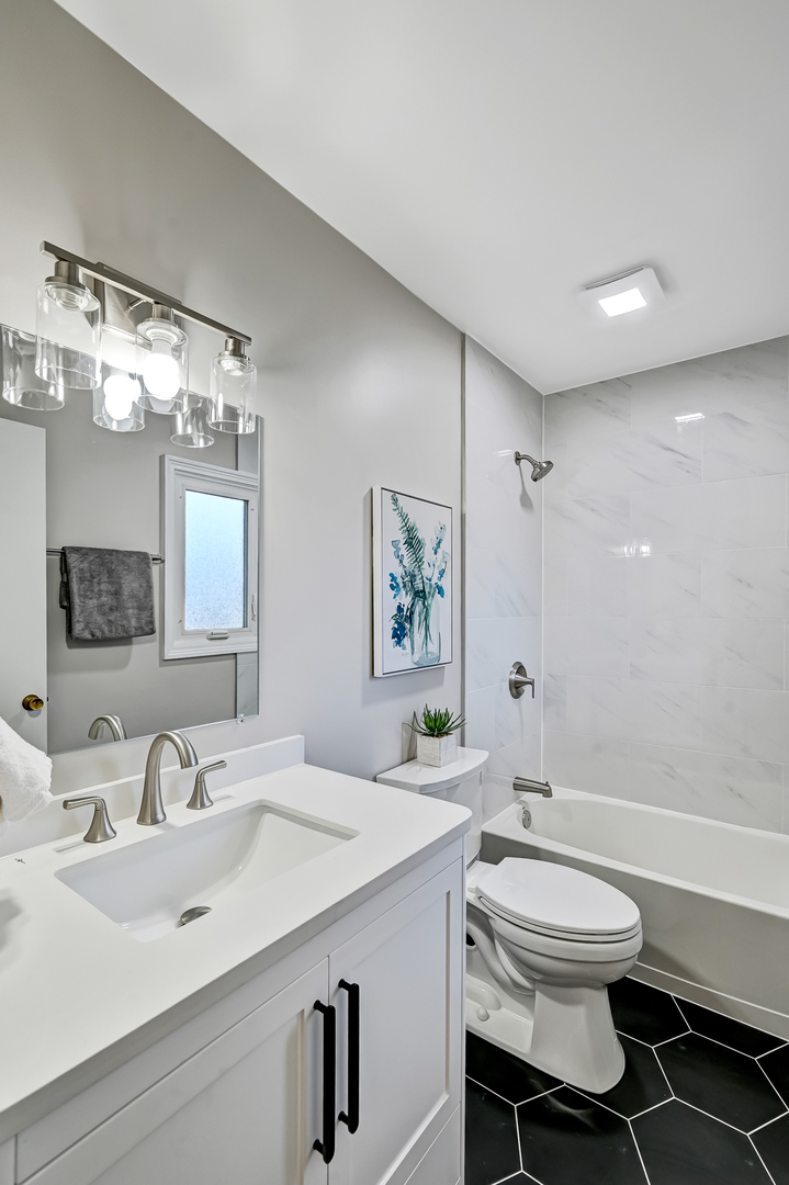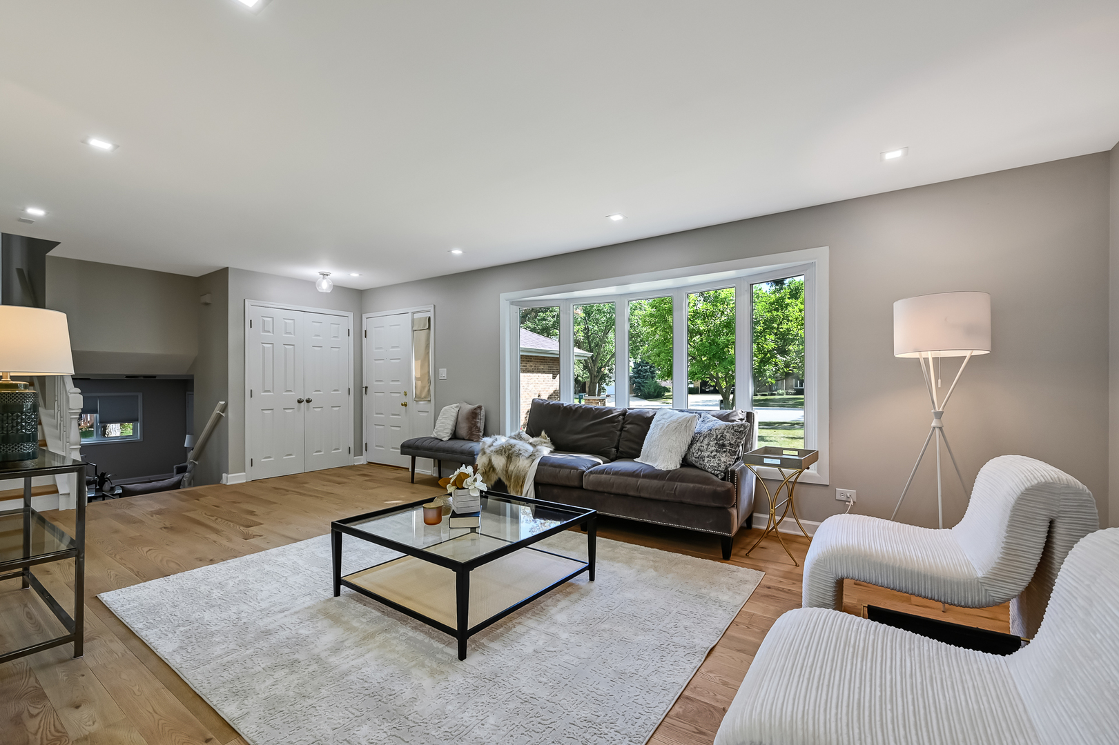 Gallagher & Henry split-level home, nestled on over a 1/4-acre fenced lot. This inviting residence offers 4 bedrooms and 3 full baths, featuring newly installed hardwood floors on the main and upper levels, and new vinyl flooring on the lower level. Brand new HVAC, newer roof, siding, and windows. The spacious and open living and dining areas seamlessly flow into a newly renovated kitchen, showcasing white cabinets with soft-close drawers, quartz countertops, stainless steel appliances, and a peninsula with breakfast bar seating. The upper level hosts three generously sized bedrooms, including the primary suite with a newly renovated ensuite bathroom. An additional newly updated full bathroom completes this level. The lower level boasts a family room with above-ground windows that flood the space with natural light, along with a versatile fourth bedroom or office, and a full bathroom just outside. Step outside to a private backyard oasis with a large deck and mature trees, perfect for relaxation and entertainment. The property also features an attached 2-car garage and a concrete driveway. Located in a tranquil neighborhood, this home offers easy access to elementary and high schools, shopping, dining, and I-355. Welcome home!