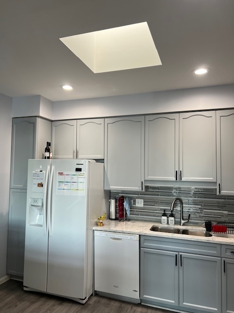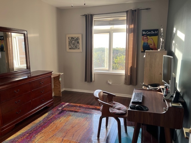 This unit is set back nearly 1 block from Milwaukee Ave surrounded by Forest preserve views. Welcome to Eagle Point Condominiums! This 7th floor penthouse unit features high ceilings and a skylight not available in lower floors. Very bright with beautiful views of the Chicago SkyLine, Forest Preserve and seasonal views of the River. Unit features an updated kitchen with quartz countertops and luxury vinyl flooring, updated bath, 5 year old HVAC, 1 year old microwave and gas stove and a new dryer. There is engineered hardwood flooring throughout, in unit laundry, garage heated parking, a large storage room and a nice sized balcony. Pets are allowed! Enjoy biking trails, the River and everything the Forest Preserve has to offer right outside your doorstep. Close proximity to expressways, airports, and public transportation. Plenty of visitor parking for family and friends or a 2nd vehicle. Heat, gas and water are all included in your assessment! Very healthy reserves, never a special assessment. Able to close quickly, buy now and be in before Thanksgiving!