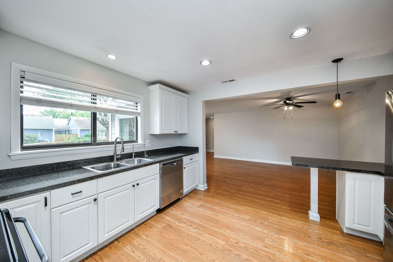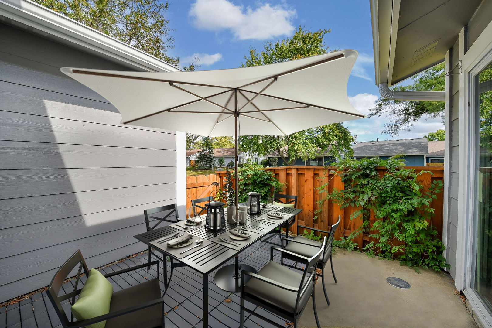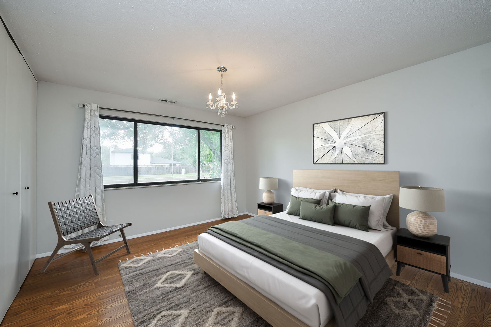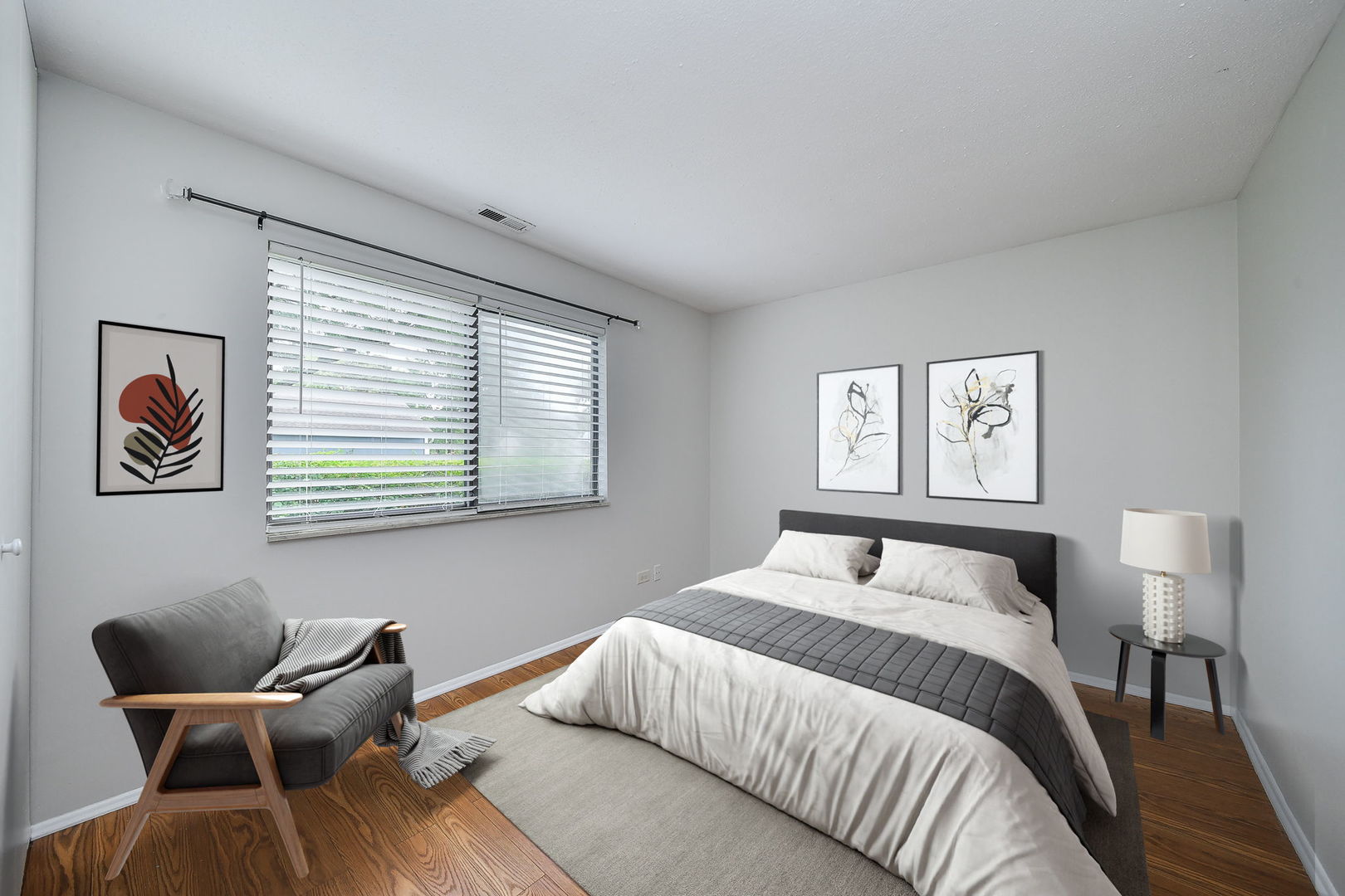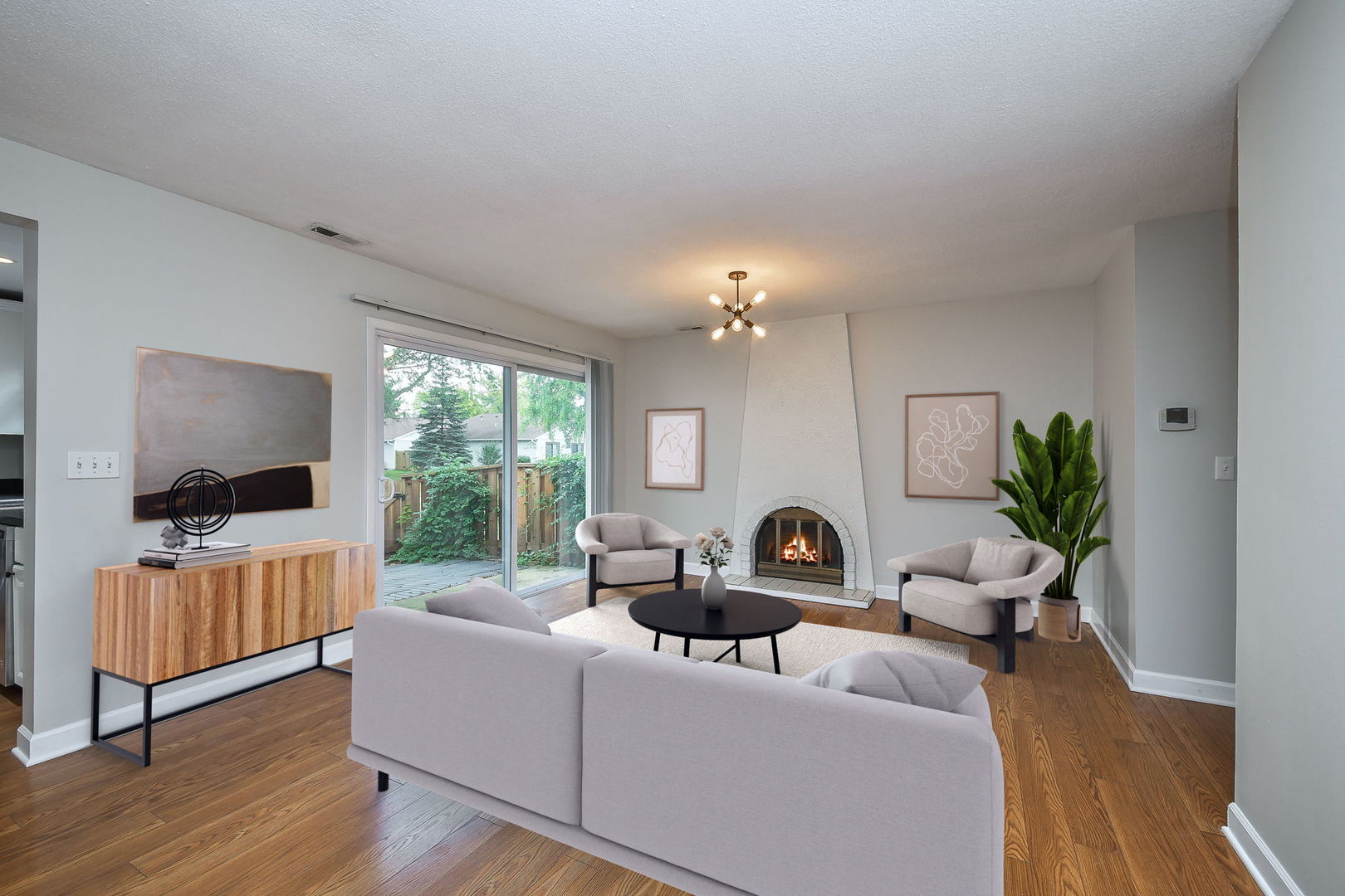 Absolutely lovely patio home with one step step that lives like a single family home. The private entry and front of the end unit, ranch condo overlooks a large green space. Inside you’ll find meticulous wood laminate flooring throughout, abundant natural lighting and a wood burning fireplace in the great room. The kitchen has white cabinetry, stainless appliances and plenty of prep space and storage. There laundry conveniently located behind closed door adjacent to the two car garage. Both bedrooms are good size with spacious closets. The updated bath is sure to please. The sliding glass door and light fixtures the great room are newer. The HOA boasts a swimming pool & clubhouse, tennis, hot tub and excersize space.The Clubhouse is located at Woodridge Center and Janeswood. For more information, please check @Village IV website.
