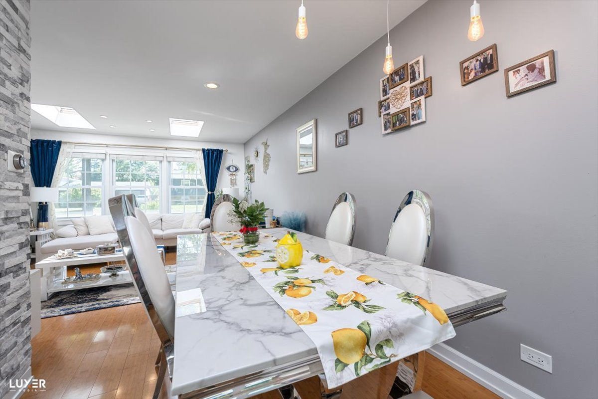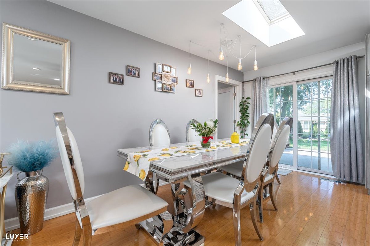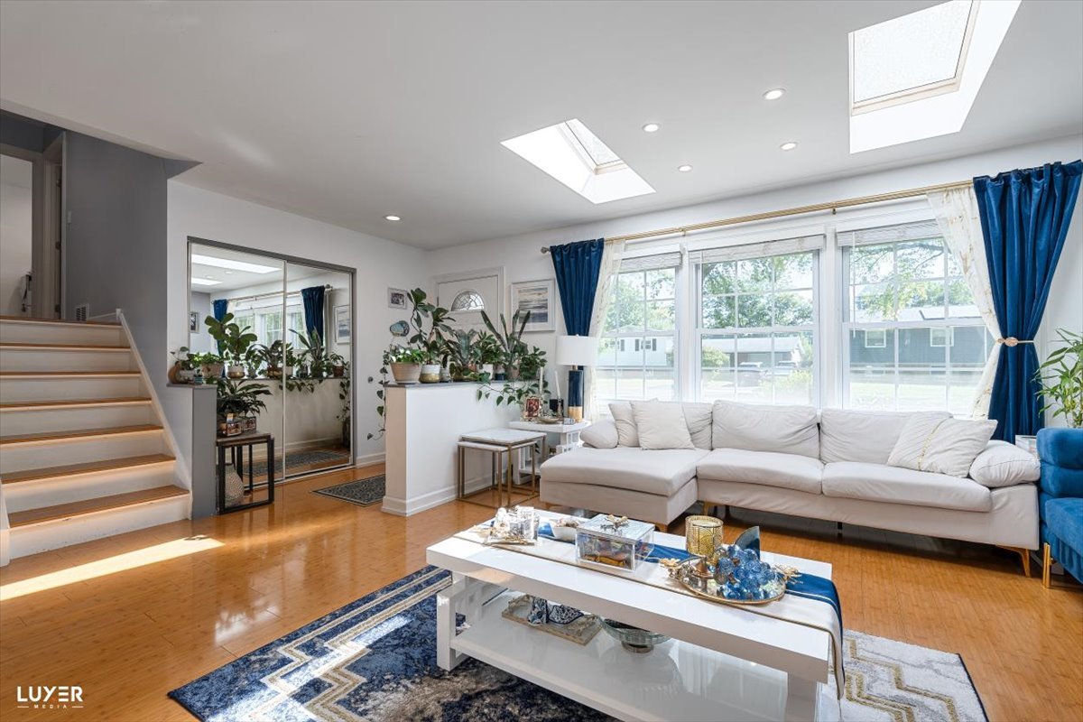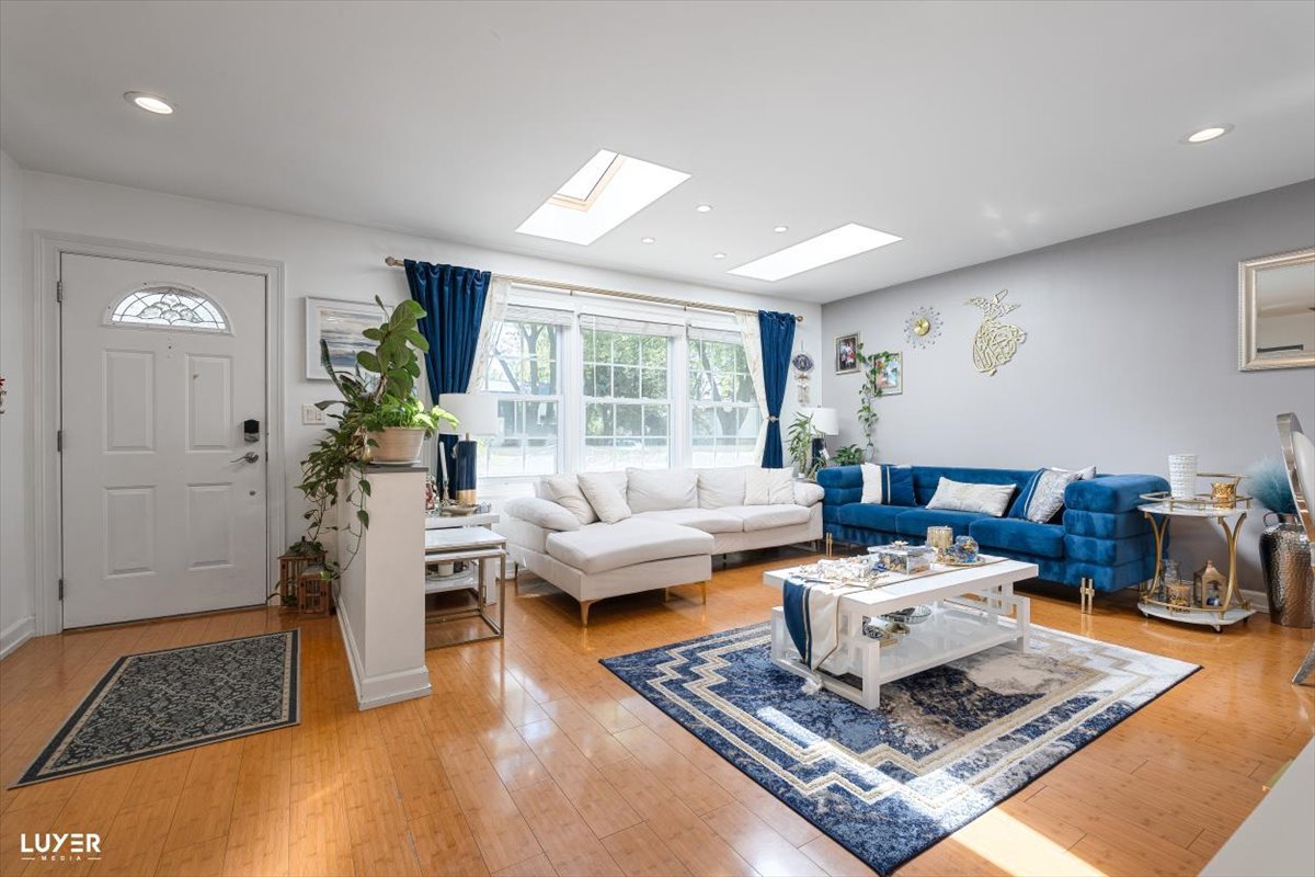 **Schaumburg school district** low taxes, modern finishes and thoughtful updates throughout, this move-in-ready gem offers both style and functionality. As you enter, you’re greeted by a stunning accent wall and an open-concept layout with rich bamboo flooring on the main level, creating a warm and welcoming atmosphere. The sun-drenched living room features a large window and skylight, filling the space with natural light. The kitchen is a showstopper-completely remodeled with ample cabinetry, sleek quartz countertops, a deep sink, a large window overlooking the backyard, a skylight. The adjacent dining area boasts another skylight and a newer sliding glass door that opens to the backyard, making indoor-outdoor entertaining a breeze. A functional mudroom connects the garage to the home and includes direct access to the backyard-a perfect drop zone for busy households. Downstairs, the spacious lower level offers a versatile room that can serve as a fourth bedroom or family room, complete with a beautifully renovated full bath-ideal for guests or gatherings. Upstairs, you’ll find three generously sized bedrooms, all with hardwood floors and skylights. The primary bedroom features an entire wall of closet space, while the updated main bathroom includes double sinks and modern finishes. The home also offers a large laundry room equipped with a tankless water heater, newer furnace and AC, laundry tub, refrigerator, and three spacious storage closets. Additional highlights include recessed lighting with dimmers throughout, a welcoming foyer with a double coat closet, a new sump pump, and extensive updates such as newer siding, gutters, and a roof with 7 skylights that brighten every corner of the house. Enjoy the outdoors in your private backyard oasis, featuring a patio, garden shed, vegetable garden, new fencing, and freshly planted trees for added privacy. This home truly has it all-don’t miss your chance to make it yours!