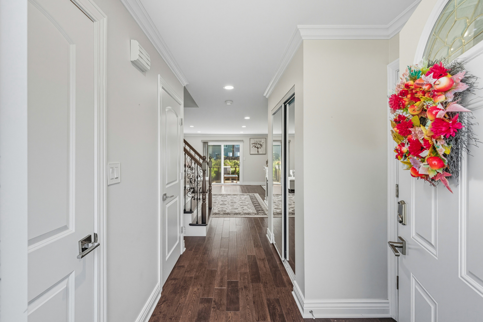 Step into this beautifully updated 2 story townhome where space, comfort, and style come together. An open-concept floor plan with gleaming hardwood flooring, canned lighting, and amazing views creates a warm atmosphere. The updated kitchen and 2 full baths shine with modern touches, granite counters, rich cherry cabinets, stunning stainless-steel appliances, make this kitchen truly a cooks delight! Enjoy three well-proportioned bedrooms, walk-in closets and gorgeous flooring. The fully finished basement expands your living space with endless possibilities-whether for a rec room, fitness area, home office, guest suite and storage galore. Outside, the serene backyard feels like a private nature escape, ideal for quiet mornings with coffee, summer barbecues, or evenings entertaining under the stars. Nature lovers will love the birds chirping and the endless colors from all the perennials. With newer mechanicals and a sought-after location just minutes from parks, shopping, highly rated schools this home and wonderful neighborhood with pool and clubhouse offers the perfect balance of everyday comfort and refined living. Extra long driveway, enough for 3 cars!!